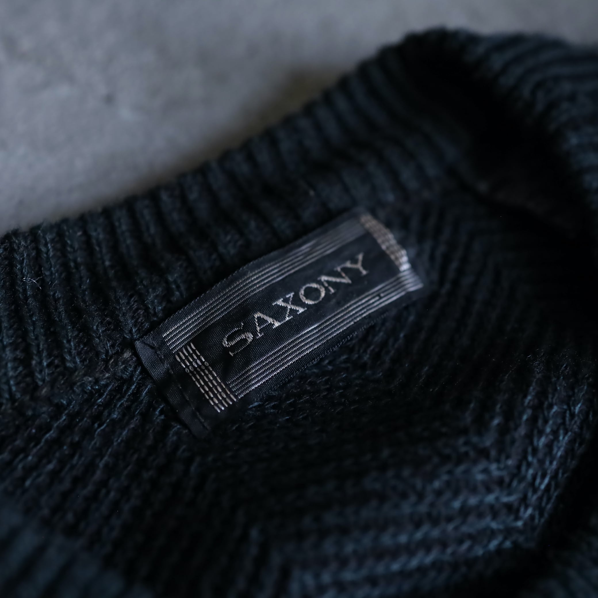 モスグリーンのニットボディに,前身頃が同系色のリアルレザー切替.