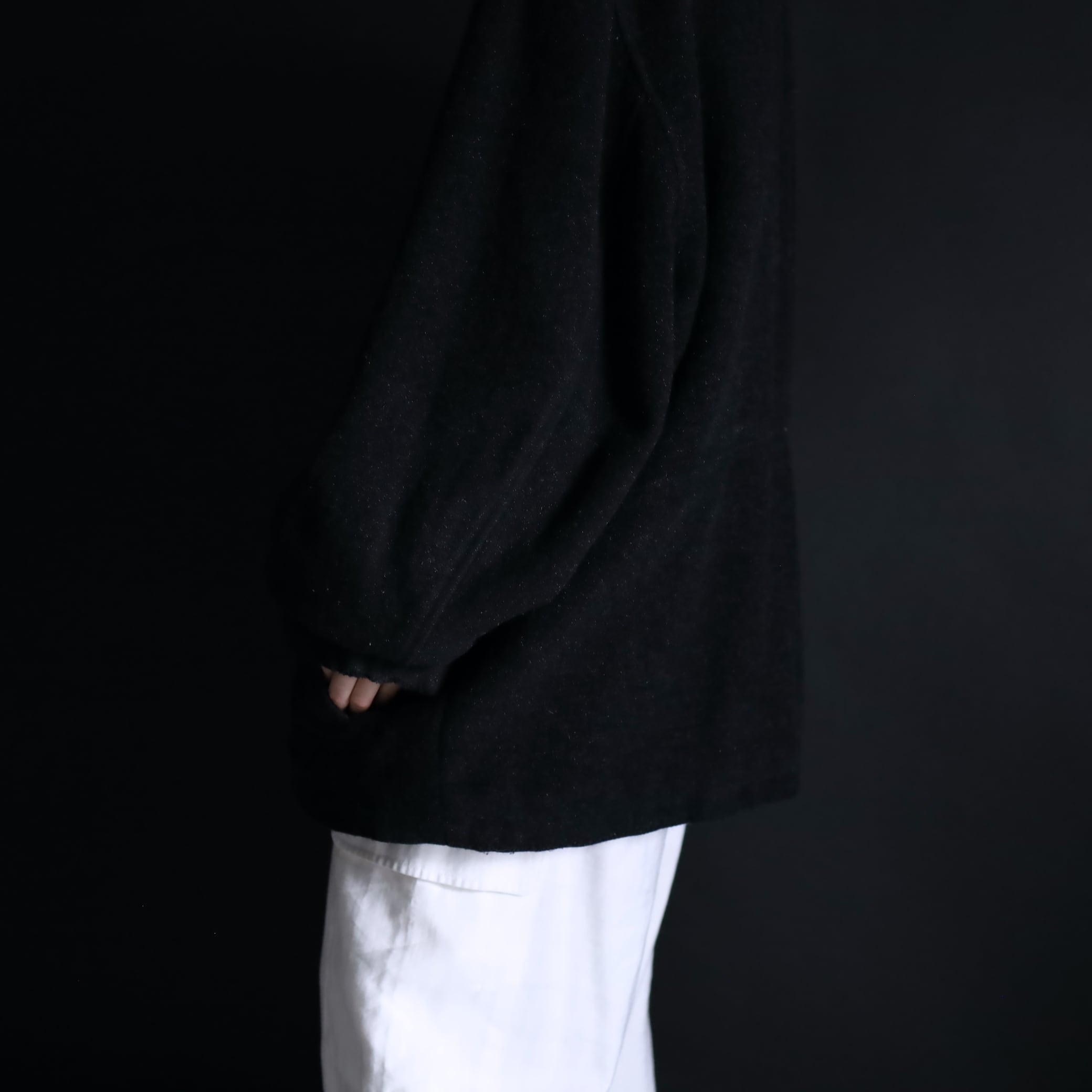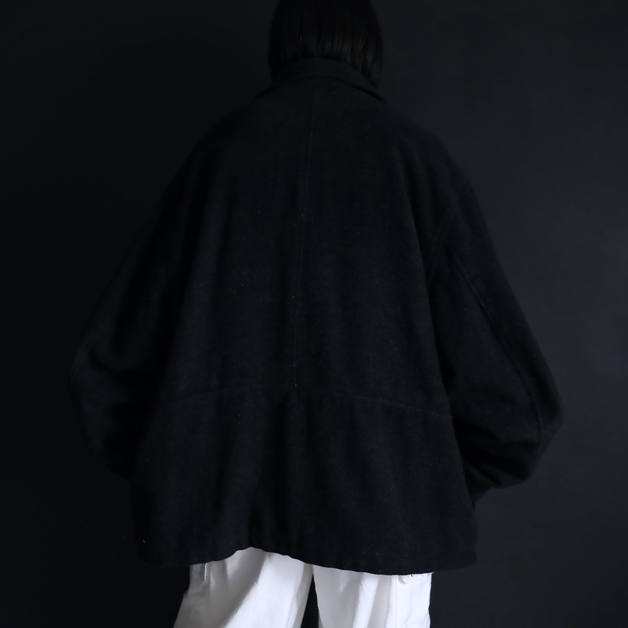 チャコールグレーカラーのウールボディ.