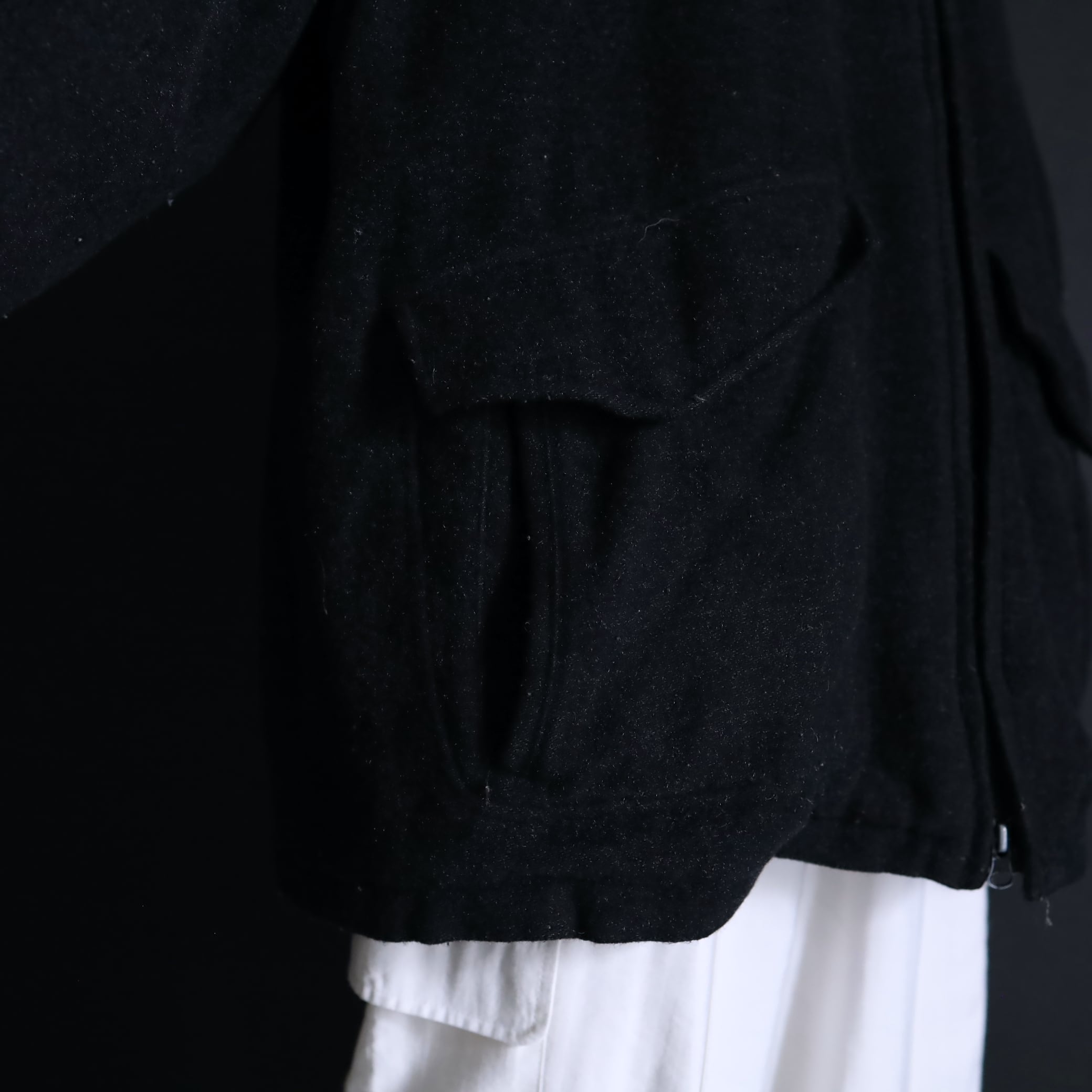 左右にスラッシュポケット,フラップポケット.
