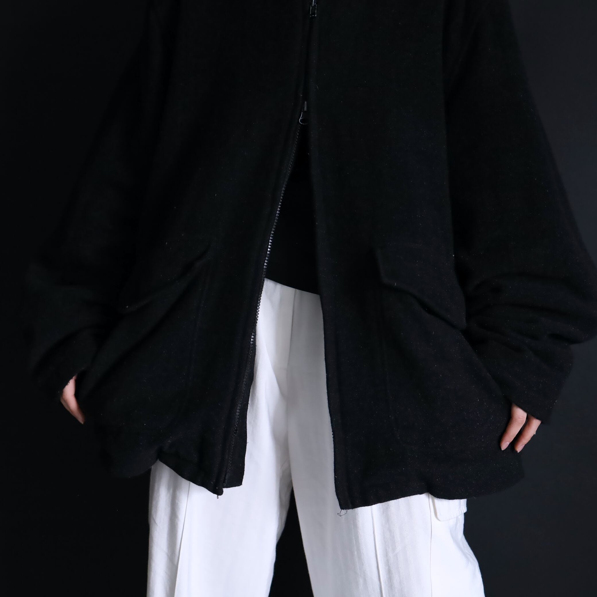前立てはダブルジップのため単純な開閉だけでなく,ジップ位置を調節して遊ぶことも可能.