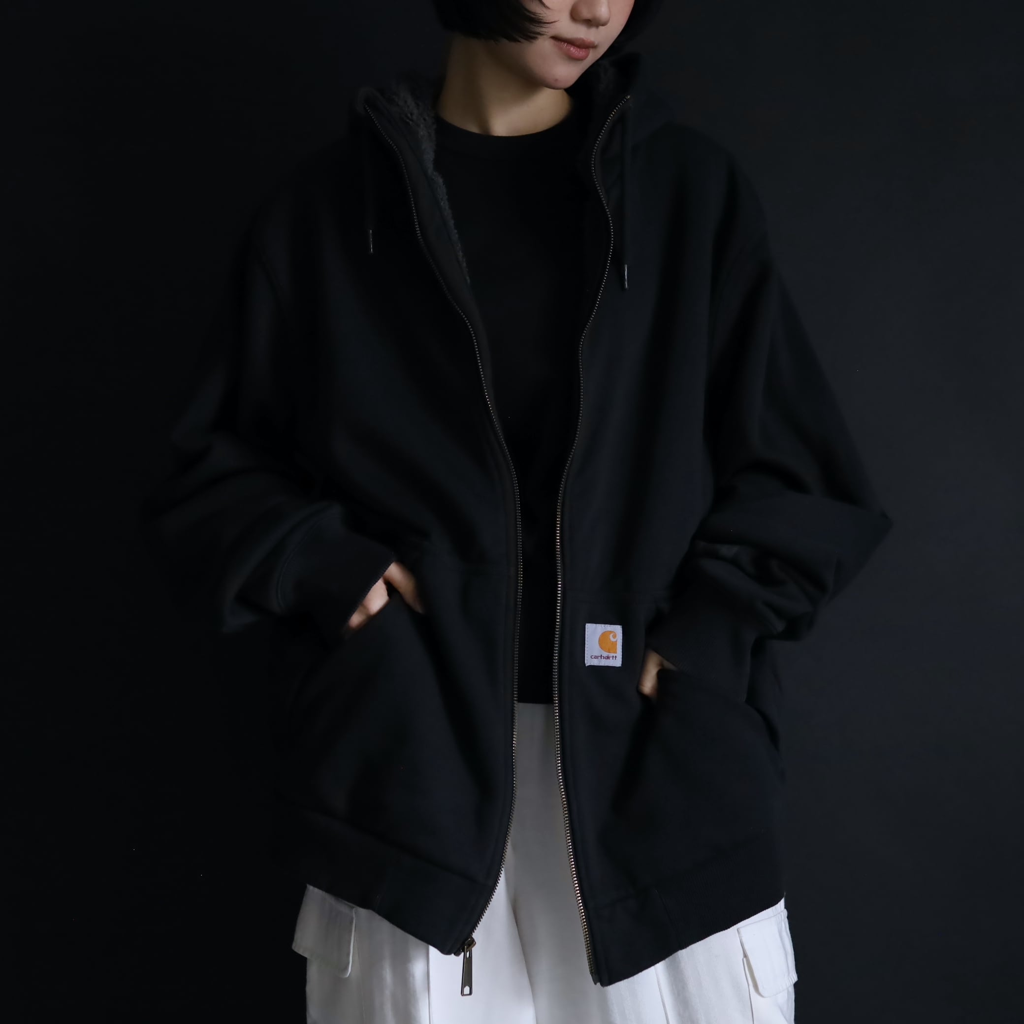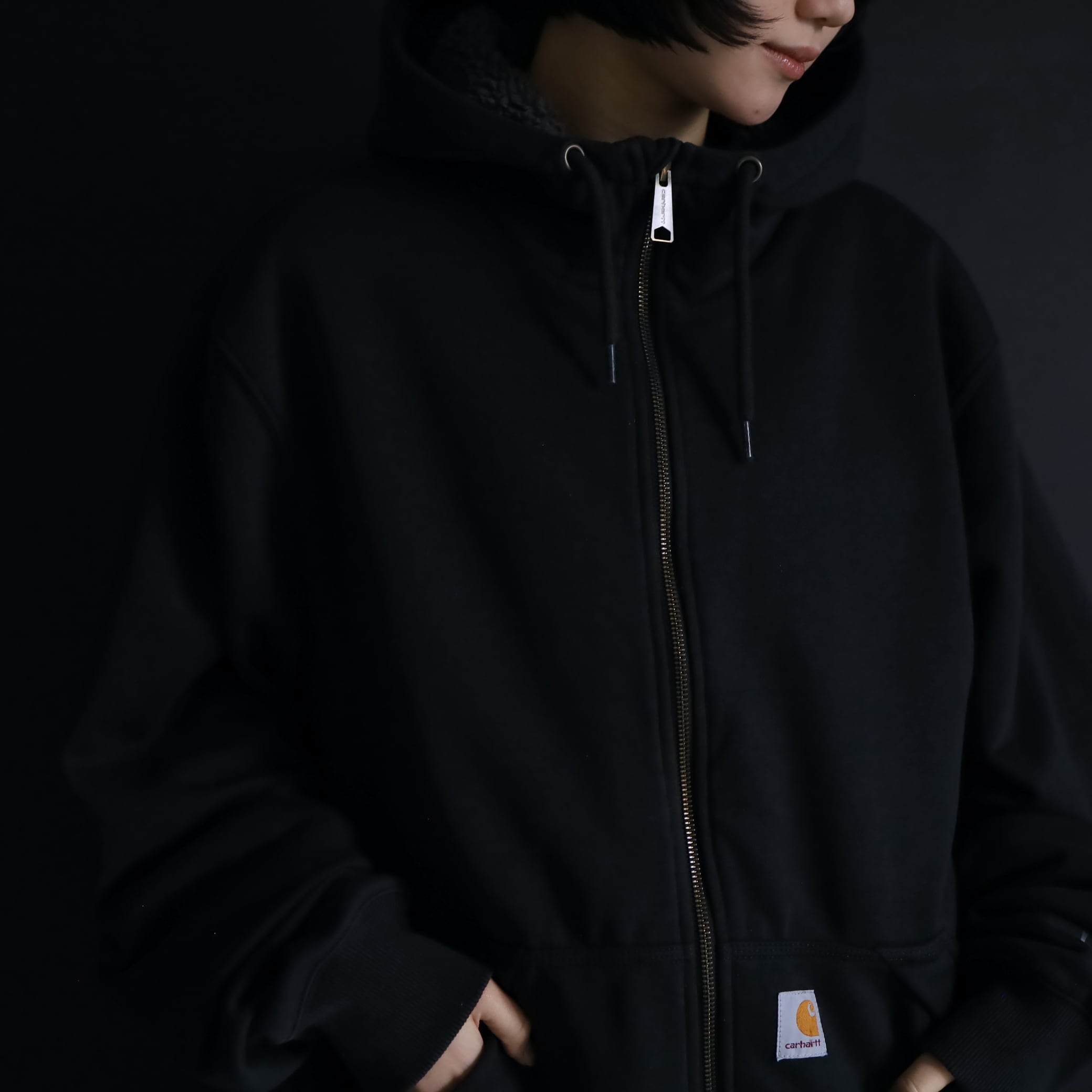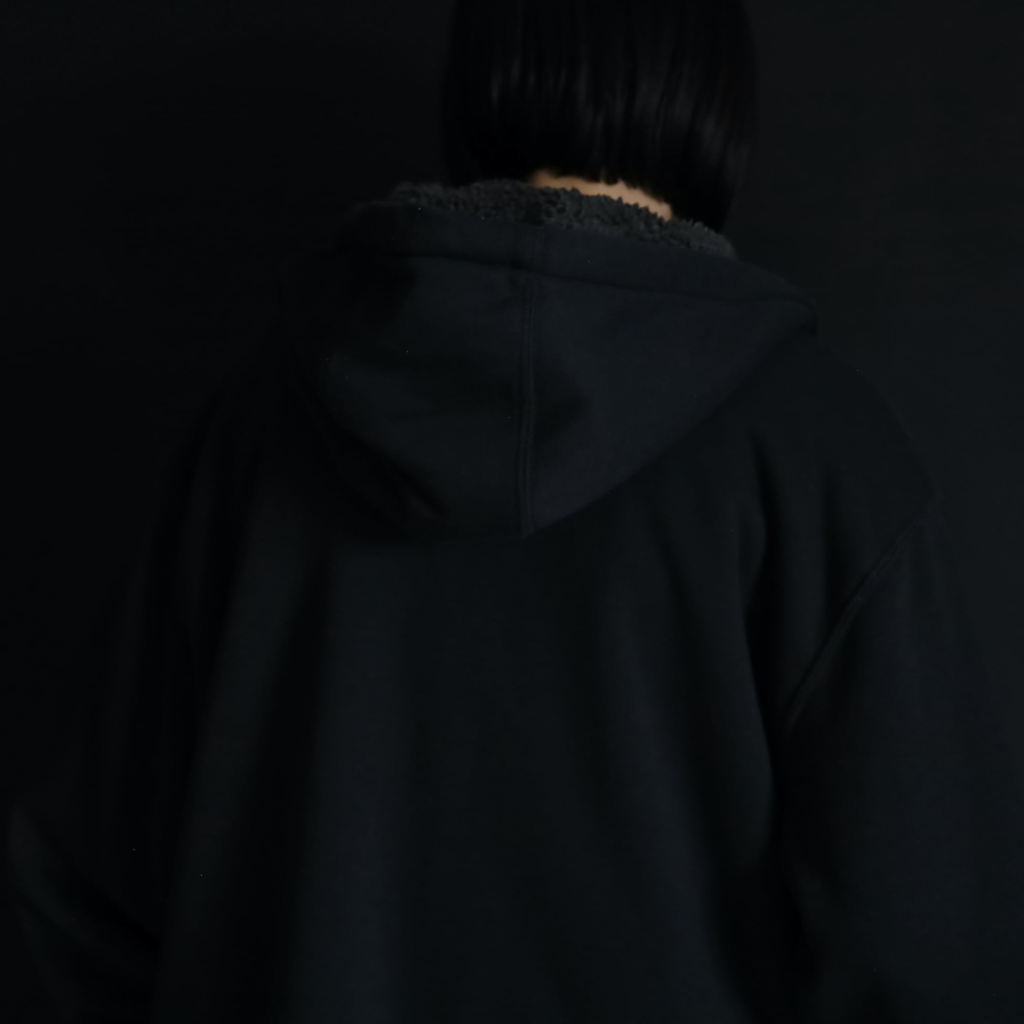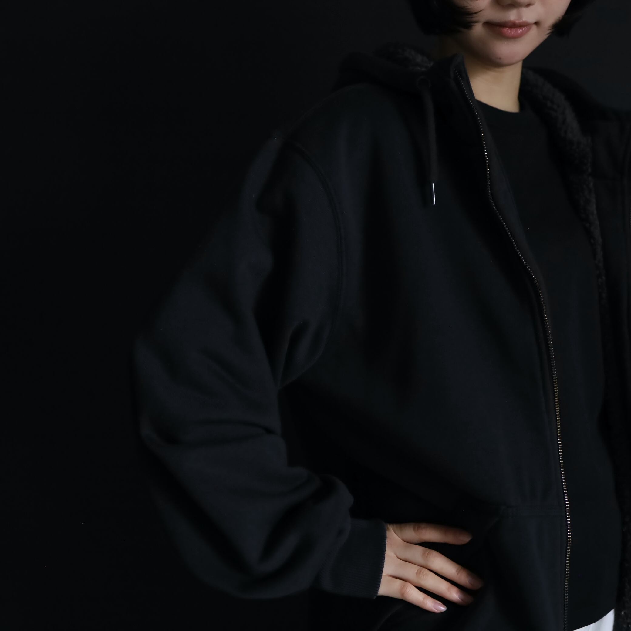 肉厚になるボアフリースライニング仕様のため,保温性抜群で,アウターとして使えるパーカー.
