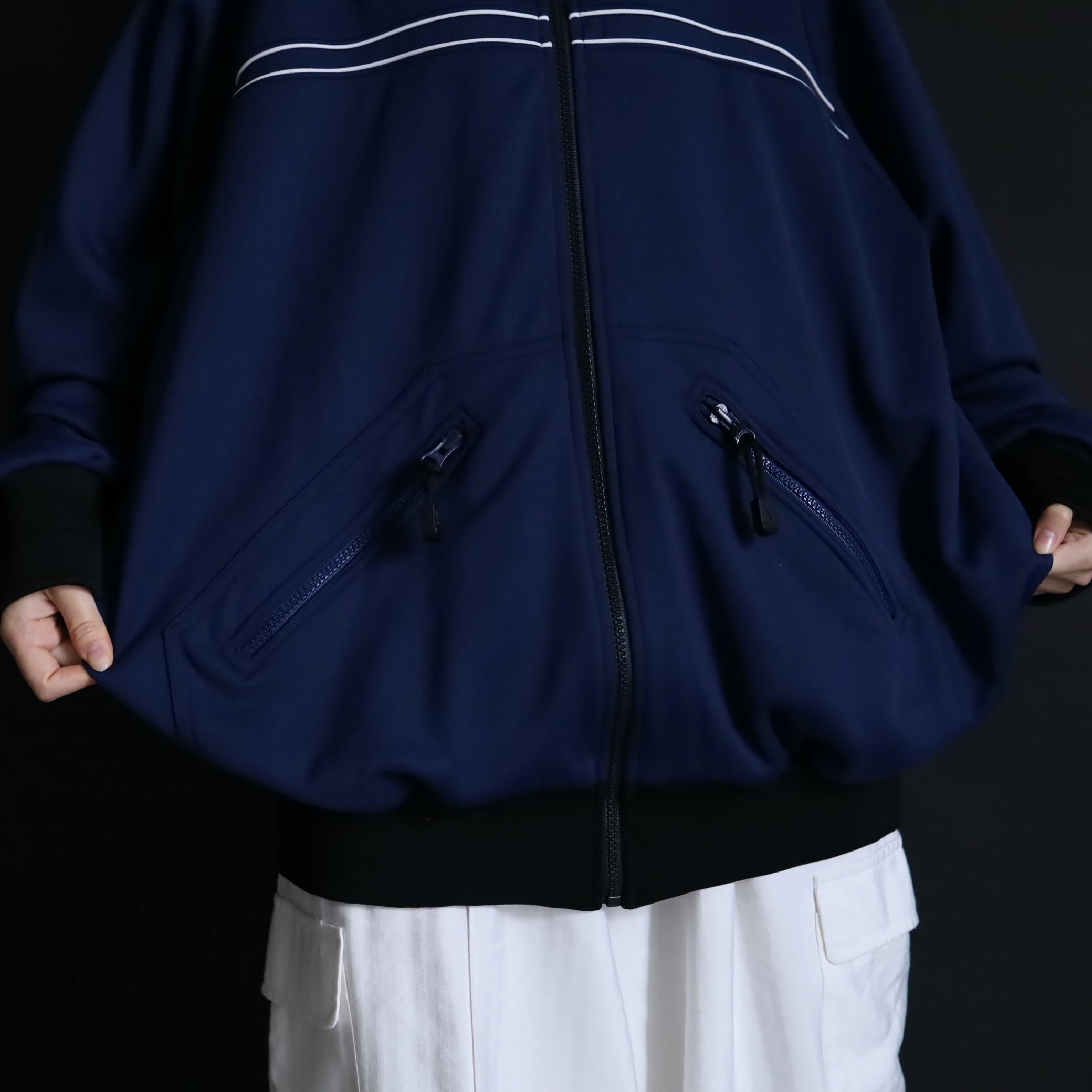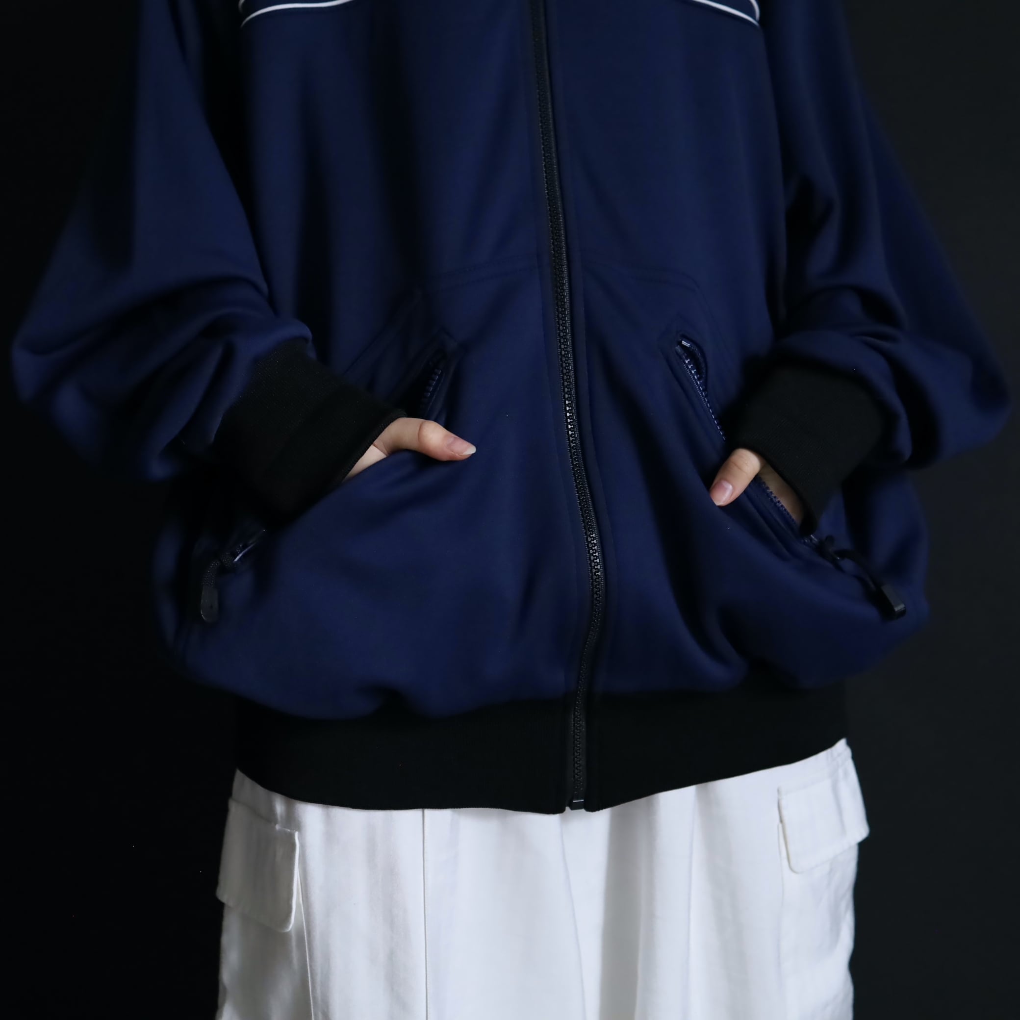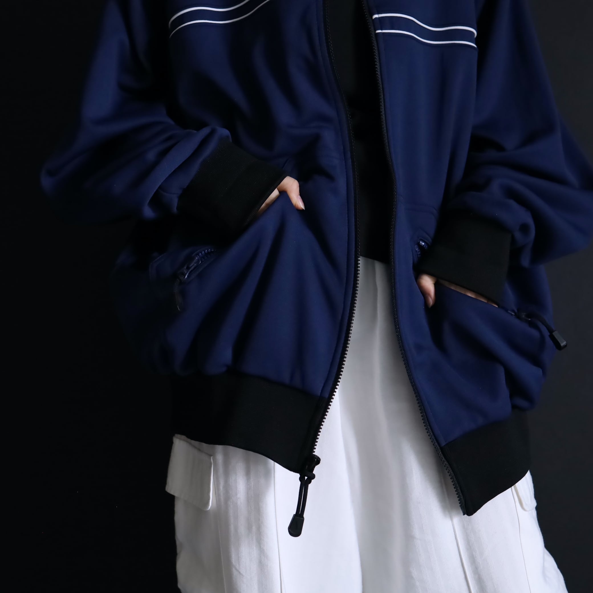 袖,裾,ネックはブラックに切替わり,全体のルックスがしっかりと引き締まります.