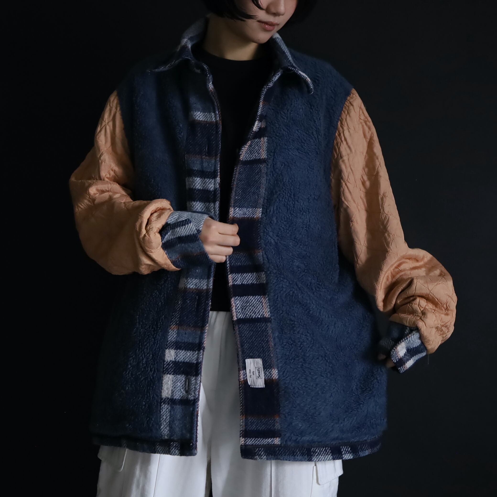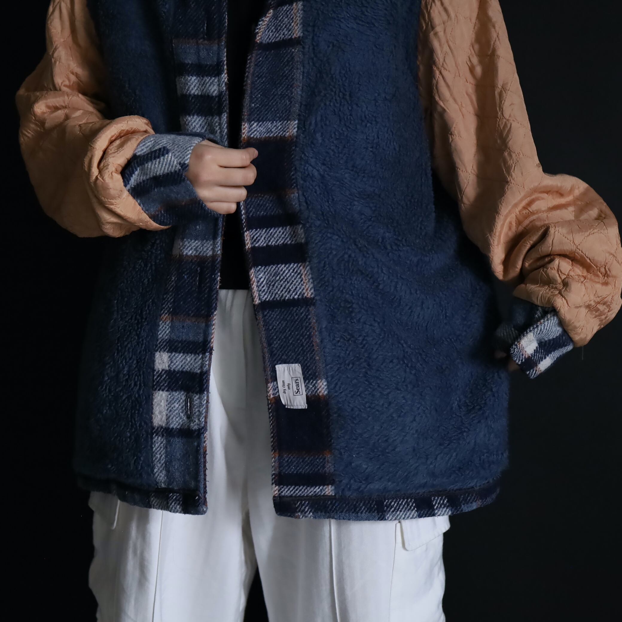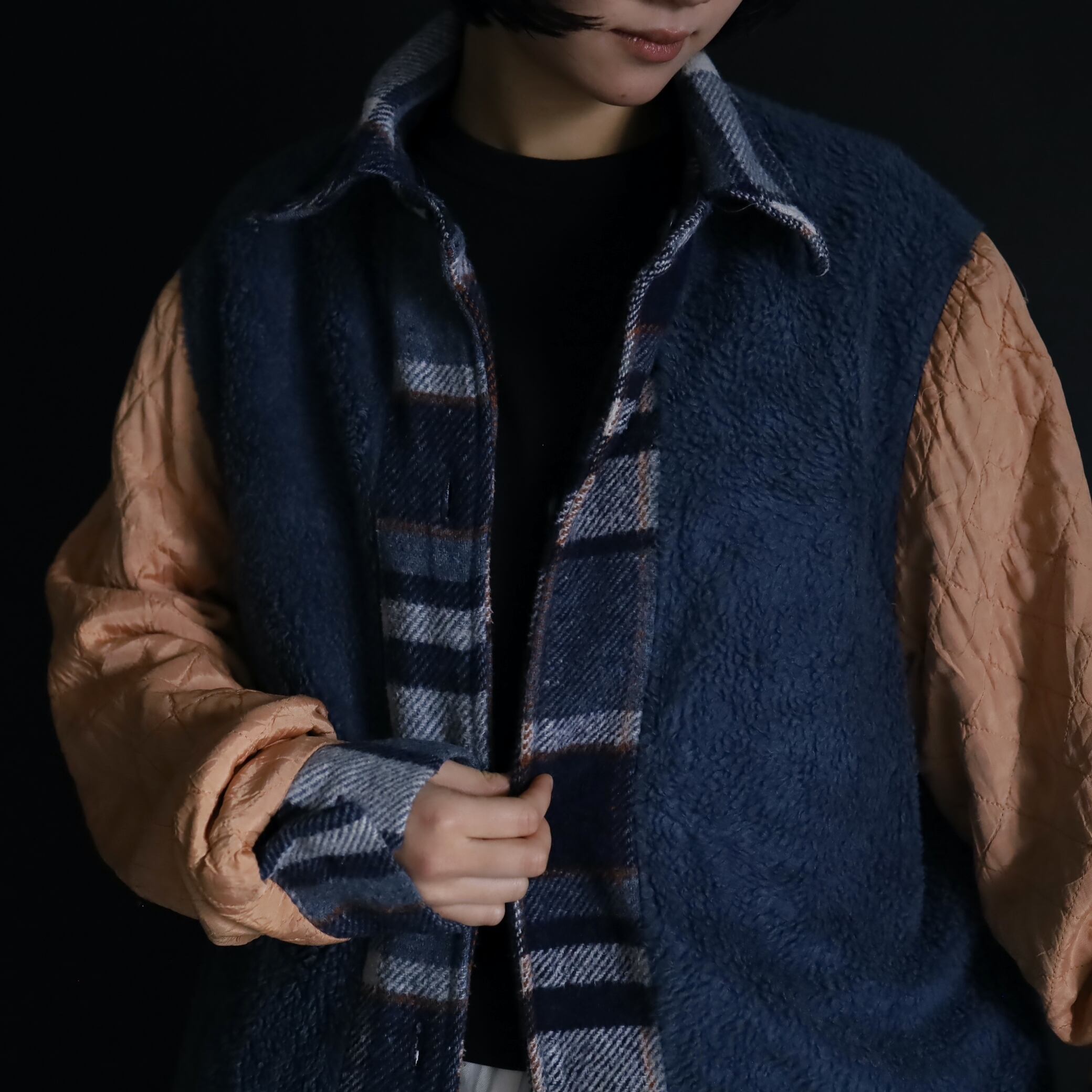 肉厚なウールボディをシェルに,ライニングがモコモコボアフリース,袖内部に限ってはキルティング仕様.