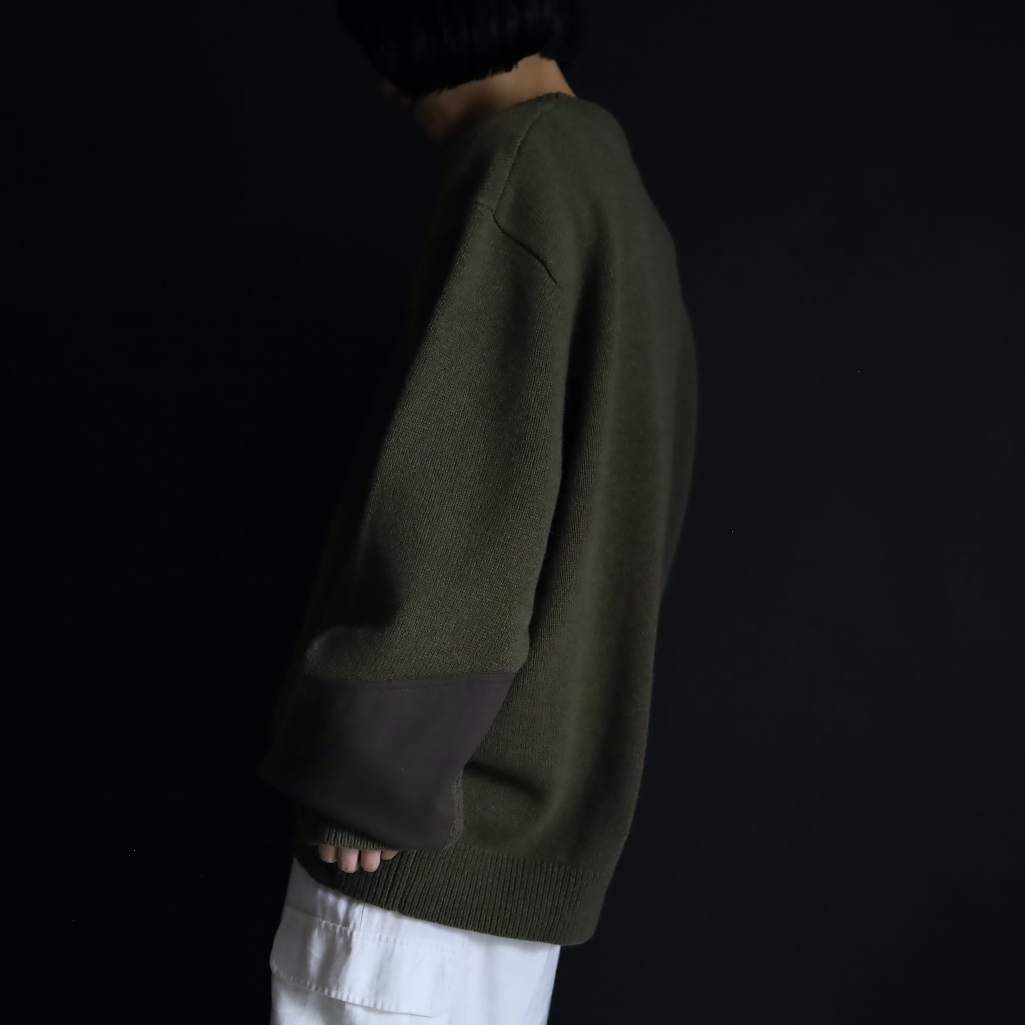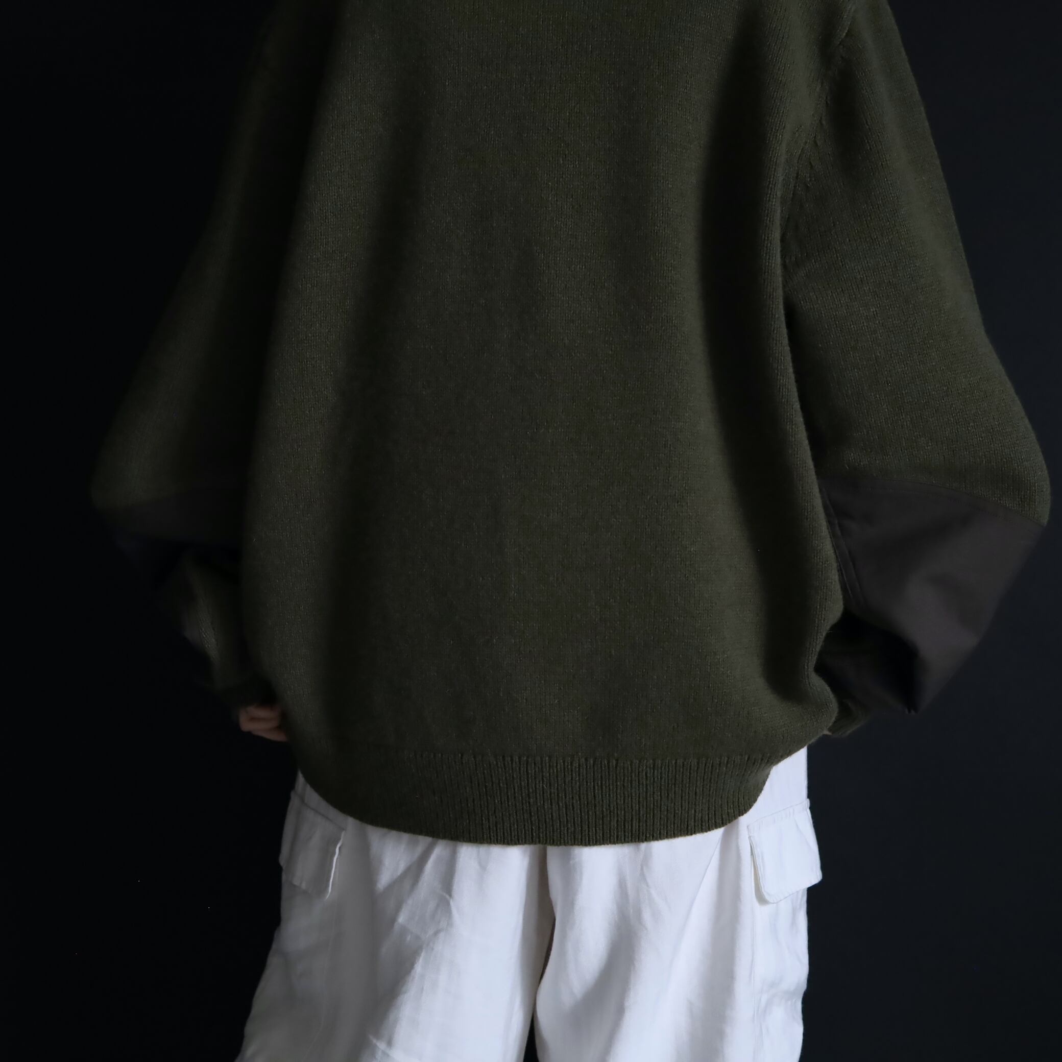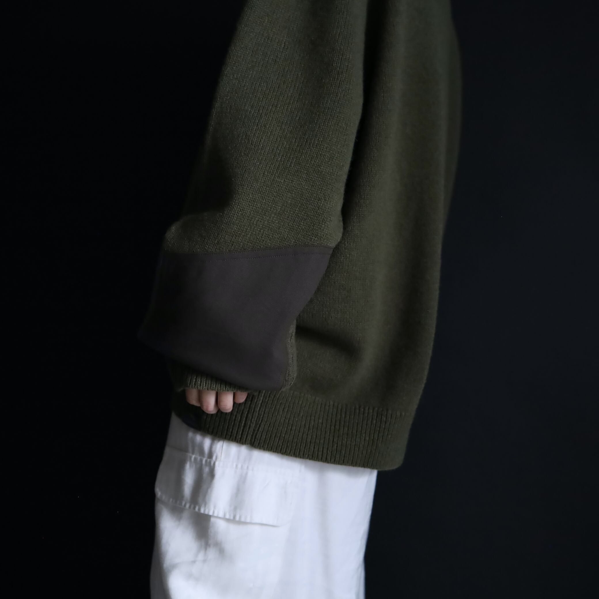 両袖にはエルボーパッチ付きで,ニットの弱点である耐久面もカバーしています.