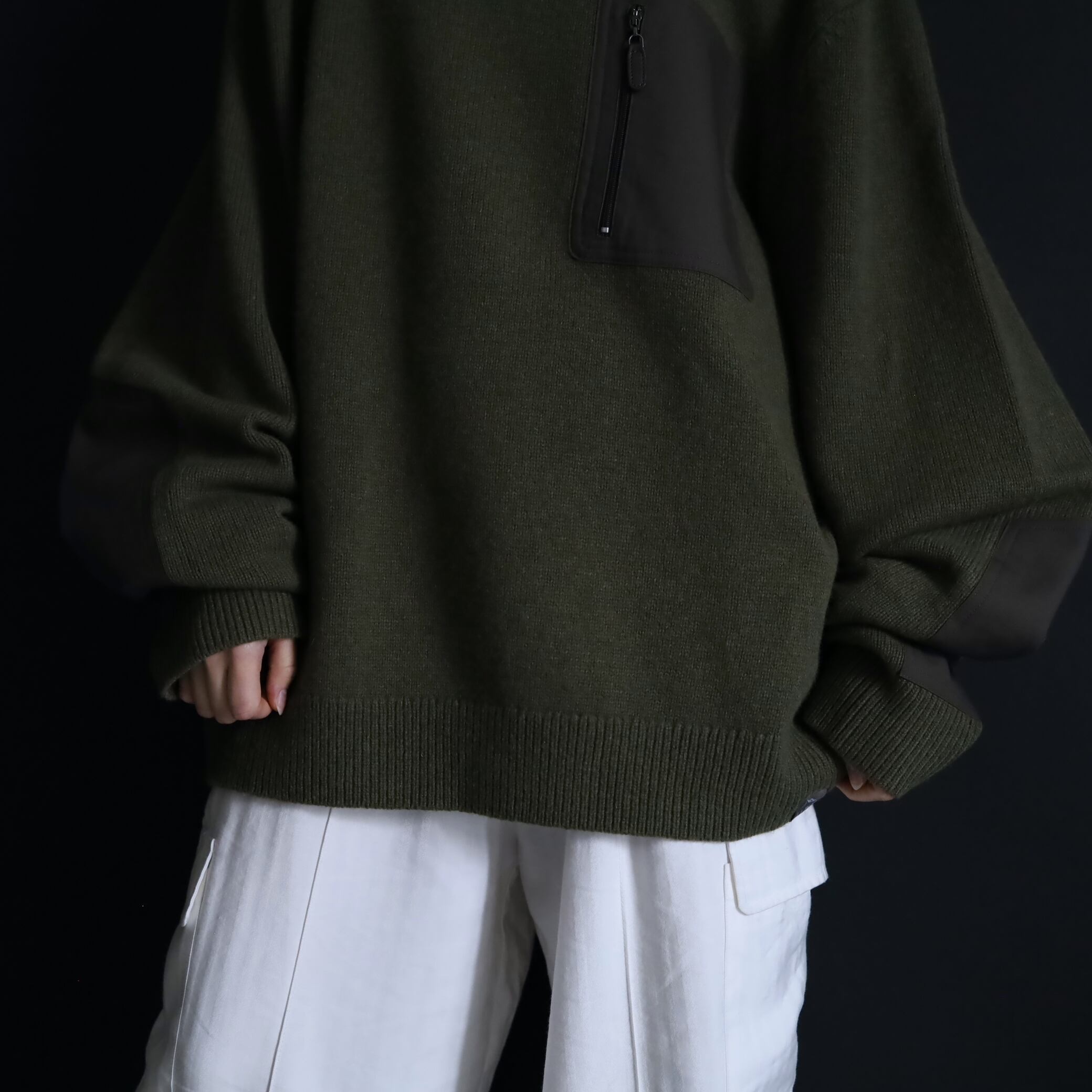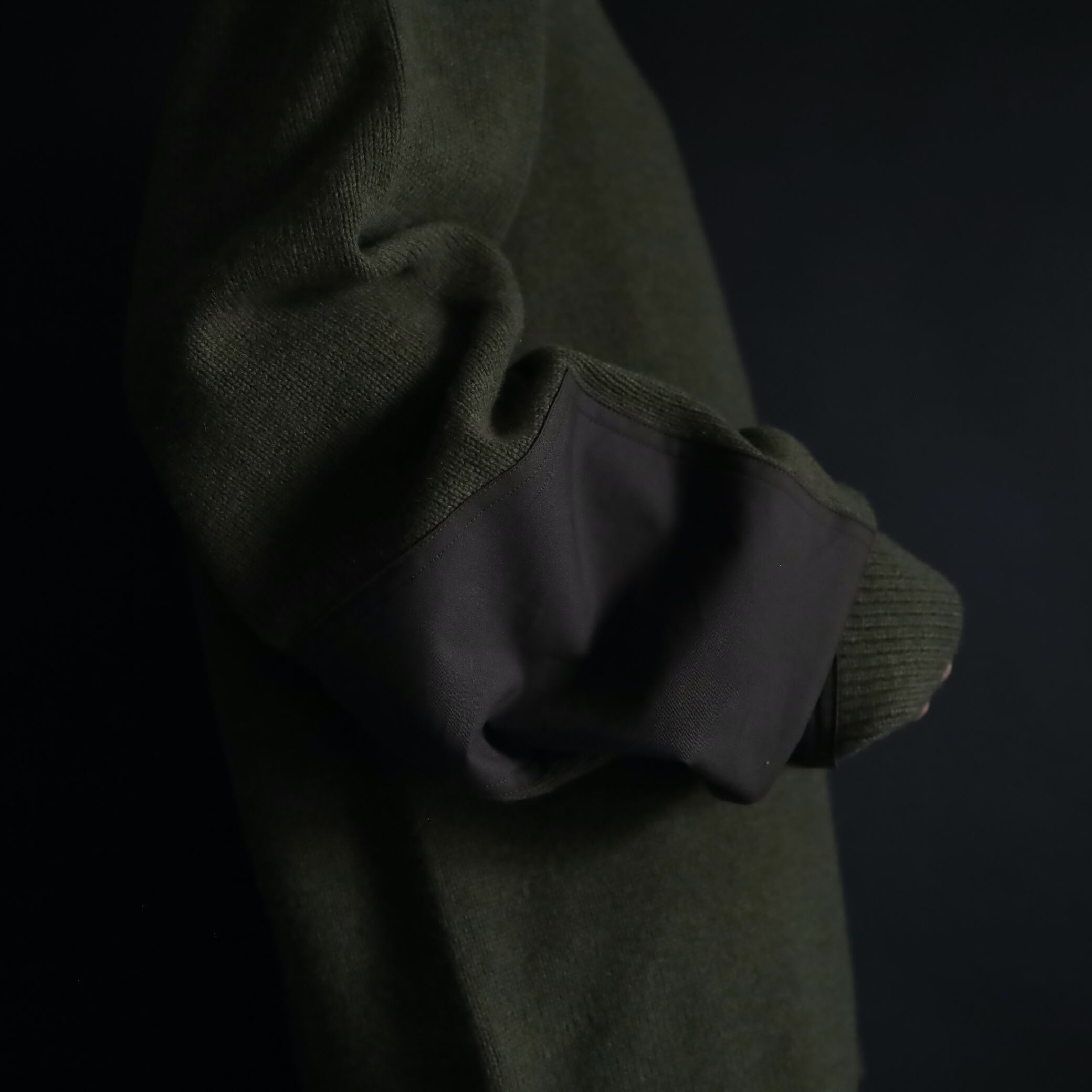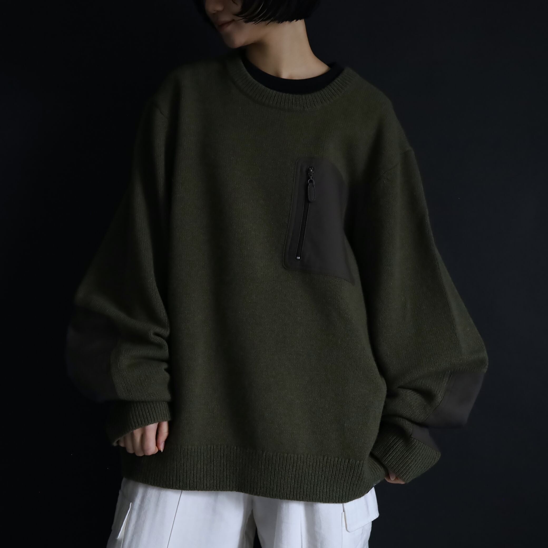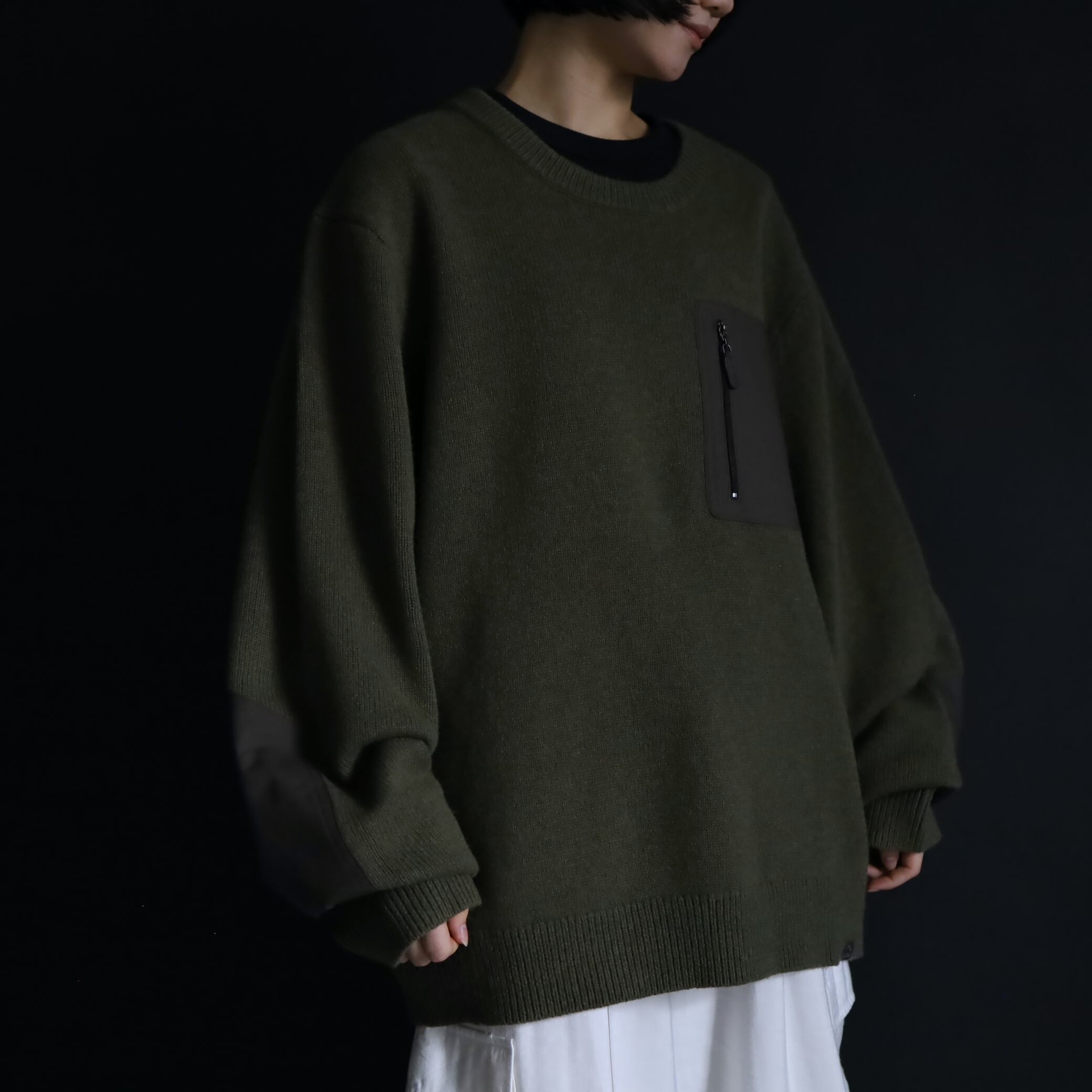 両袖にはエルボーパッチ付きで,ニットの弱点である耐久面もカバーしています.