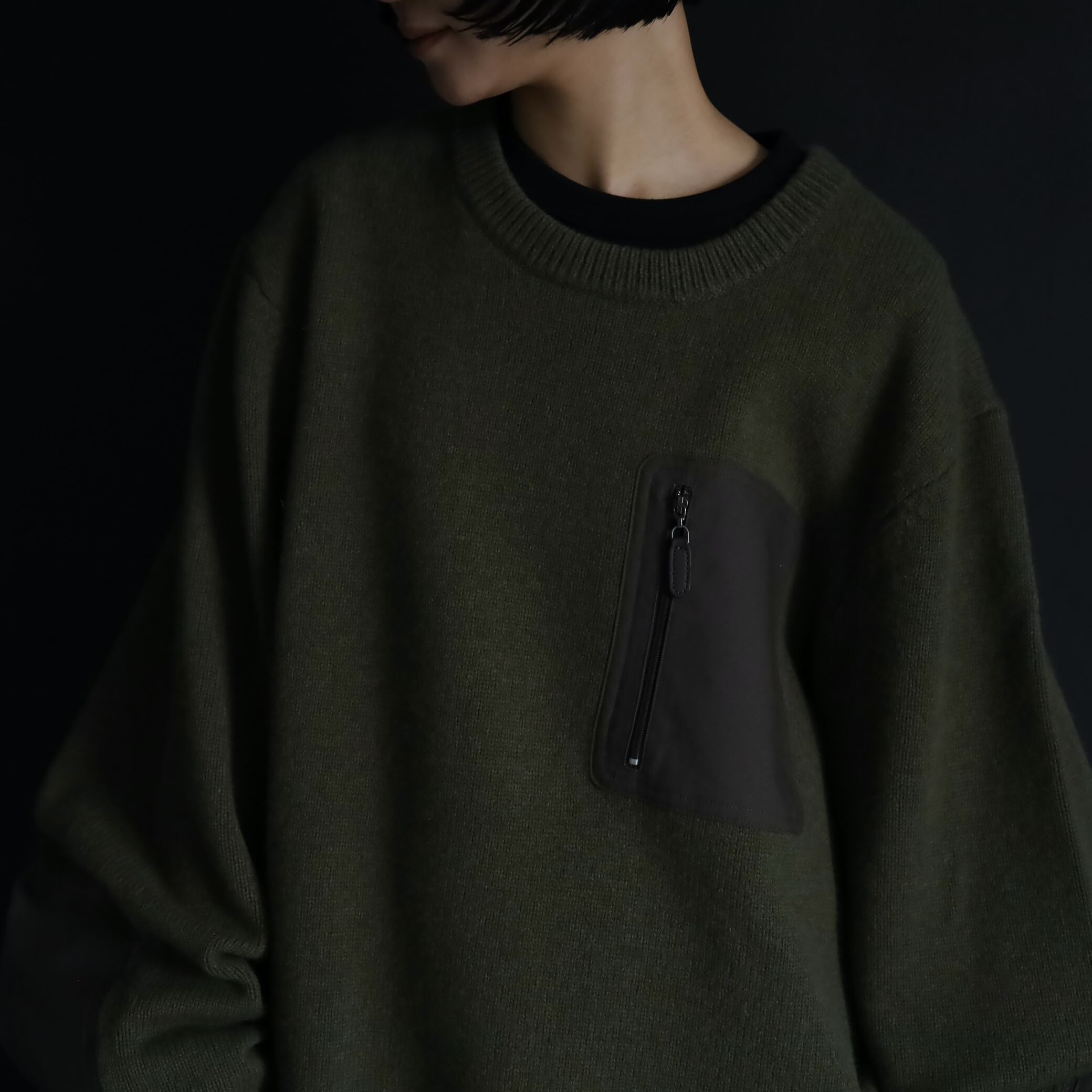ニット単体でもいい主張をしつつも,この上にアウターも羽織りやすいボリューム感.