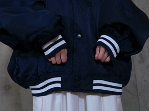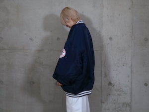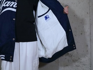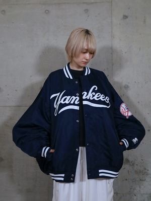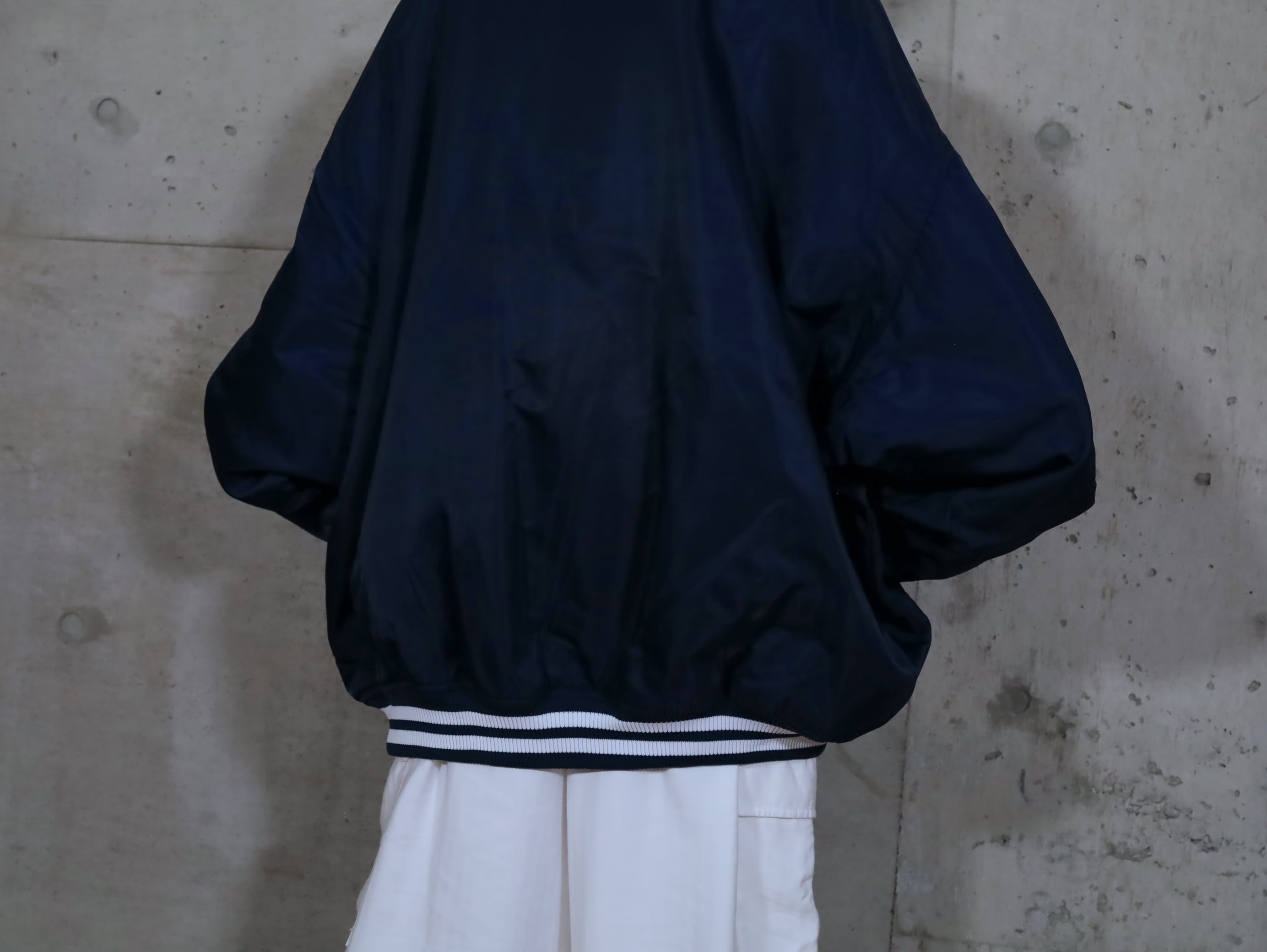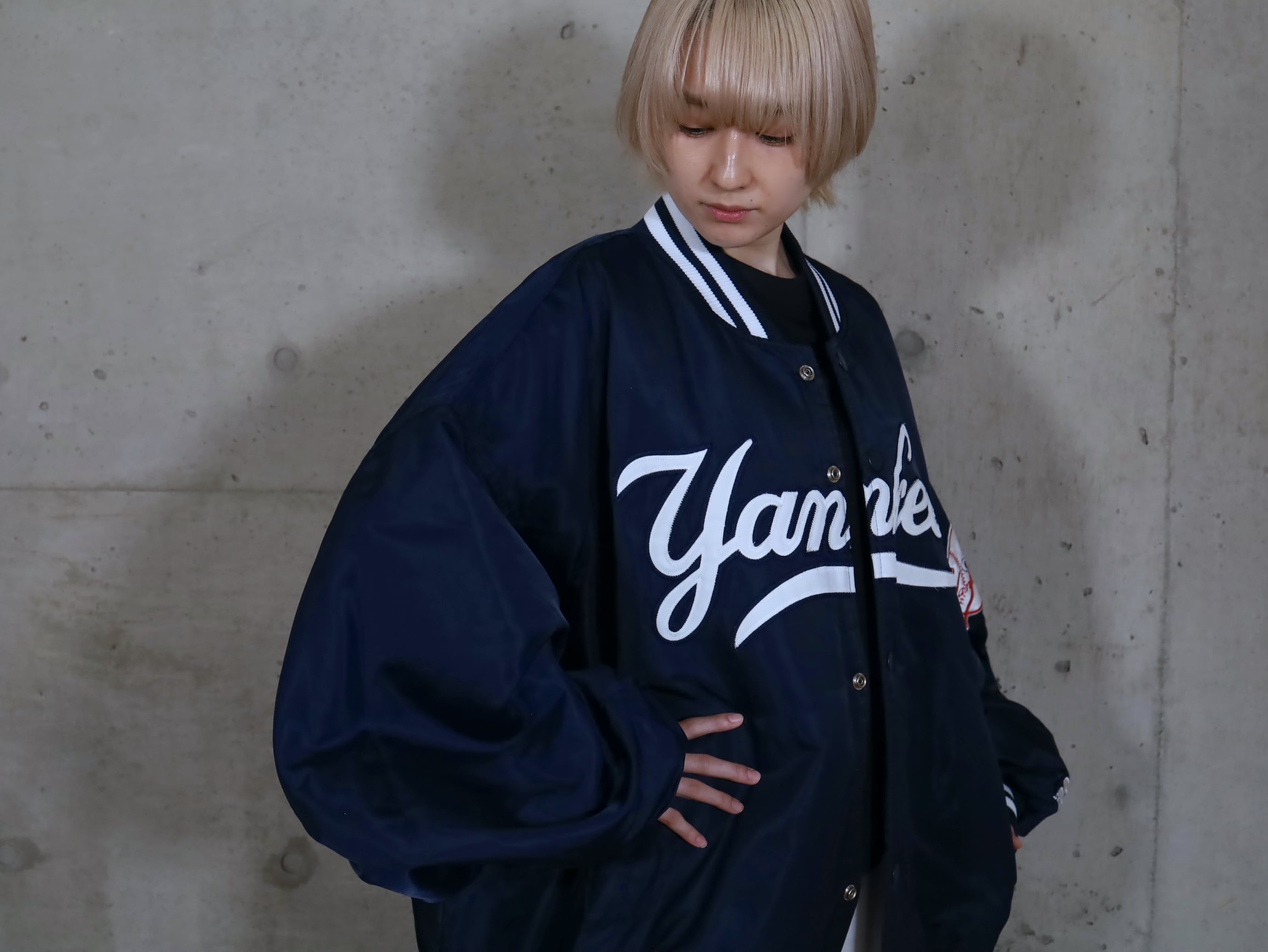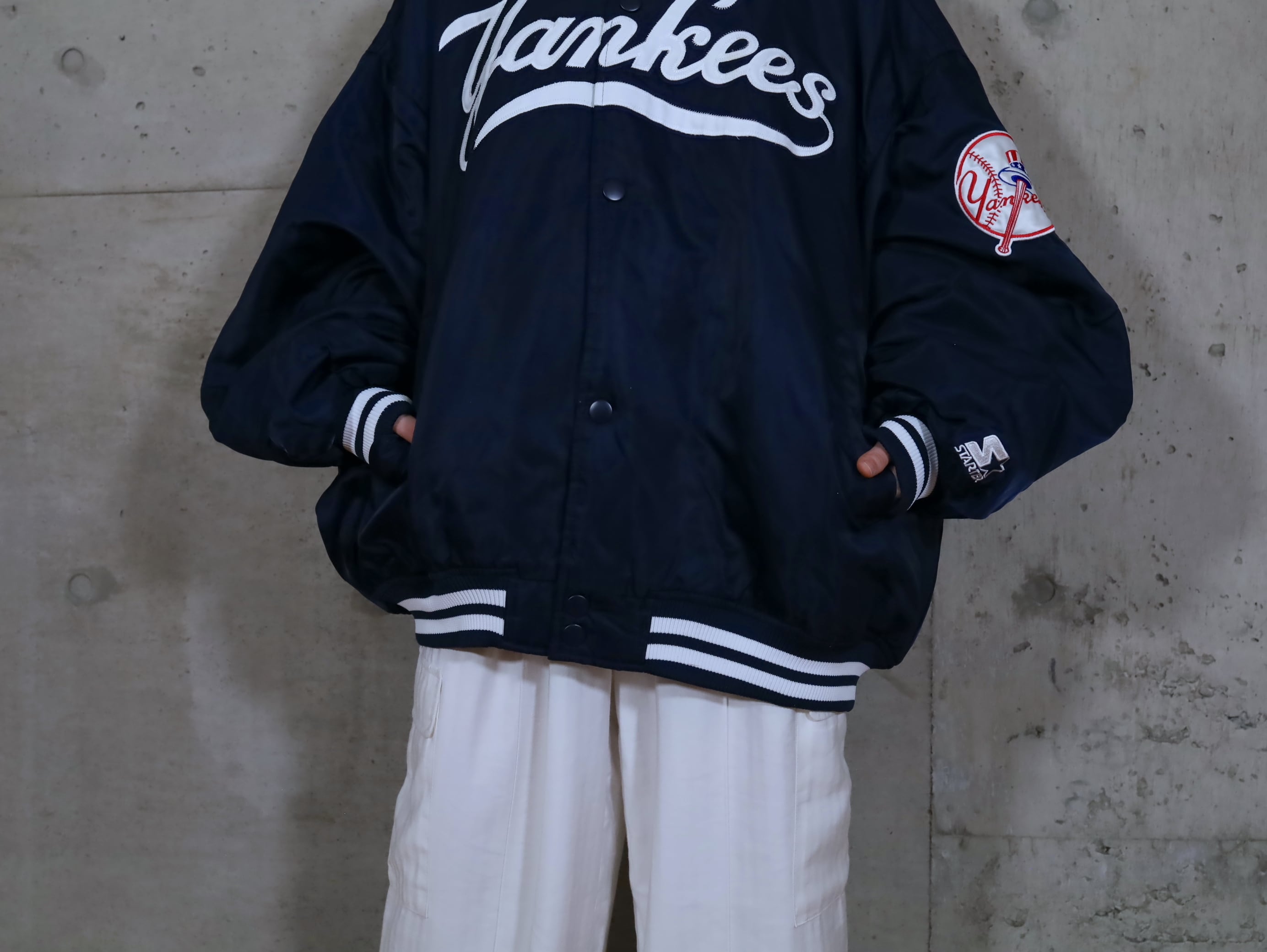 ネイビーカラーのナイロンボディをシェルに,フロントにMLB New York Yankeesの刺繍,左袖にはワッペンがデザインされた1着.