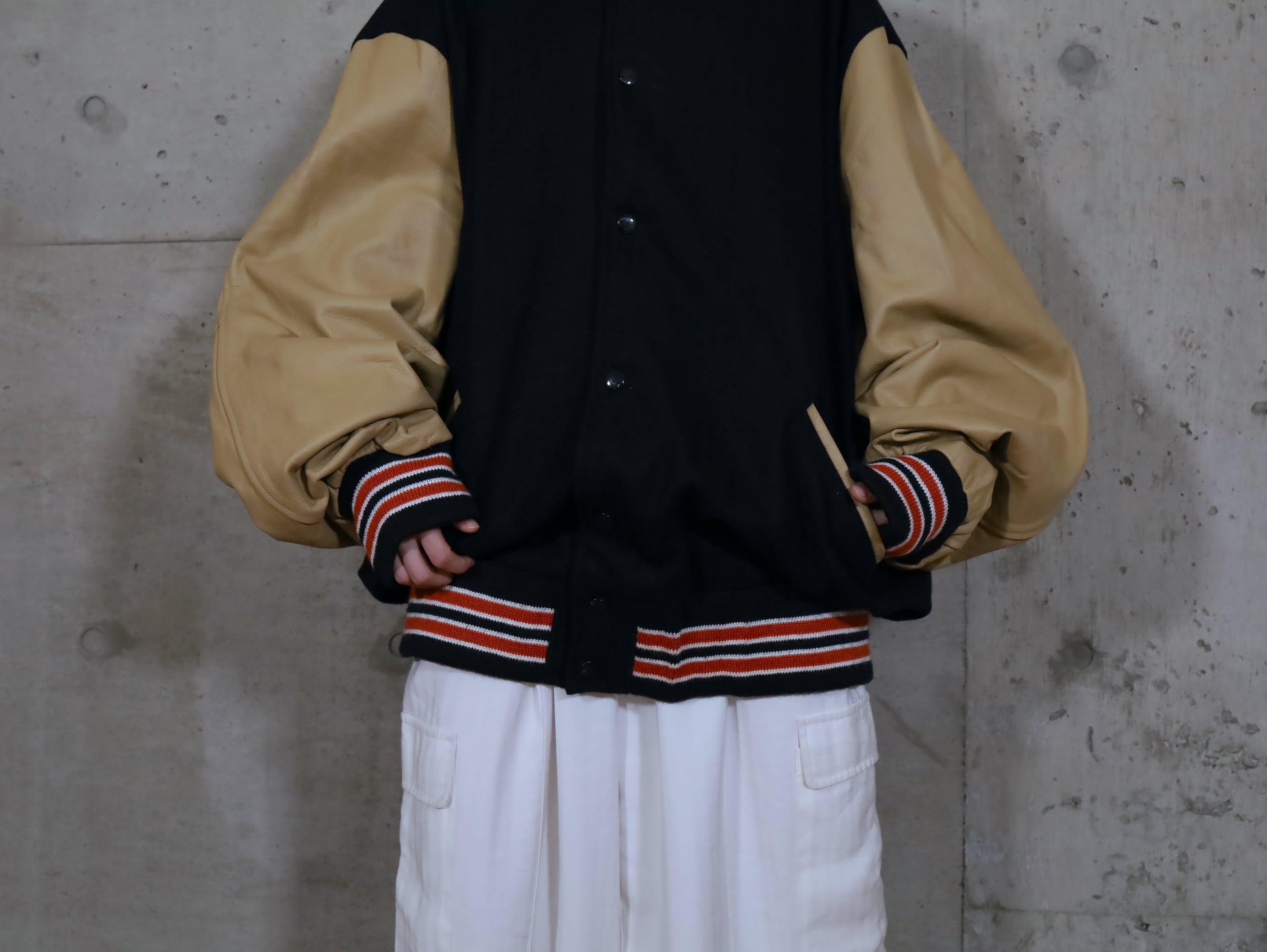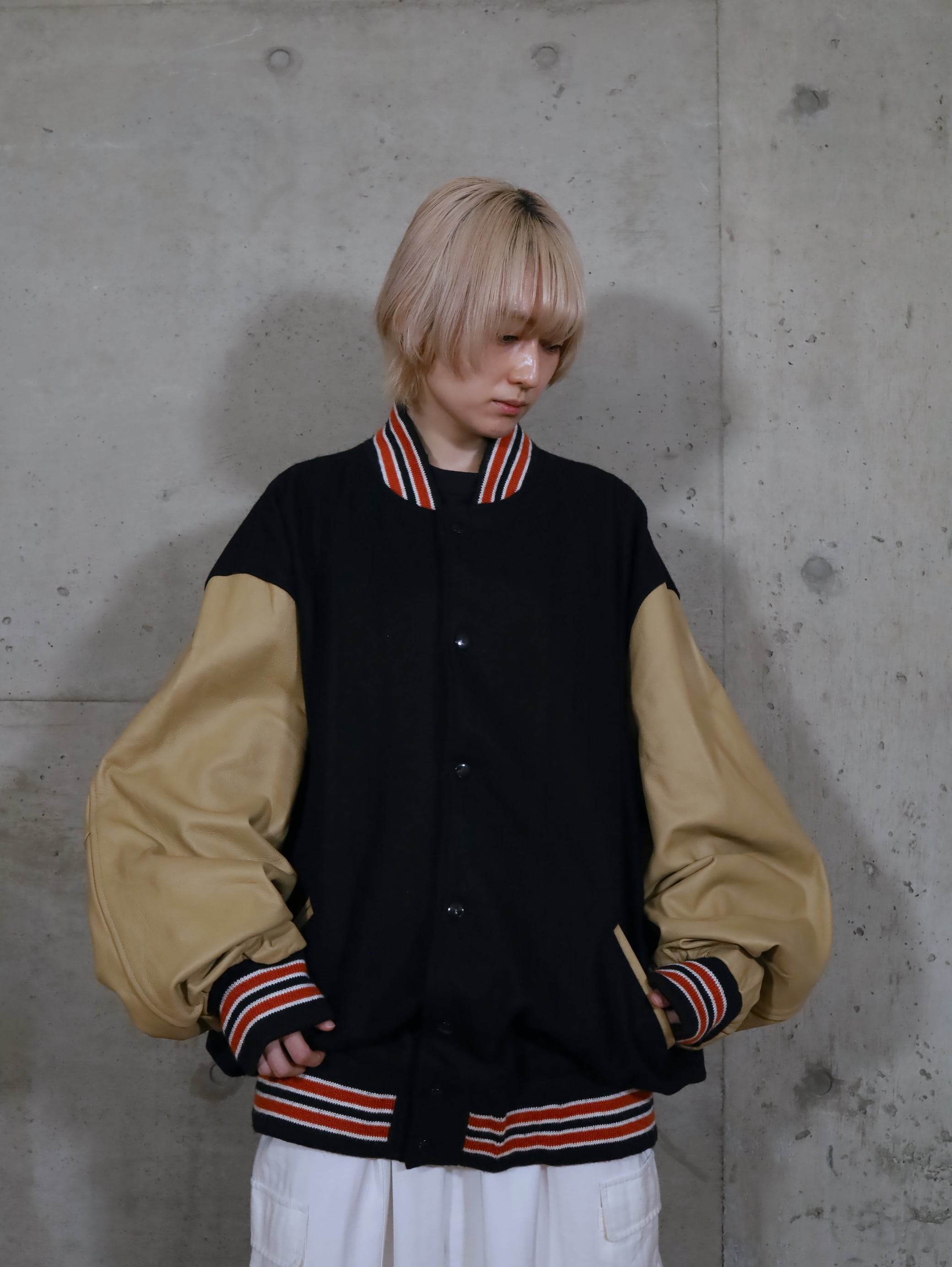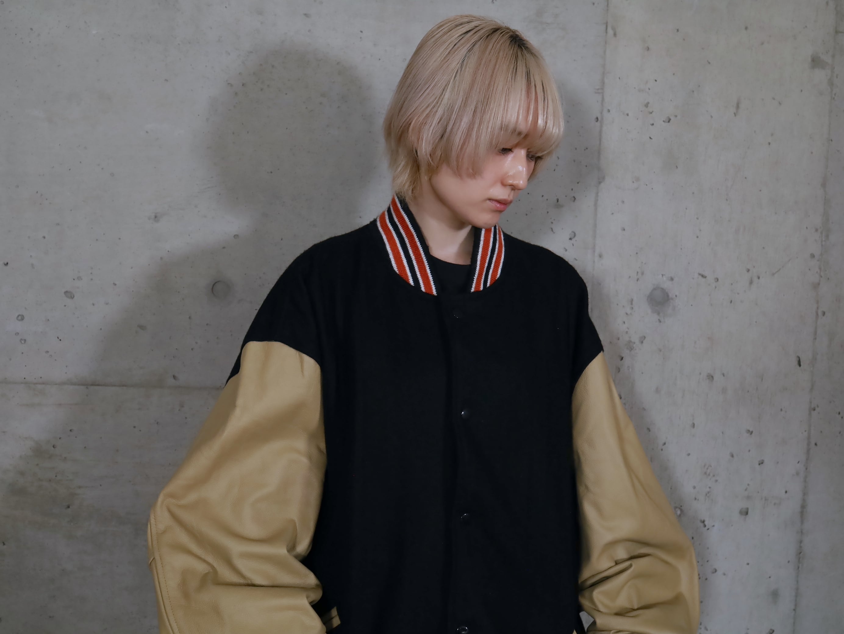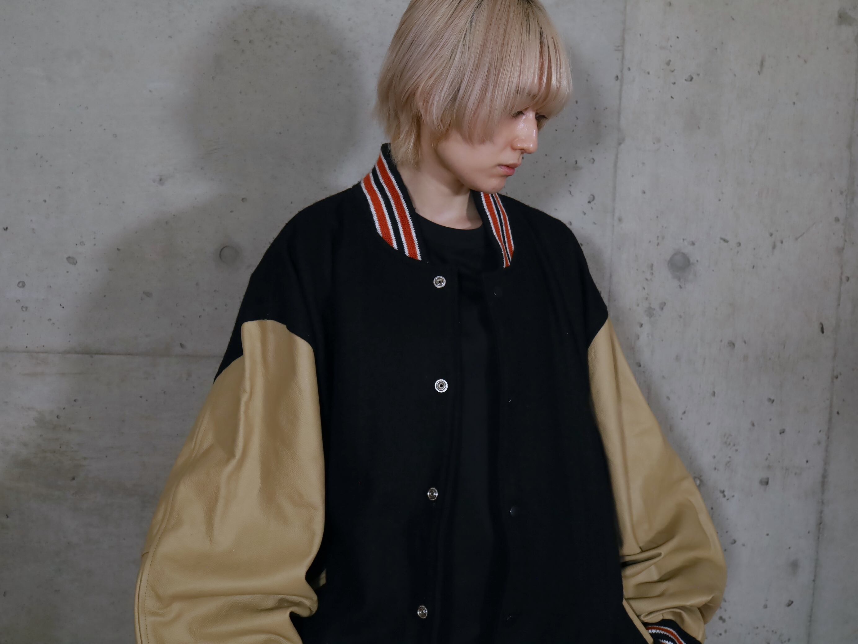 ウール×レザー切替スタジアムジャンパー.