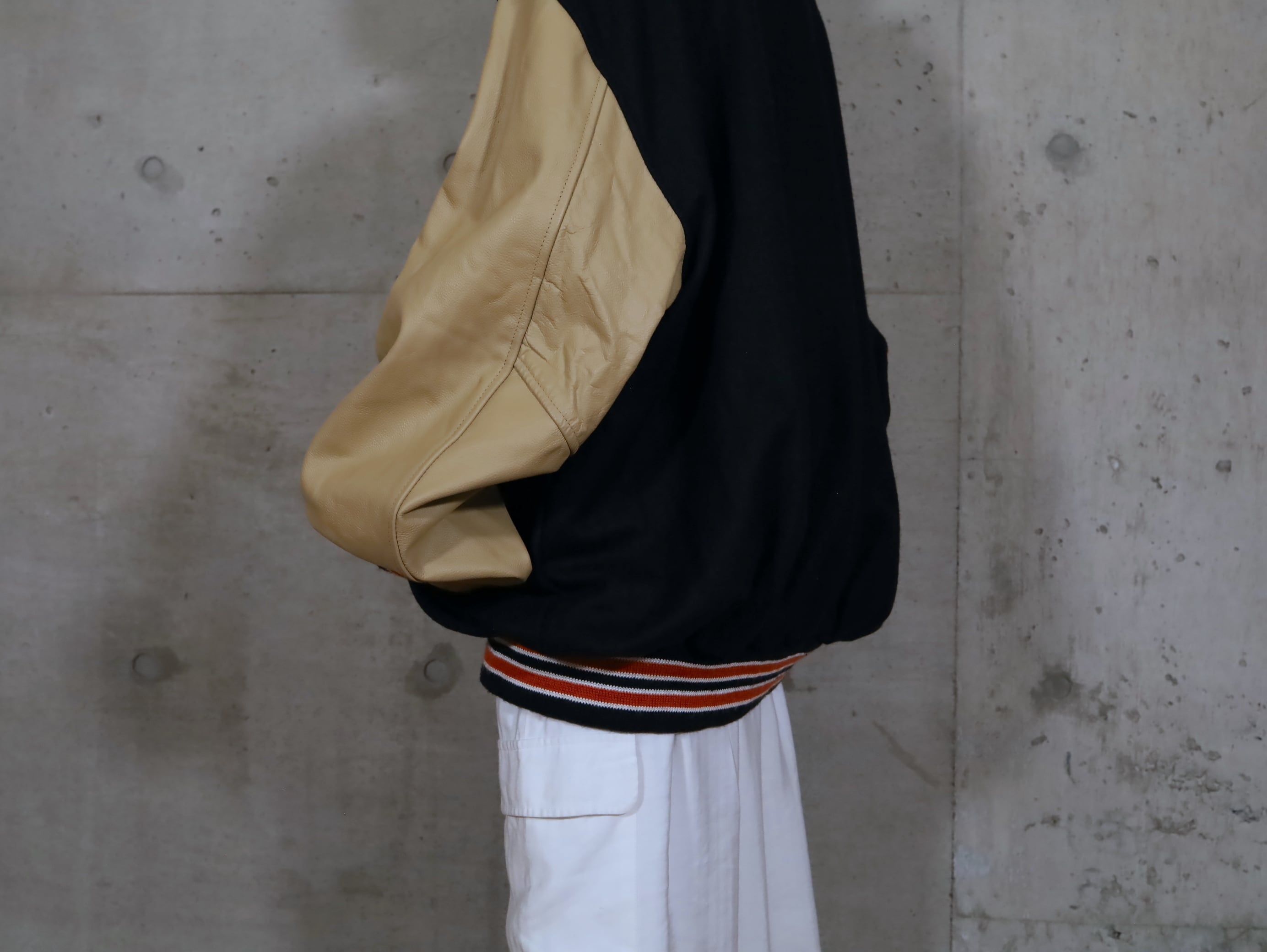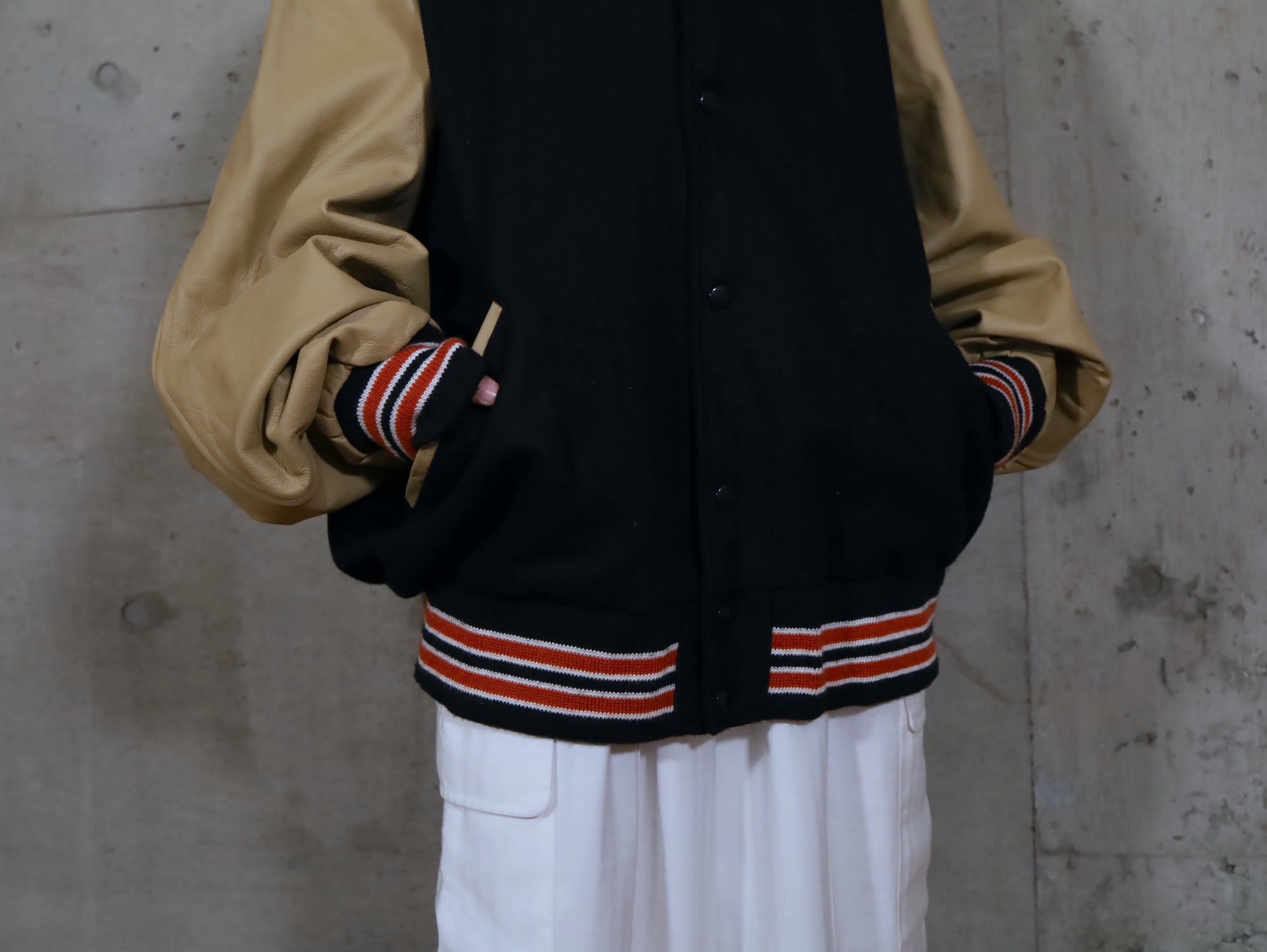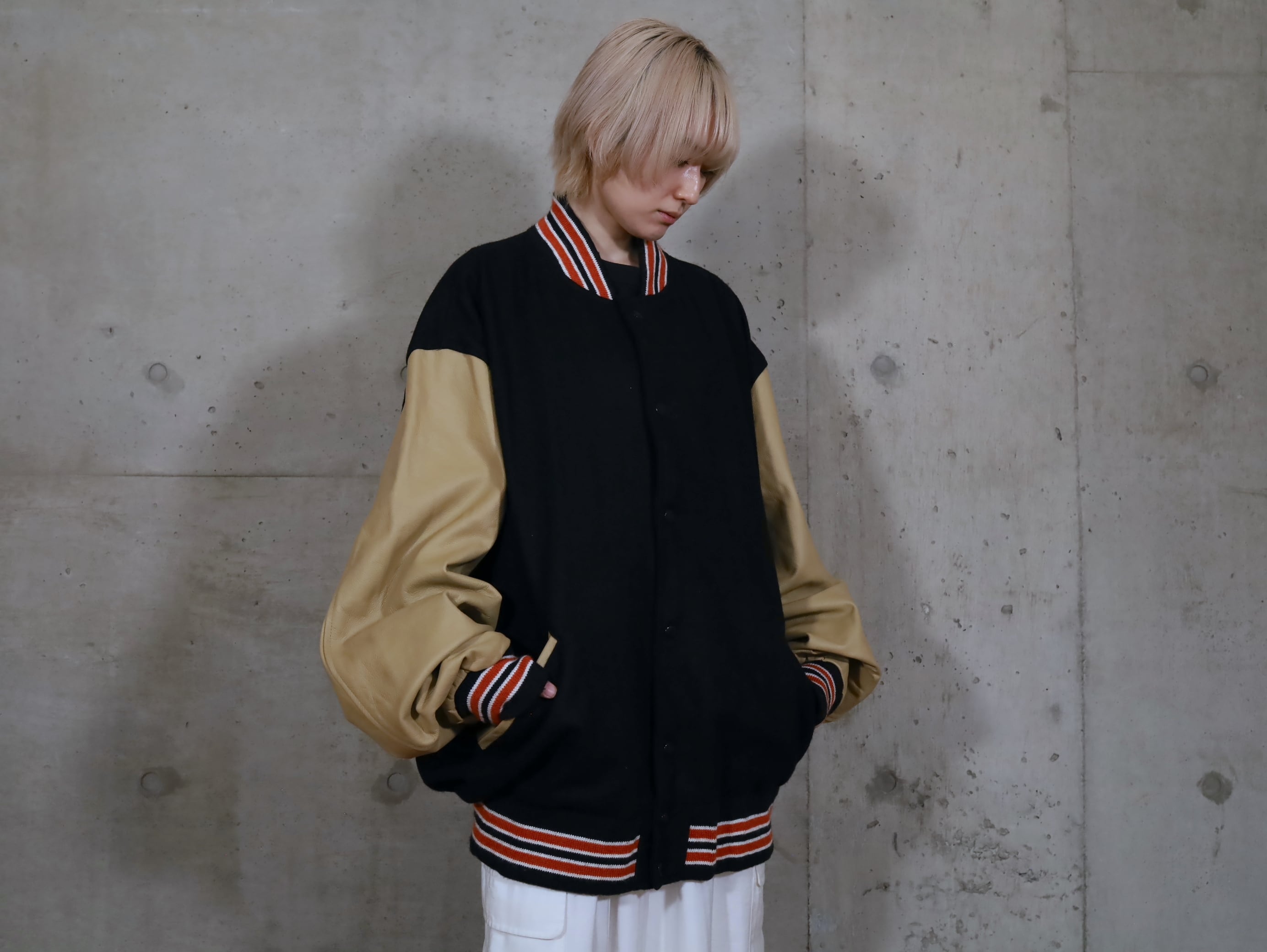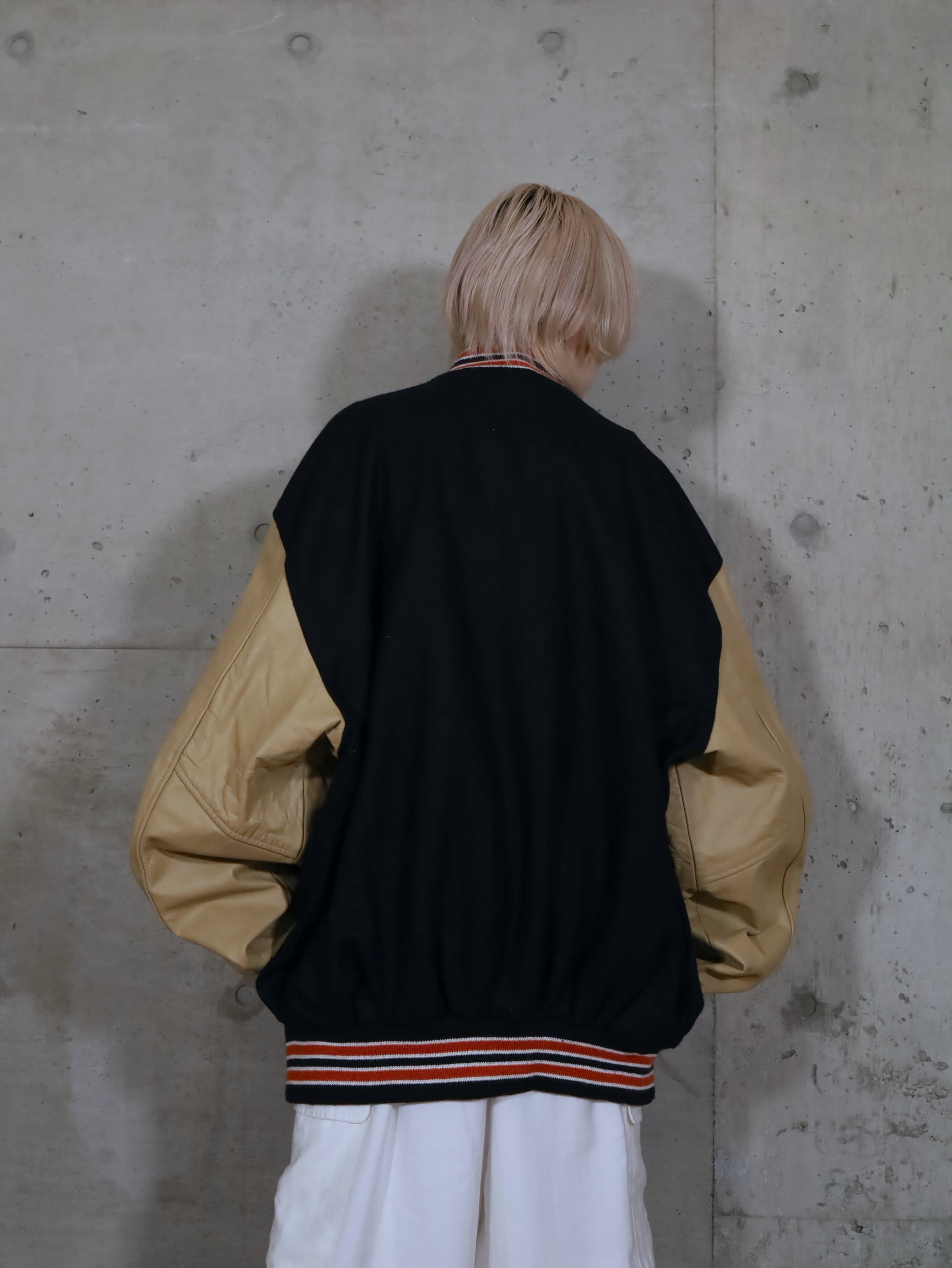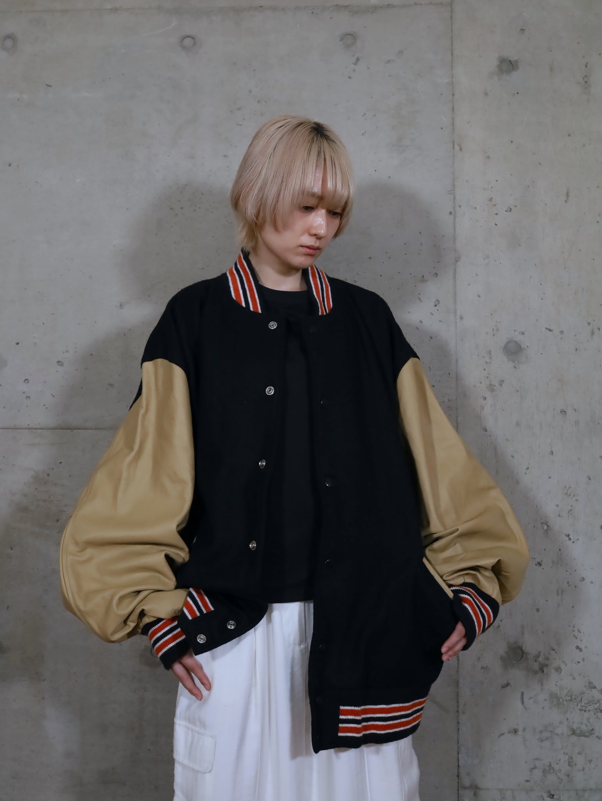 ウール×レザー切替スタジアムジャンパー.