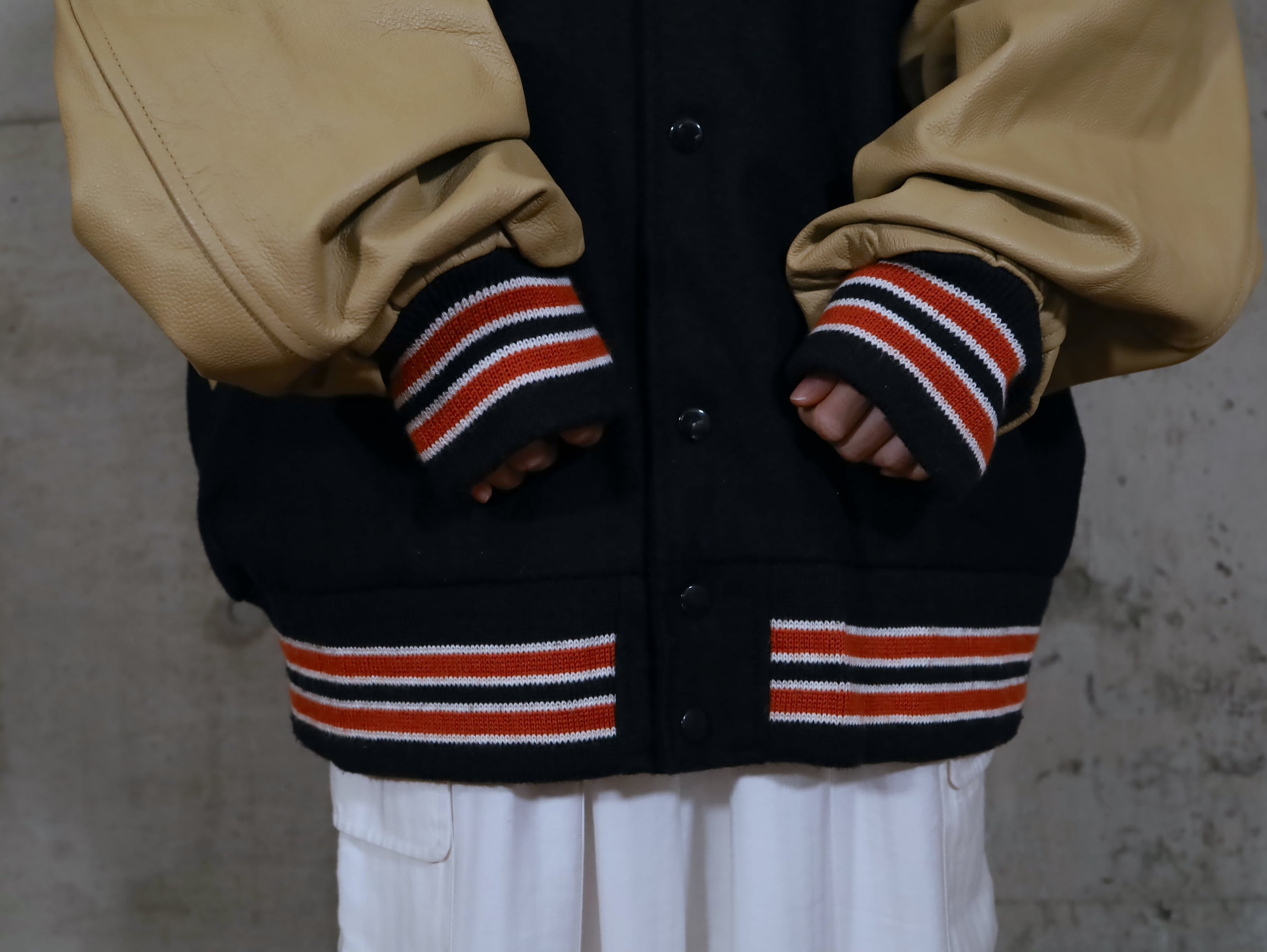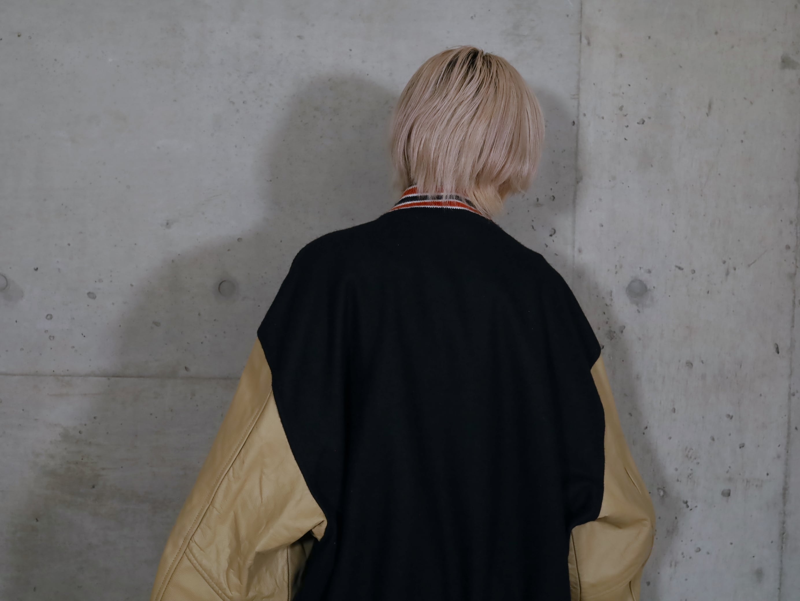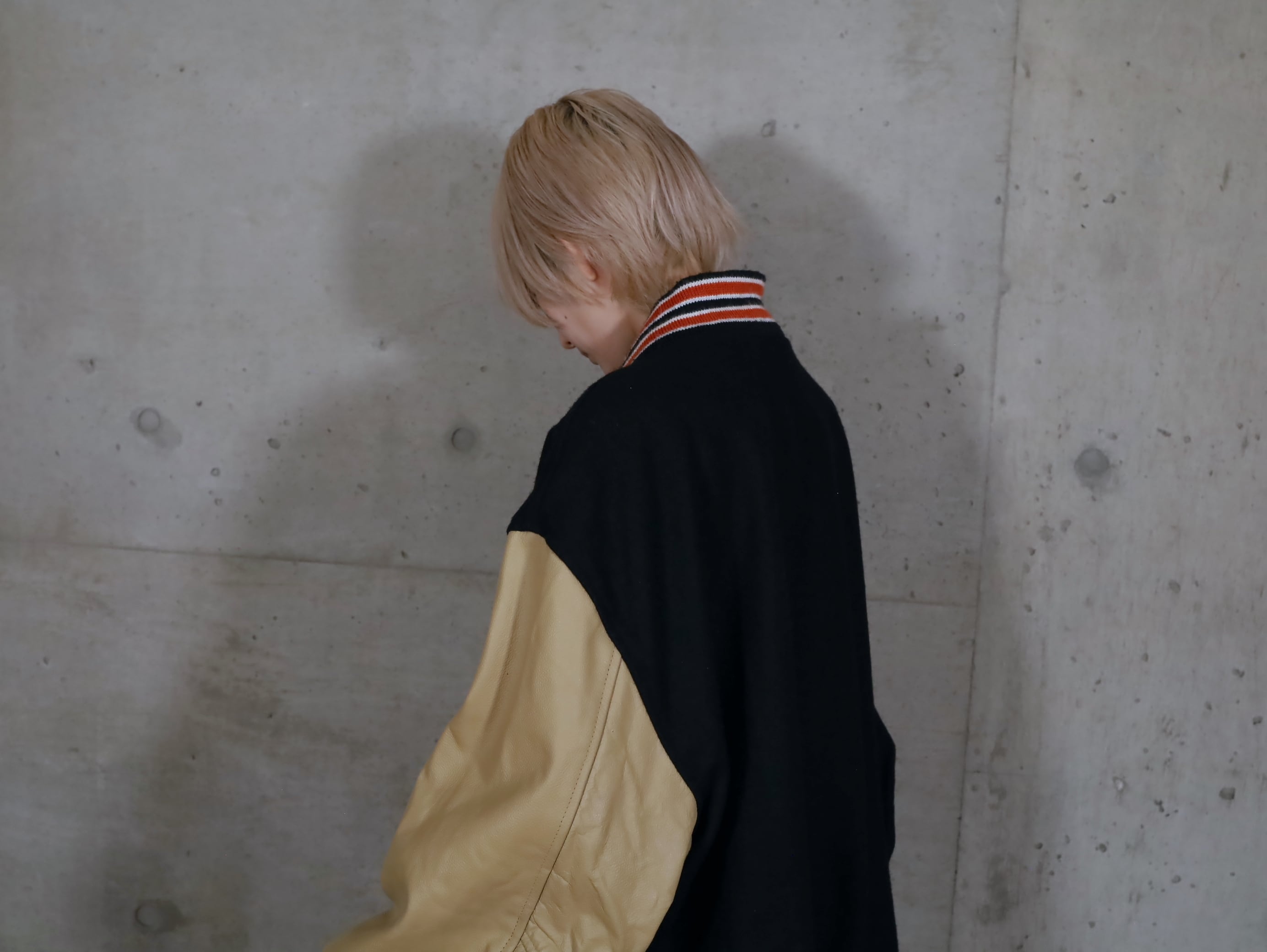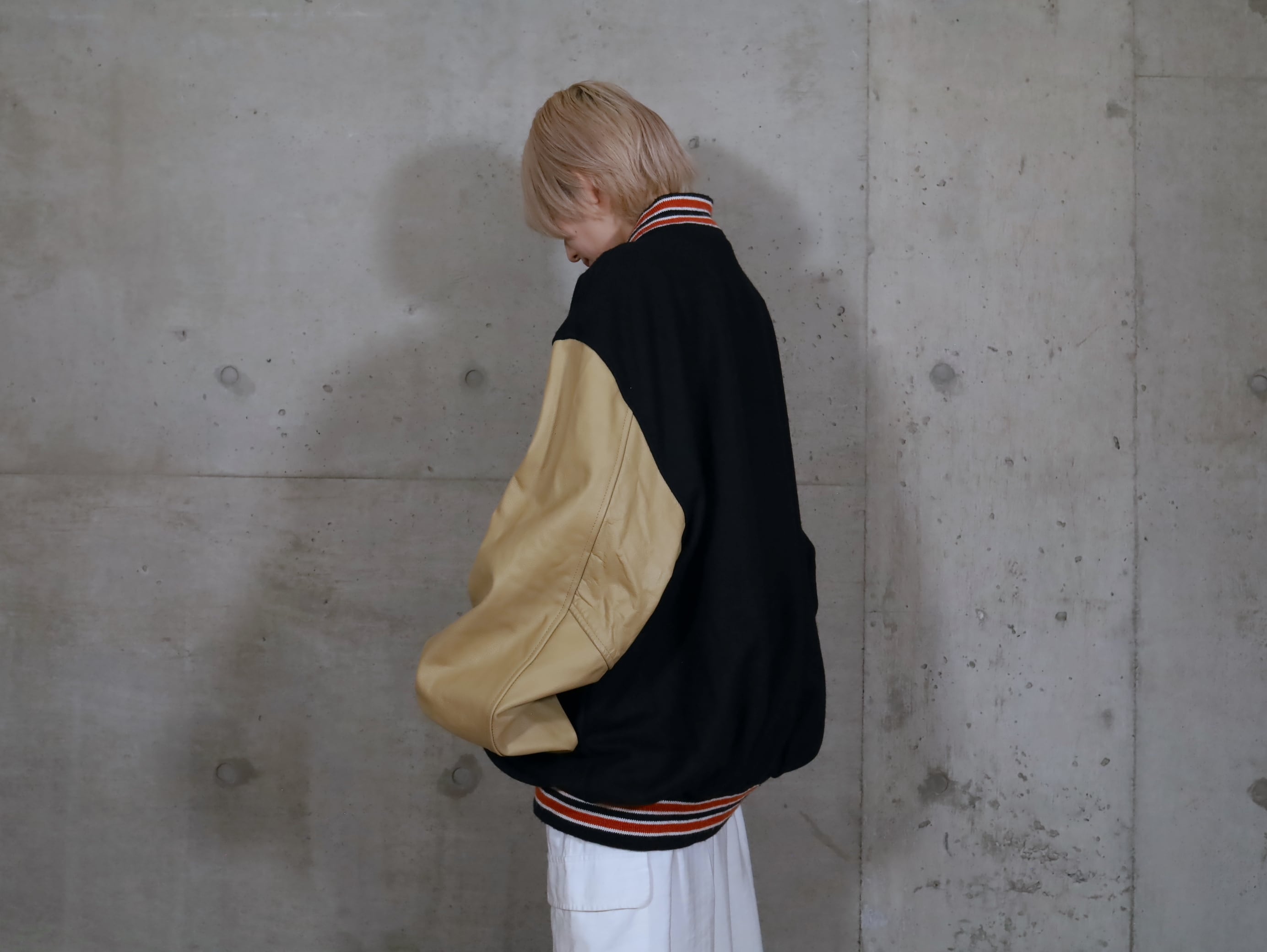 ウール×レザー切替スタジアムジャンパー.