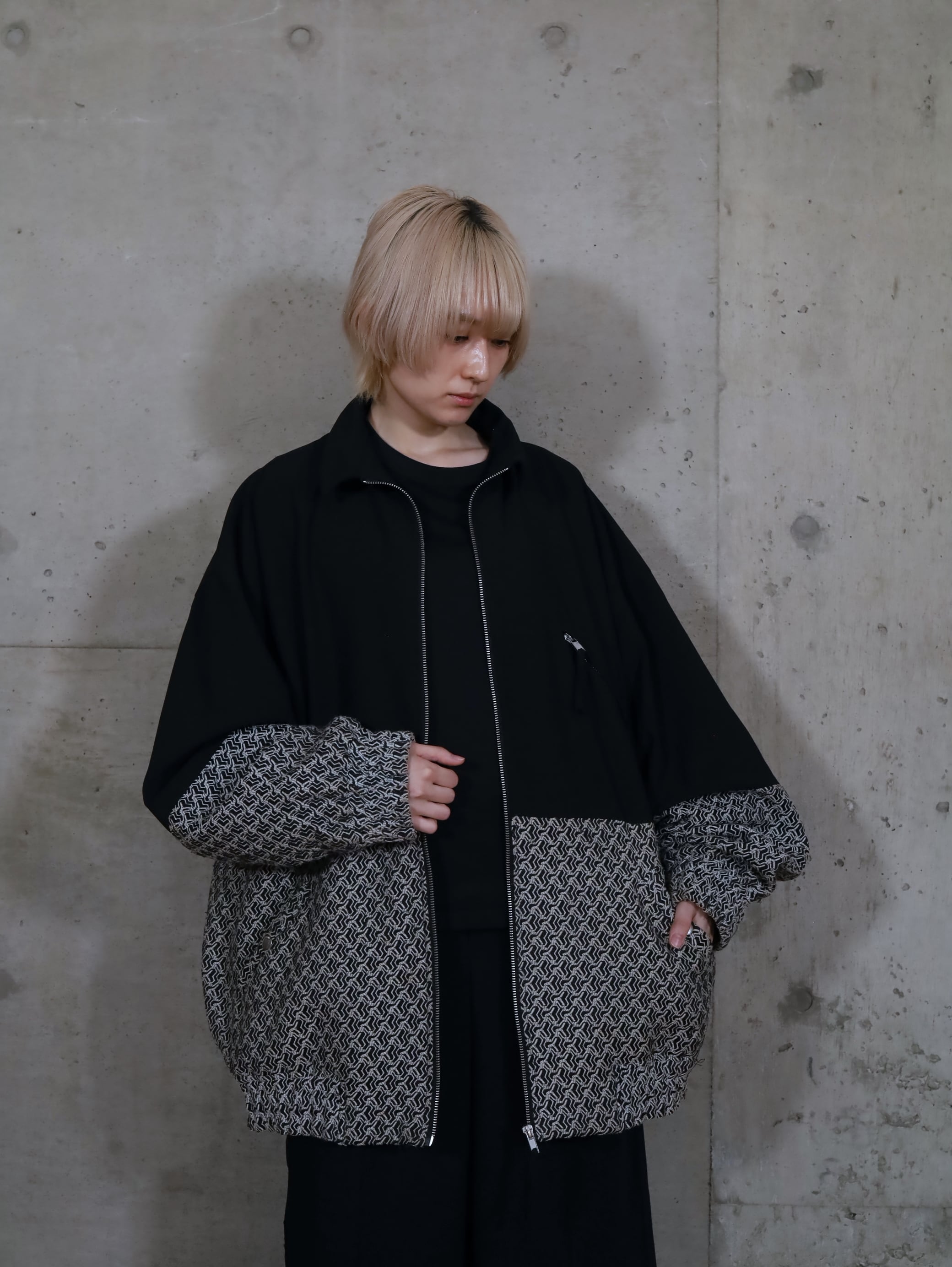 刺繍切替ジップアップジャケット.