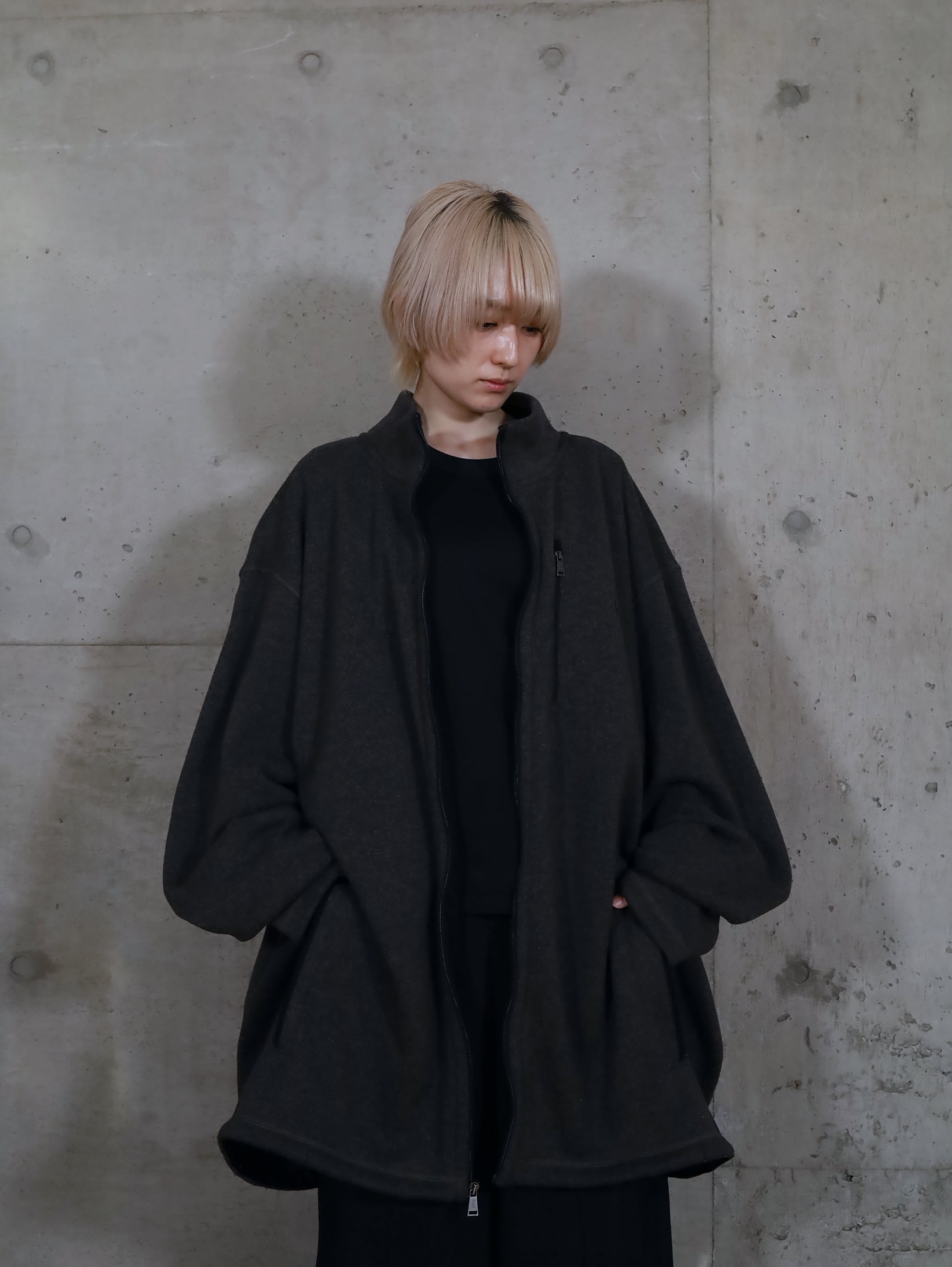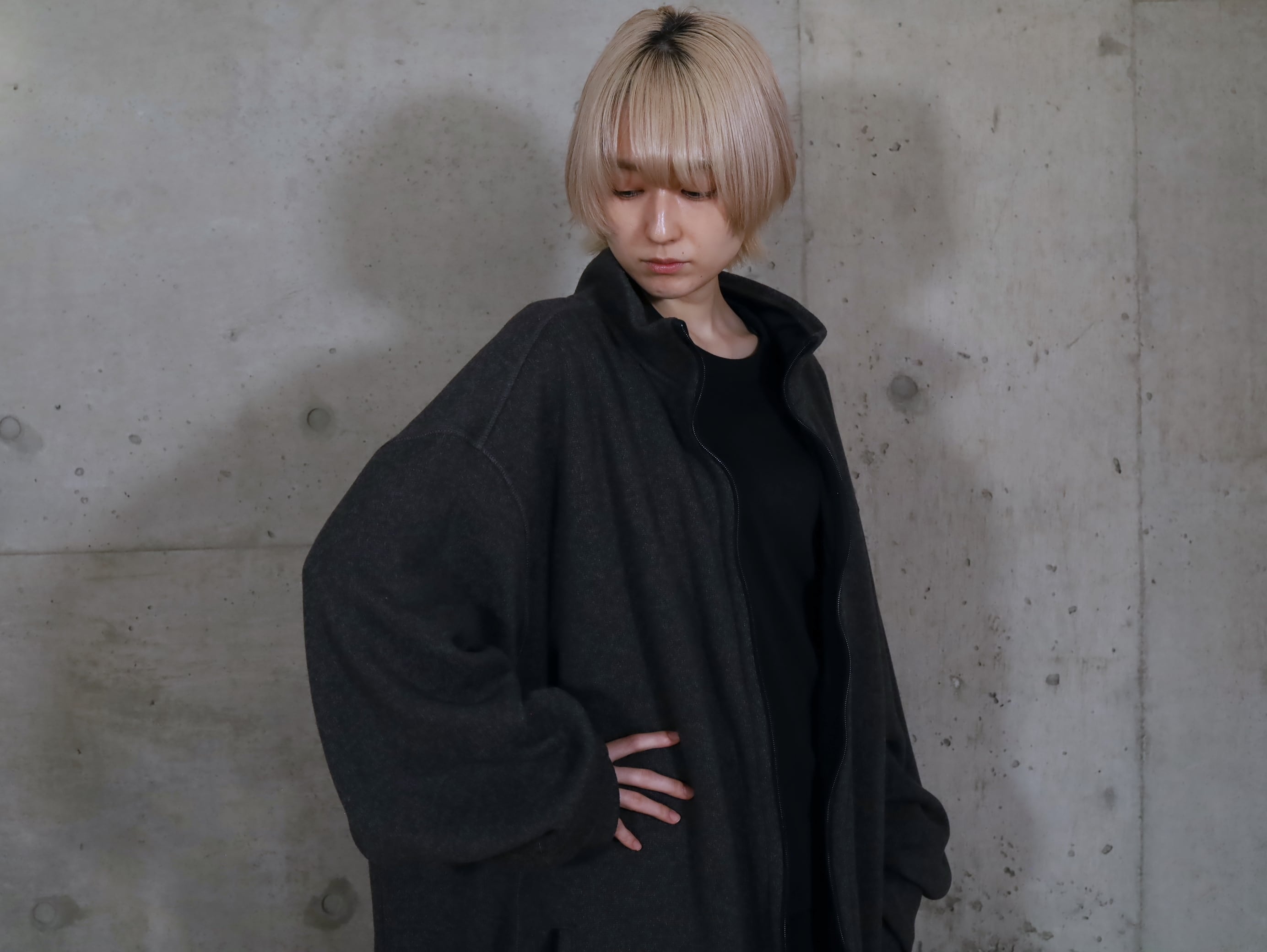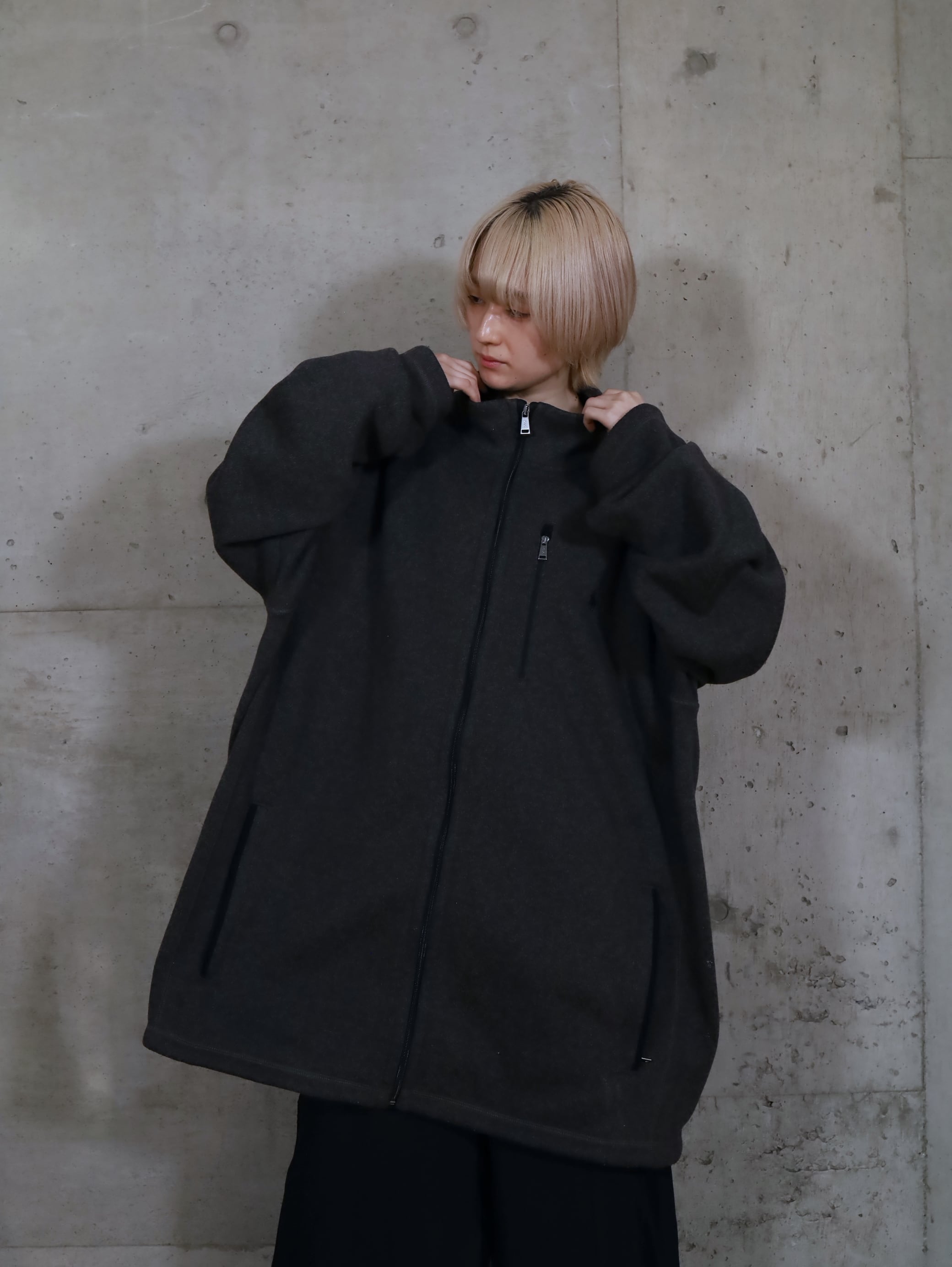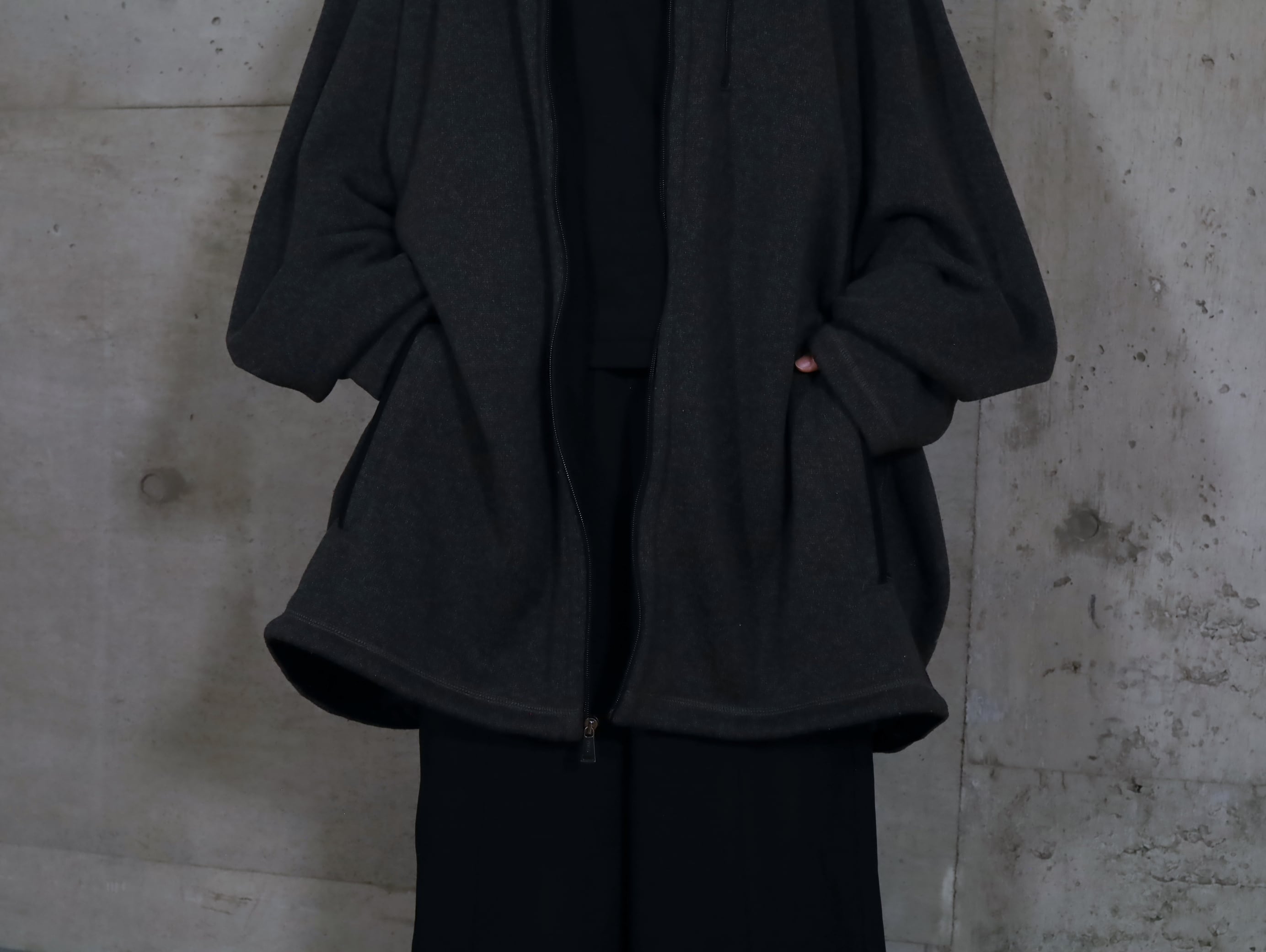 対してジップを上まで閉めた際には,緩やかなAラインシルエットにまとまり,また違った表情を魅せてくれます.