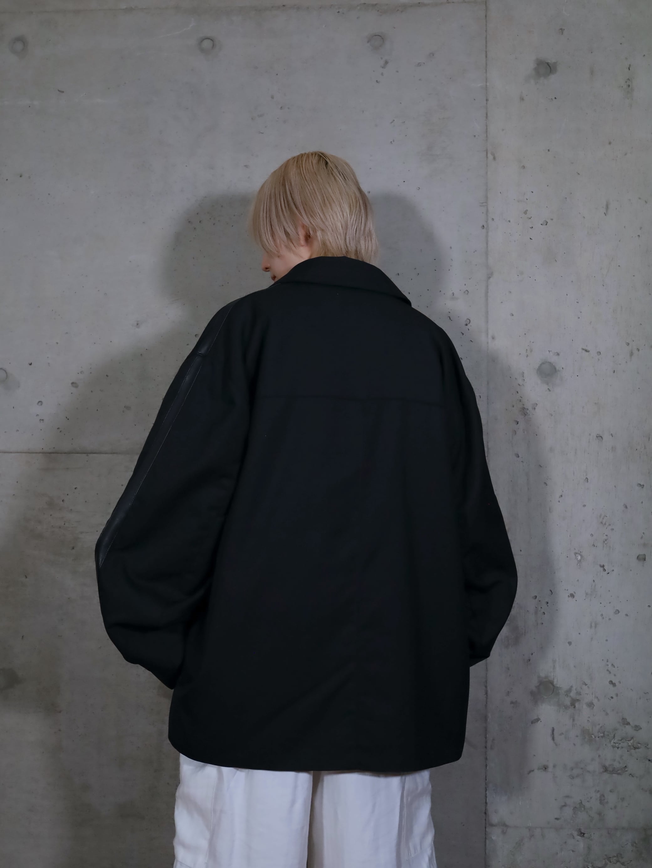 肩から袖先まではブラックのレザーラインが走り,同色異素材切替がほどよい主張を見せます.