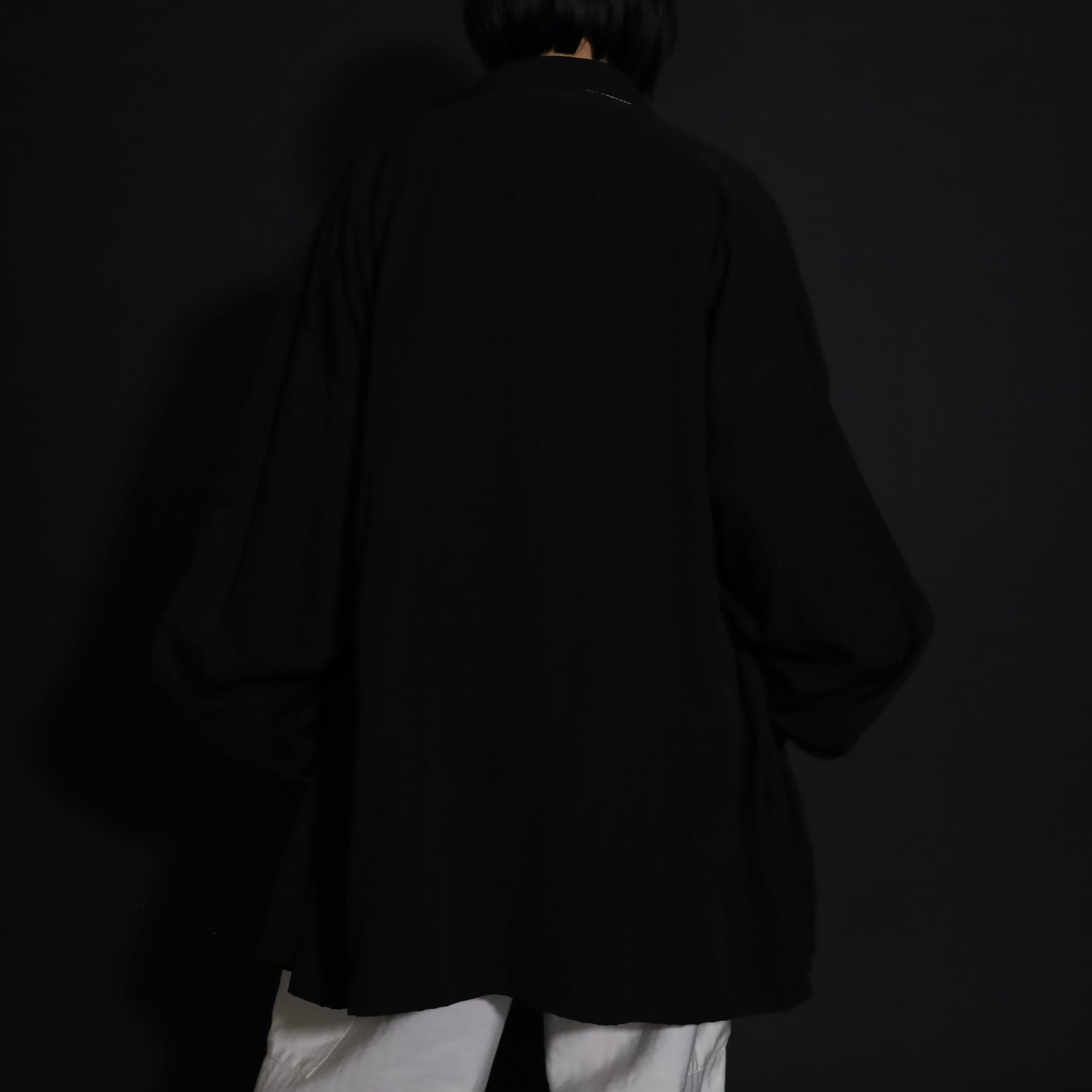 サイズXXLのビッグサイズですが,レーヨンらしい生地の落ち感により,野暮ったさのないこなれた雰囲気に仕上がります.