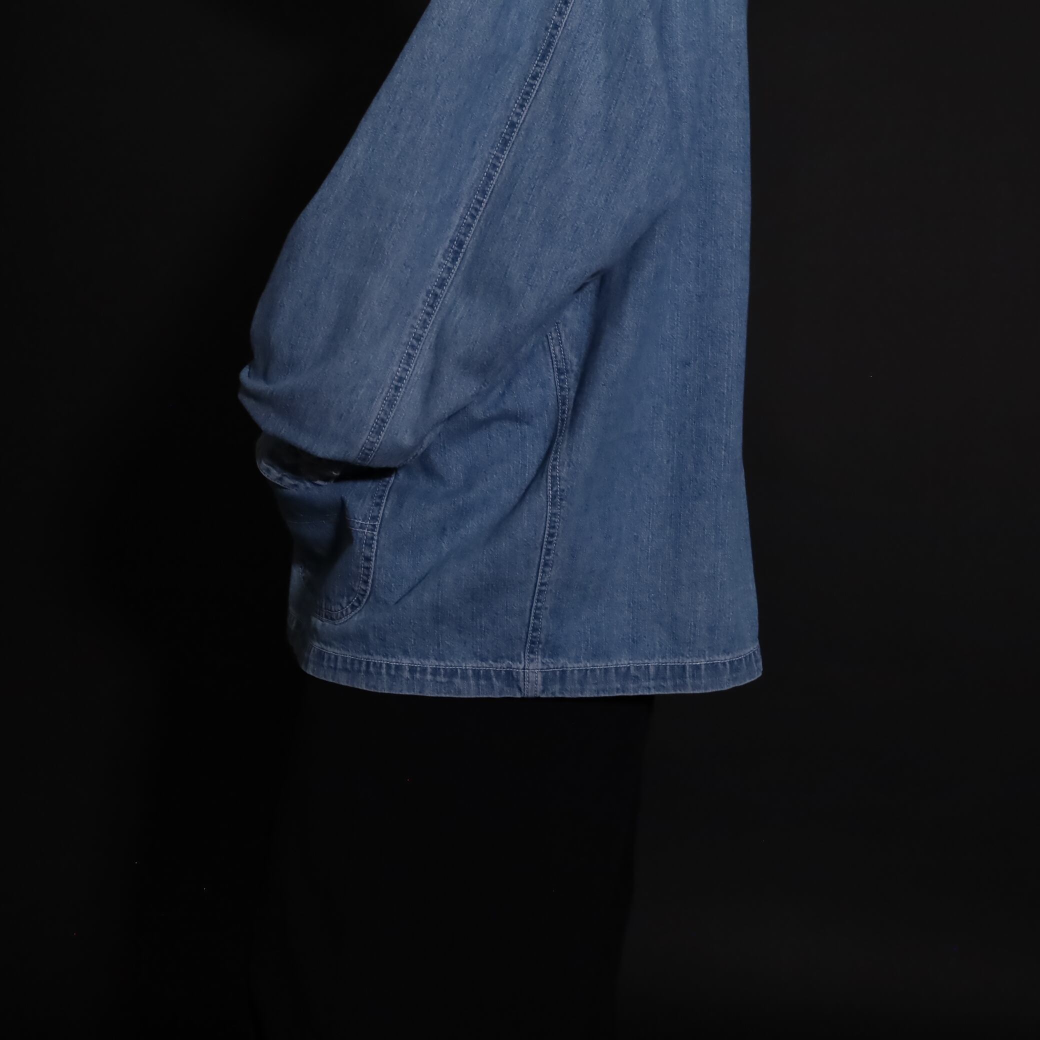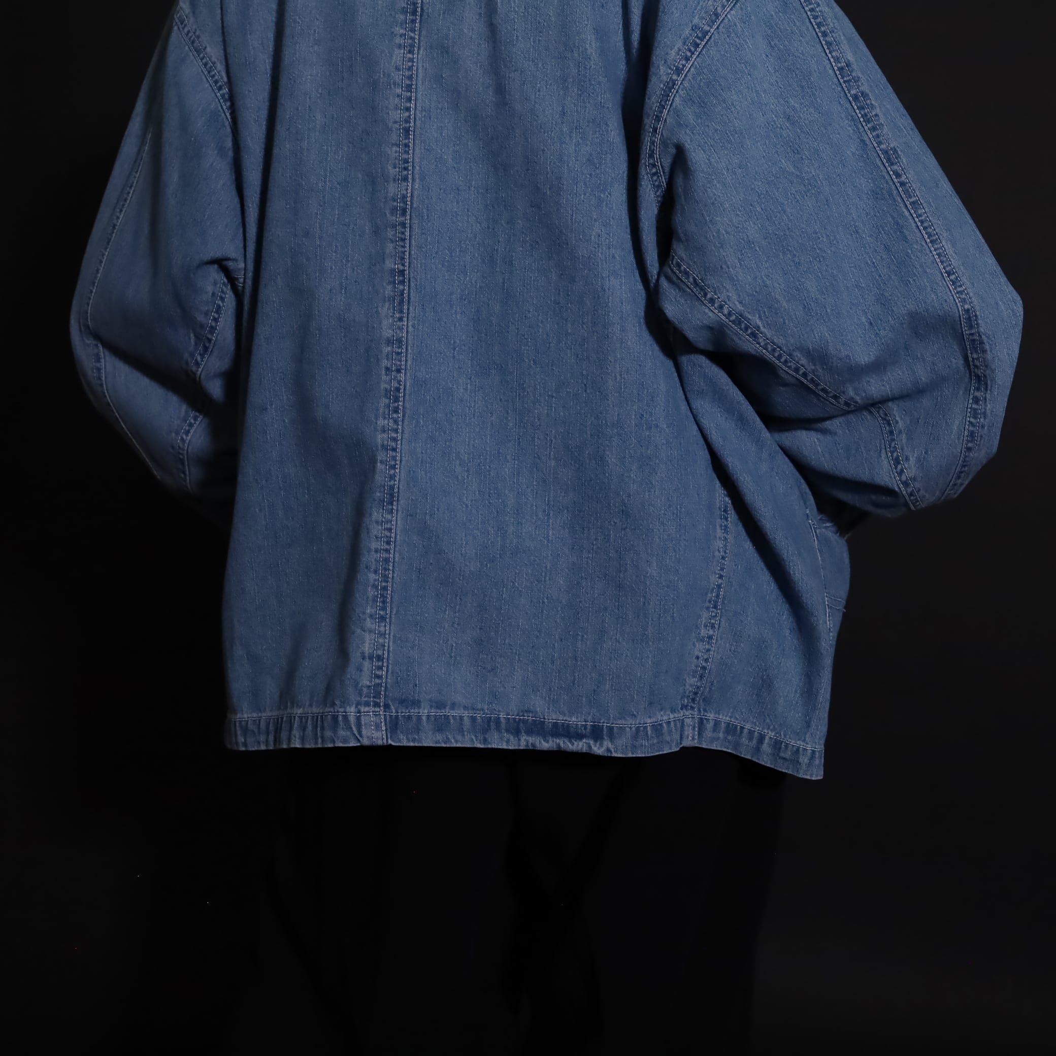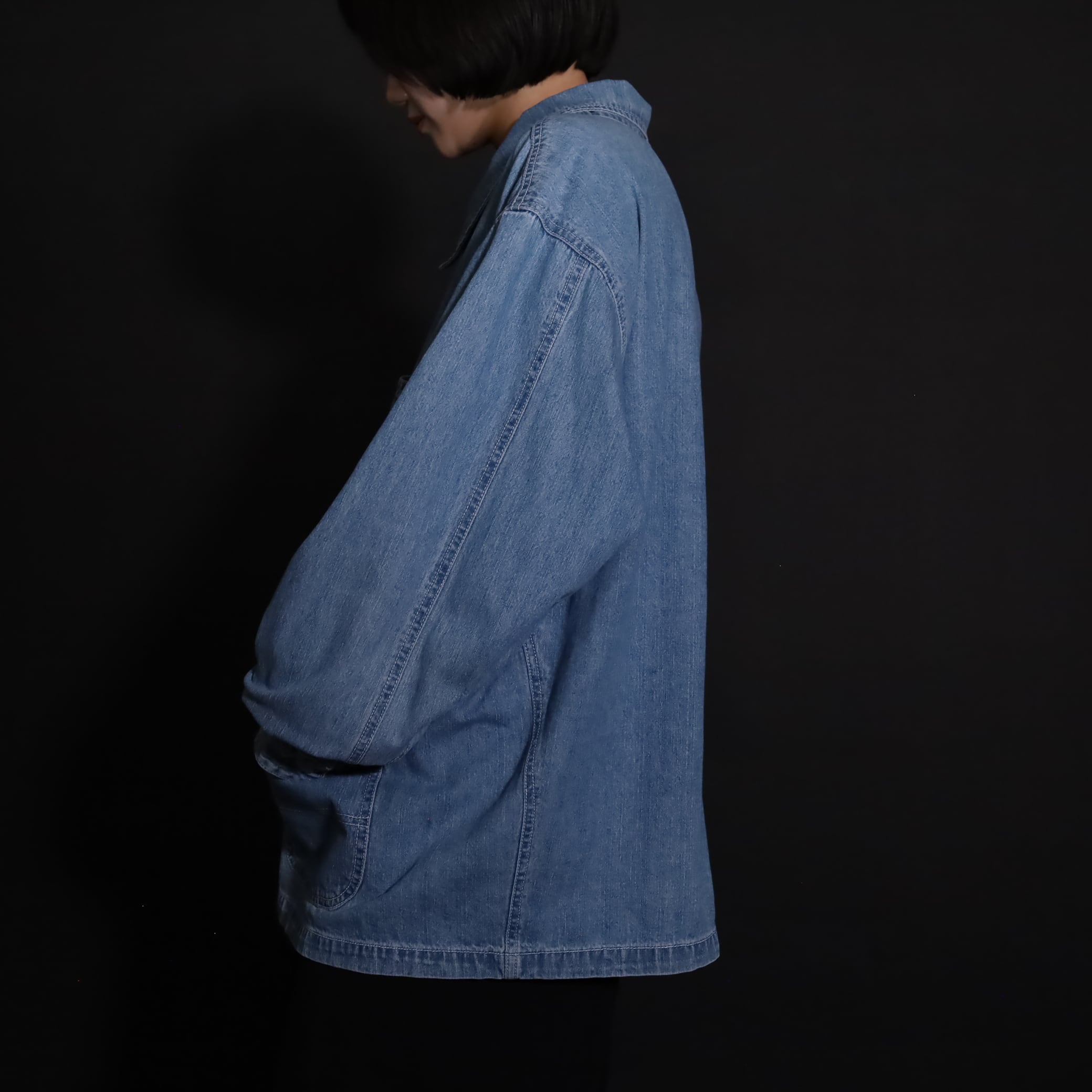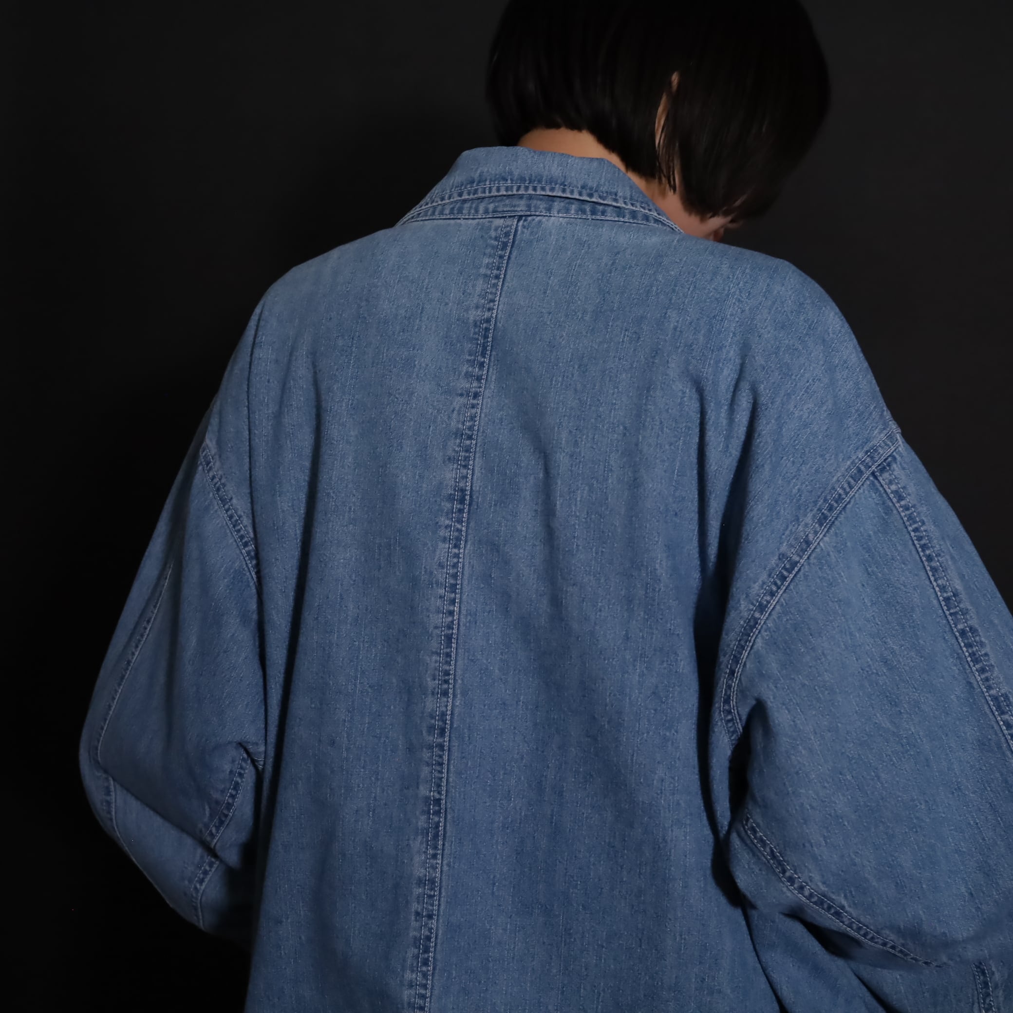 非常にライトオンスなデニム生地で,軽い着用感とくったりとした表情が魅力的.
