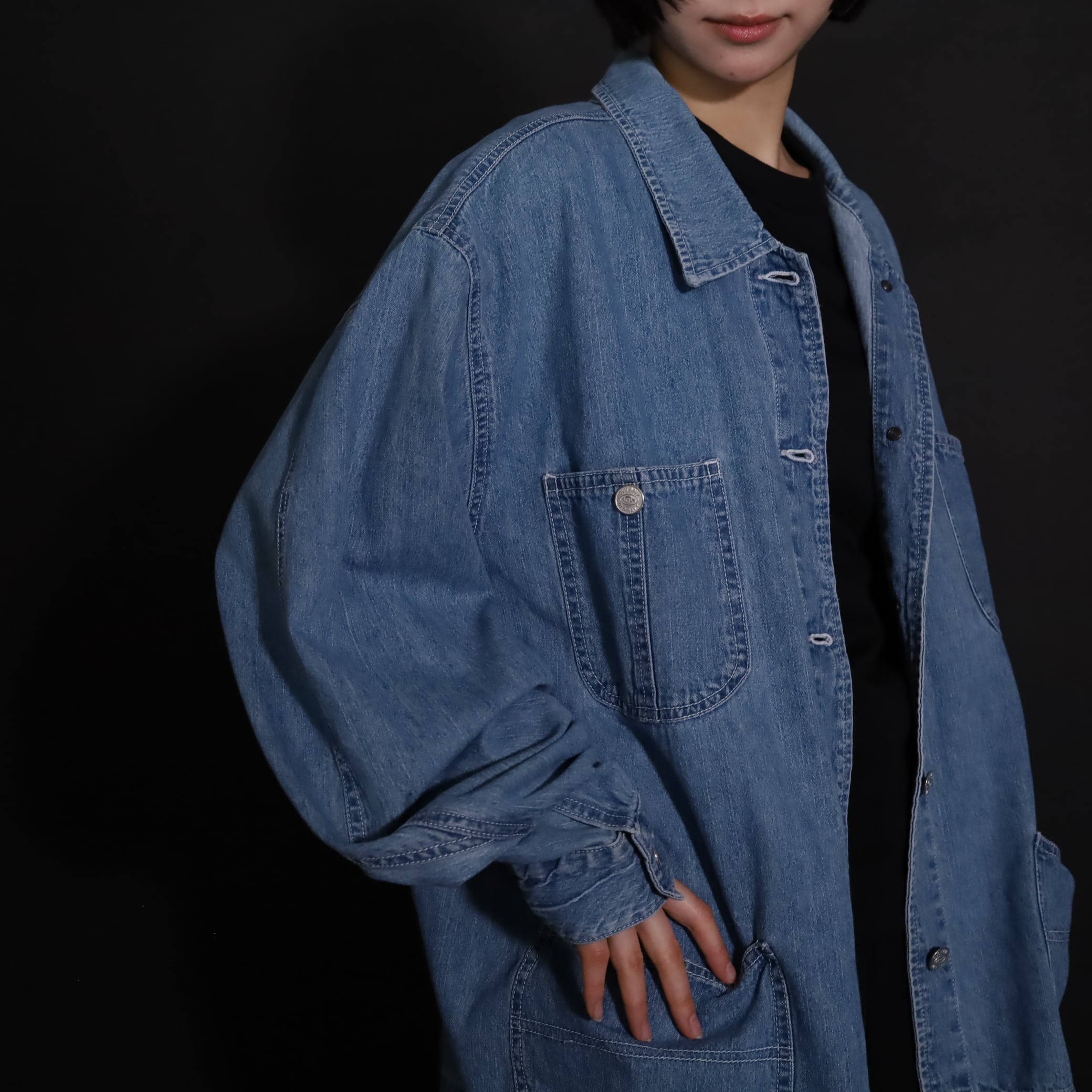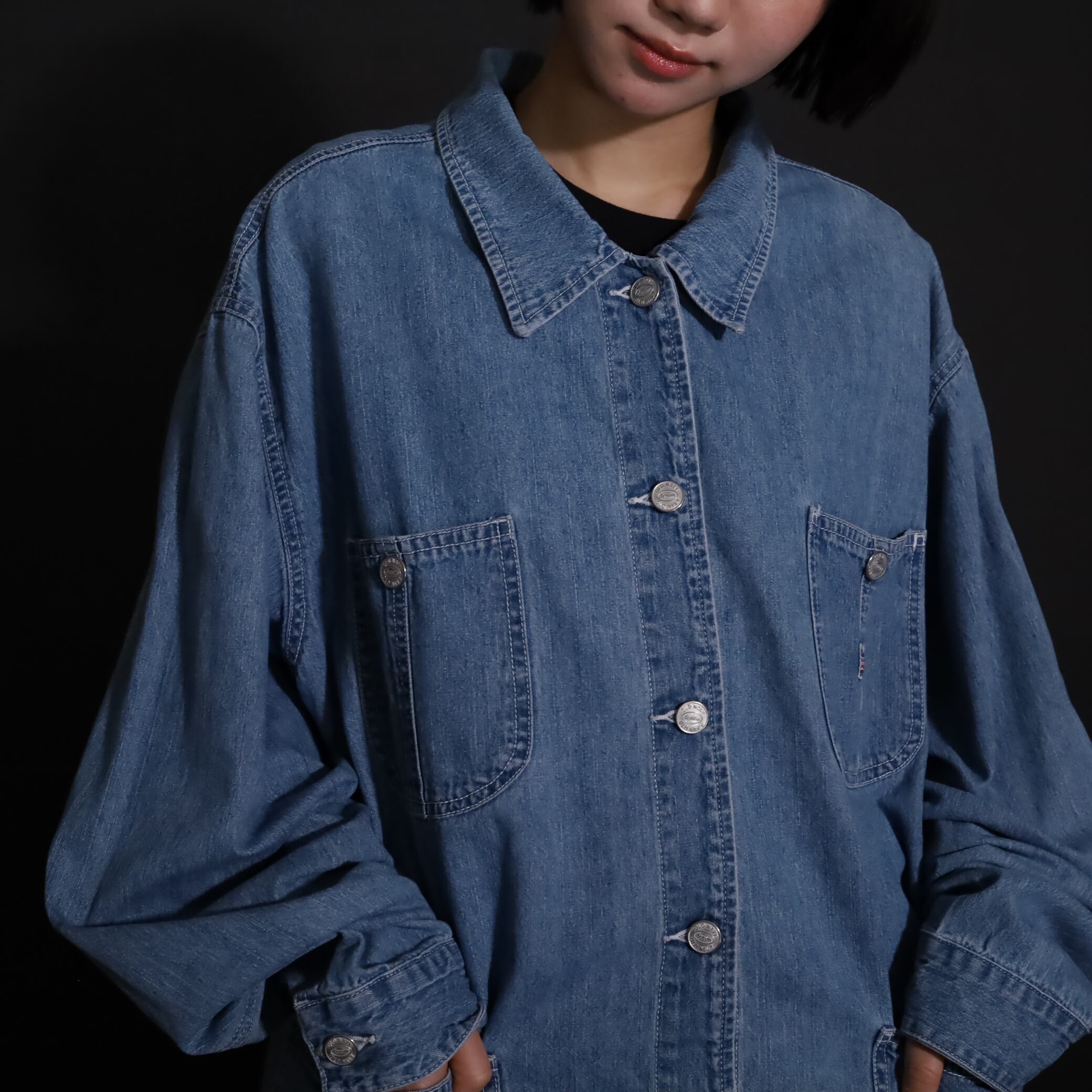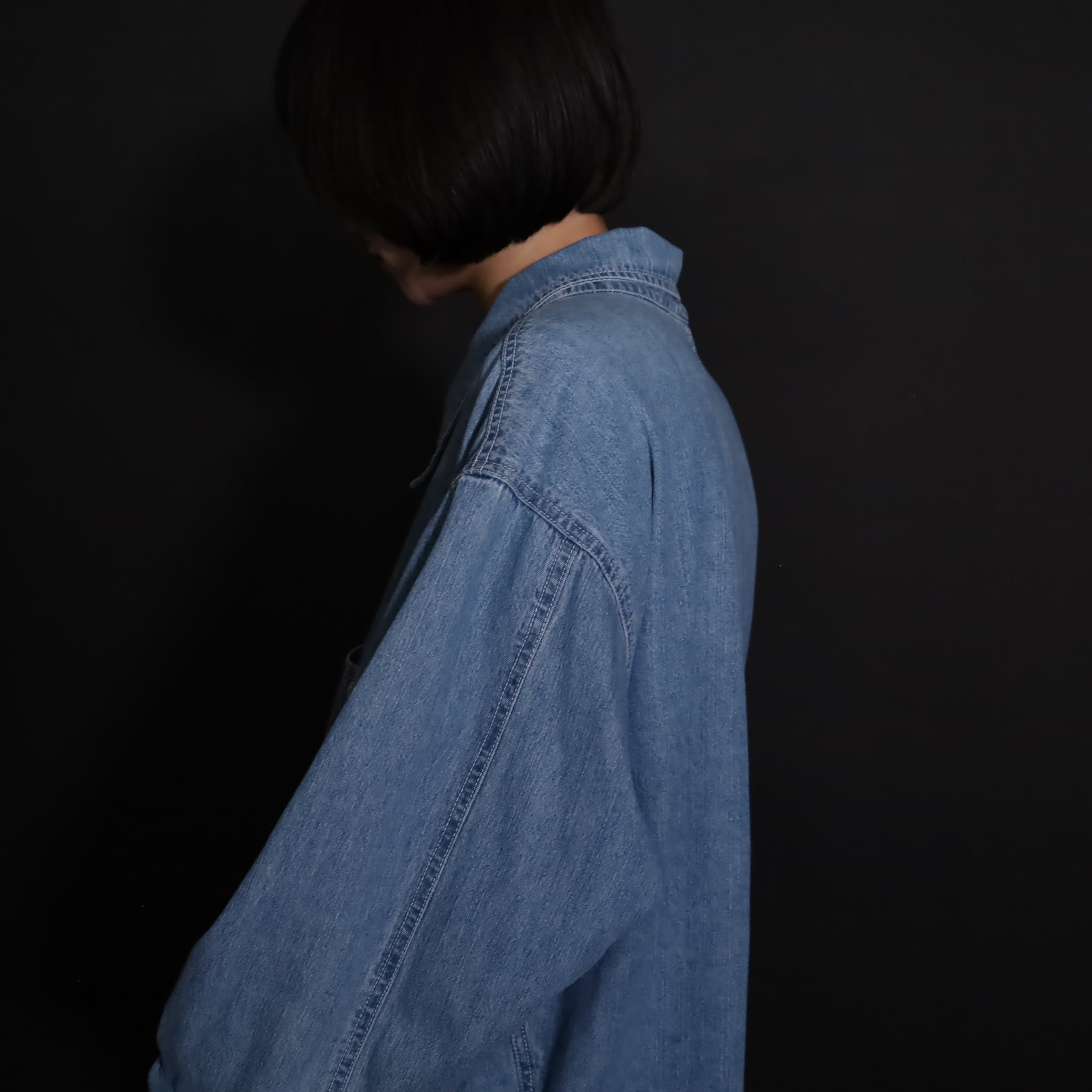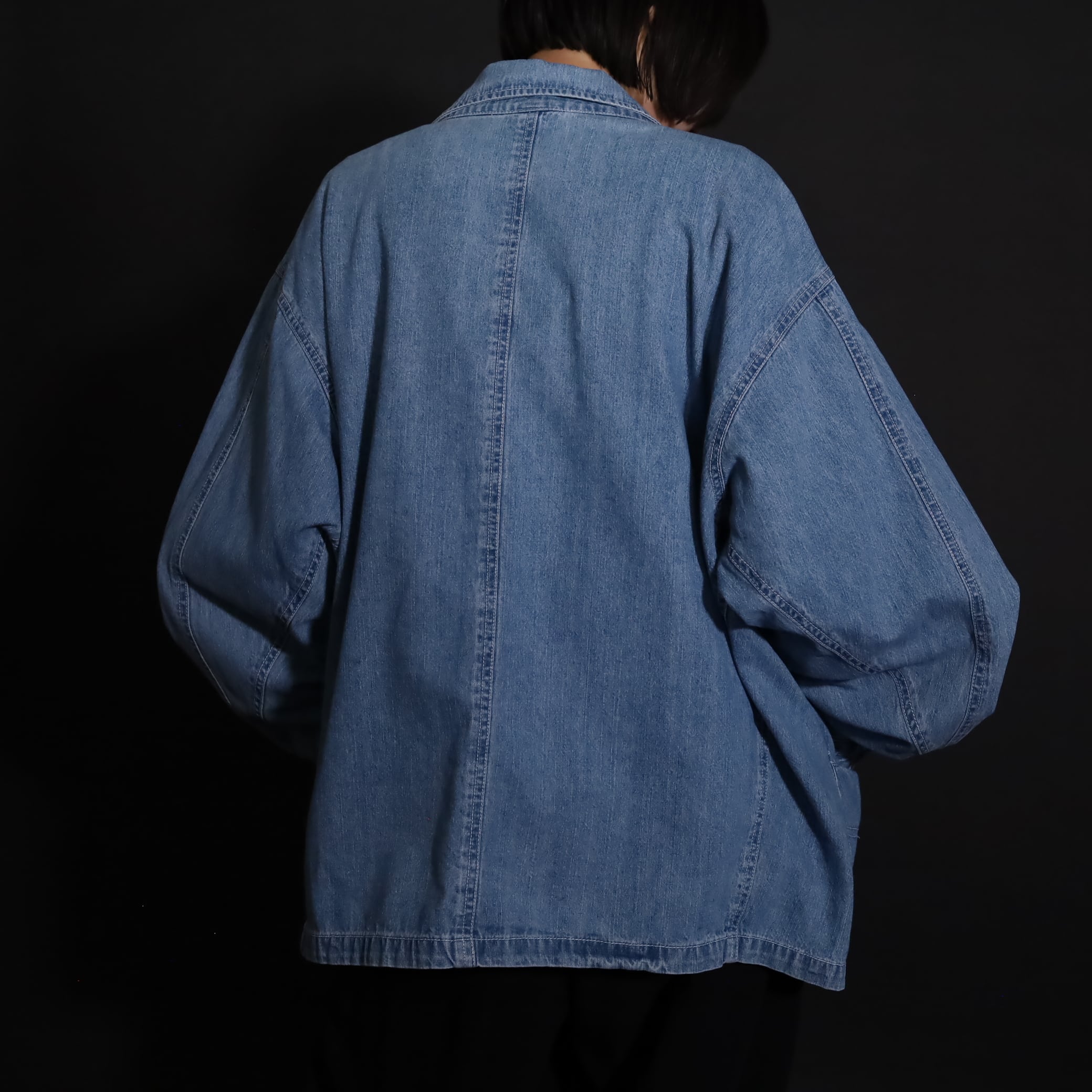 非常にライトオンスなデニム生地で,軽い着用感とくったりとした表情が魅力的.