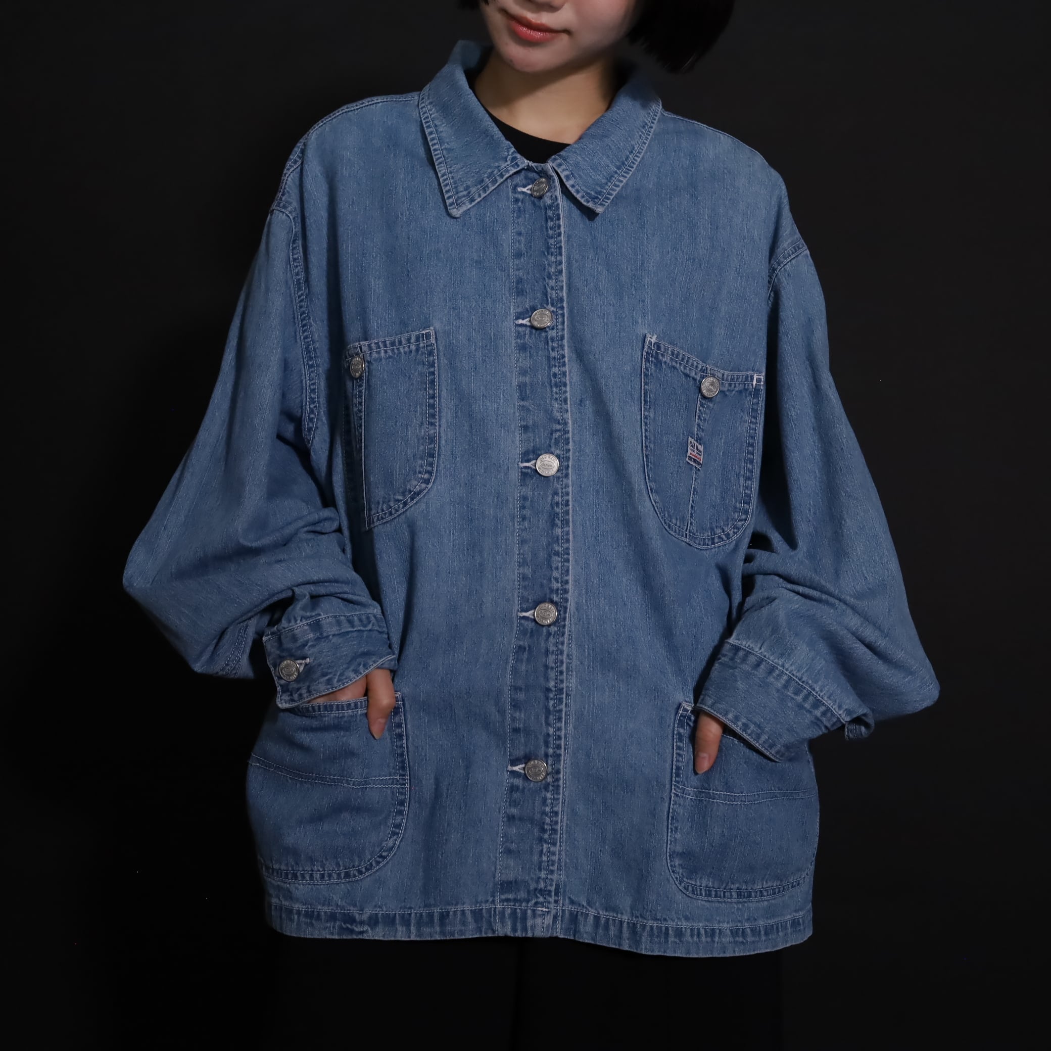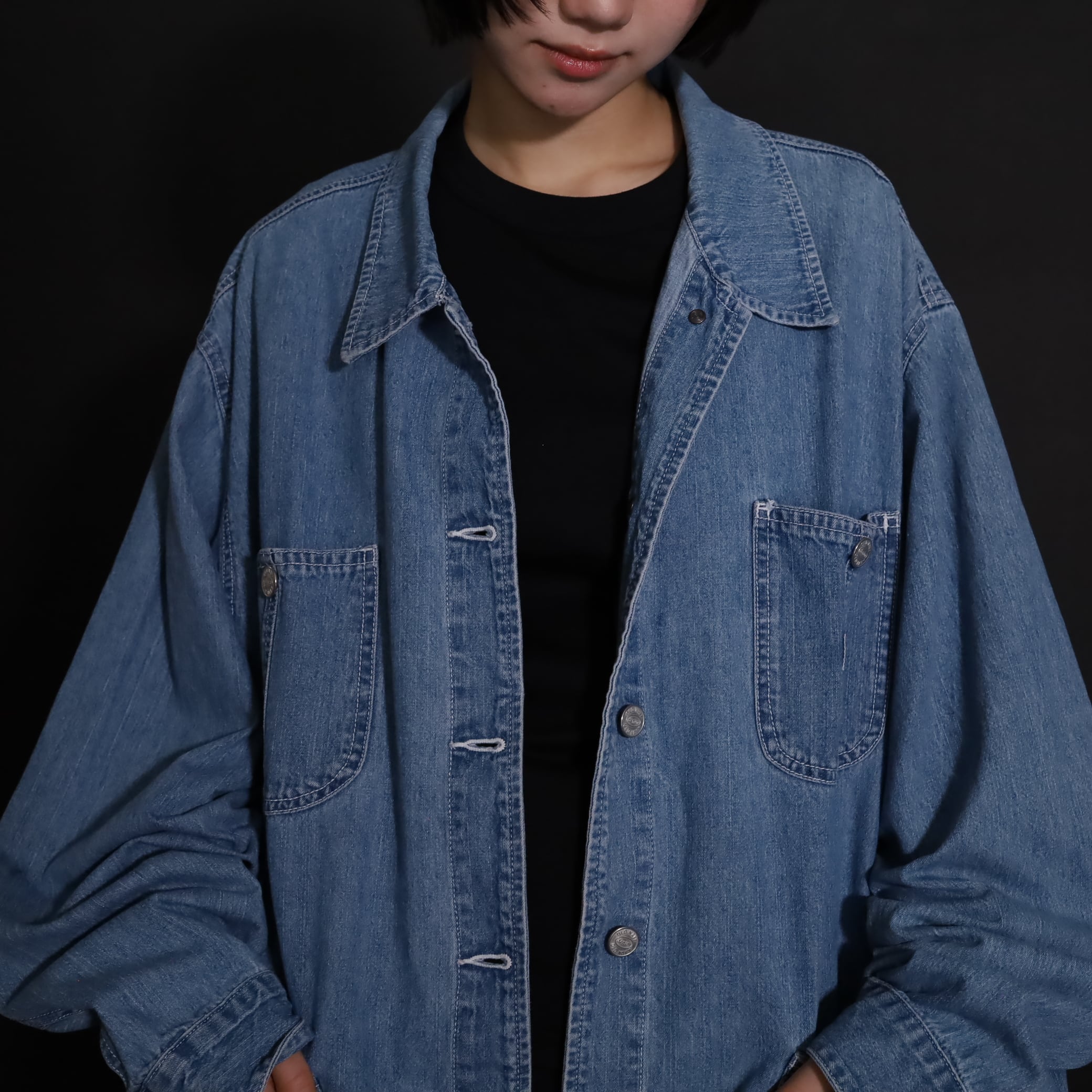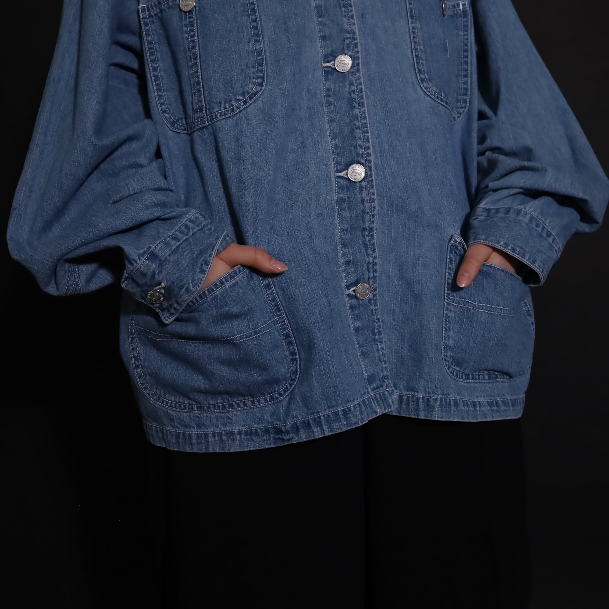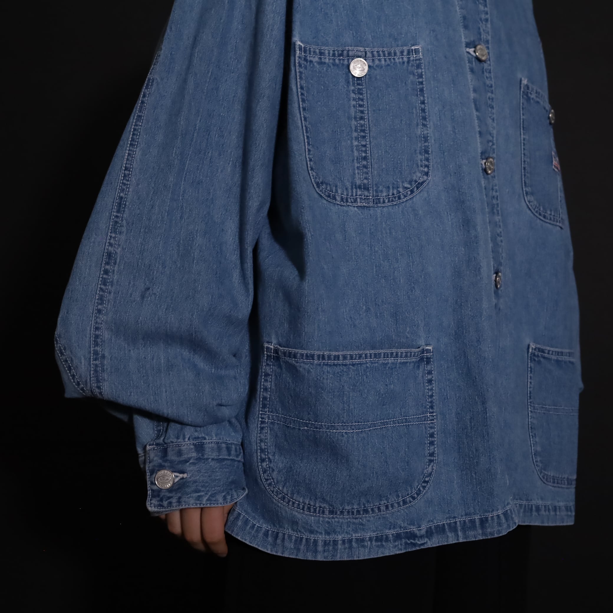 非常にライトオンスなデニム生地で,軽い着用感とくったりとした表情が魅力的.