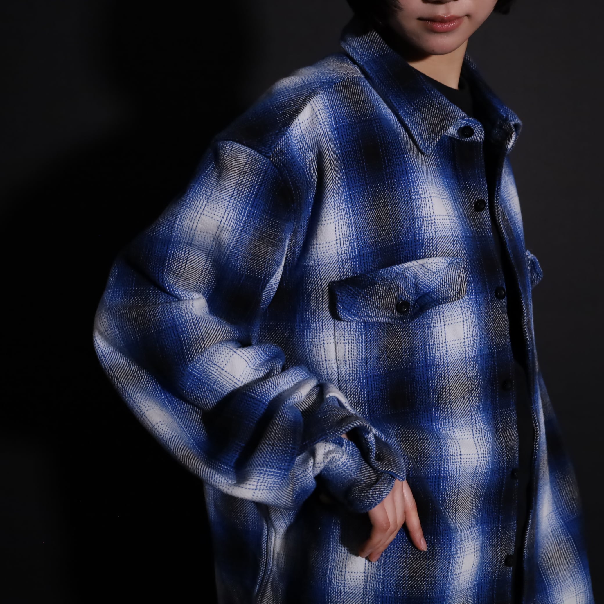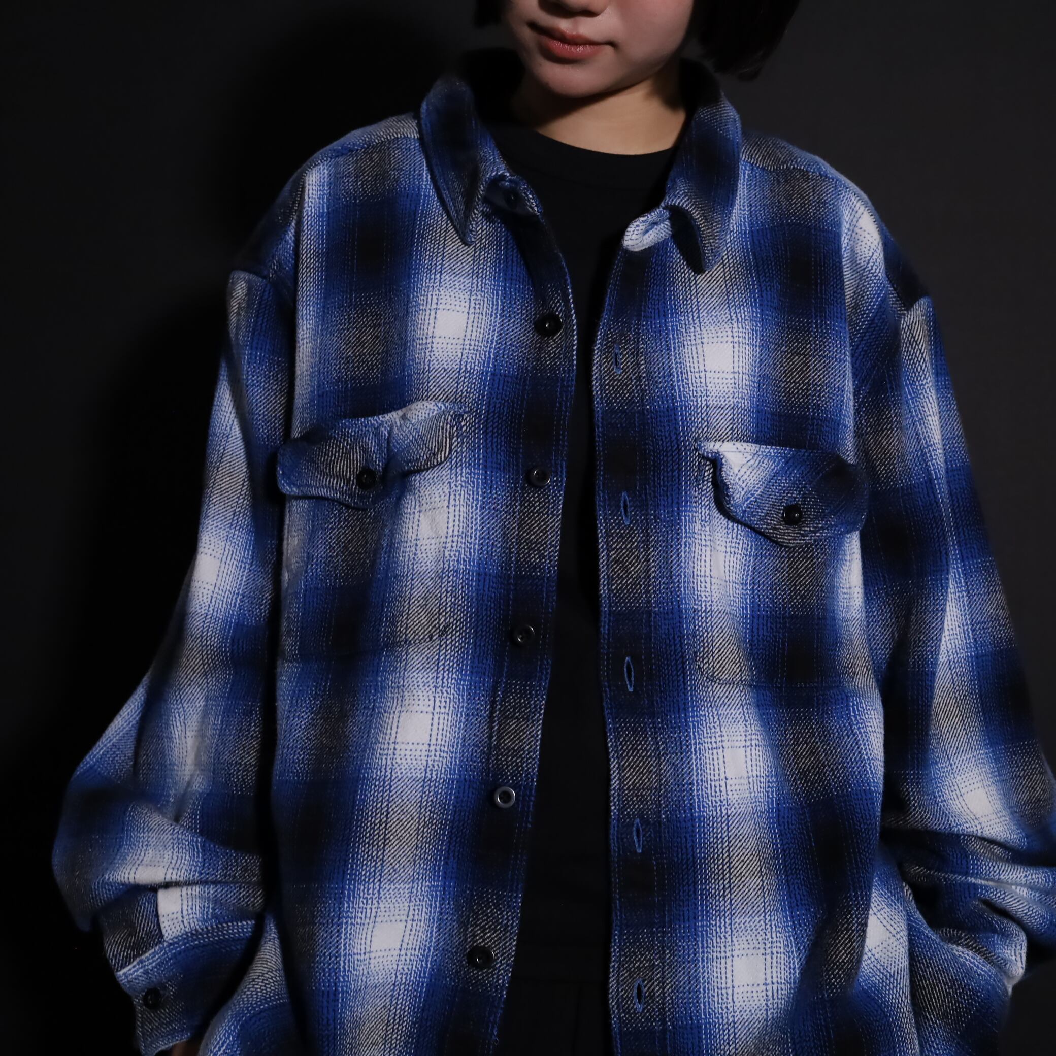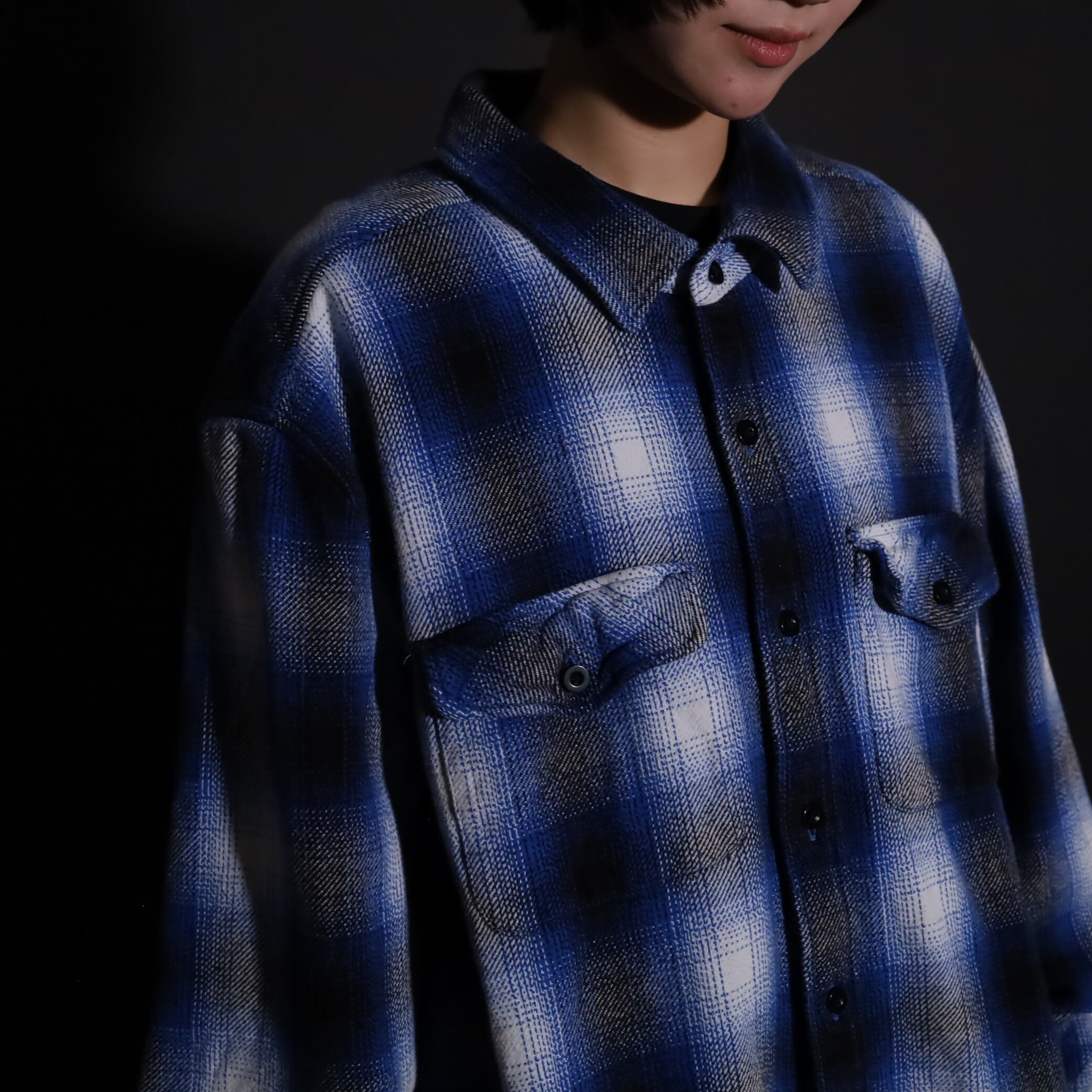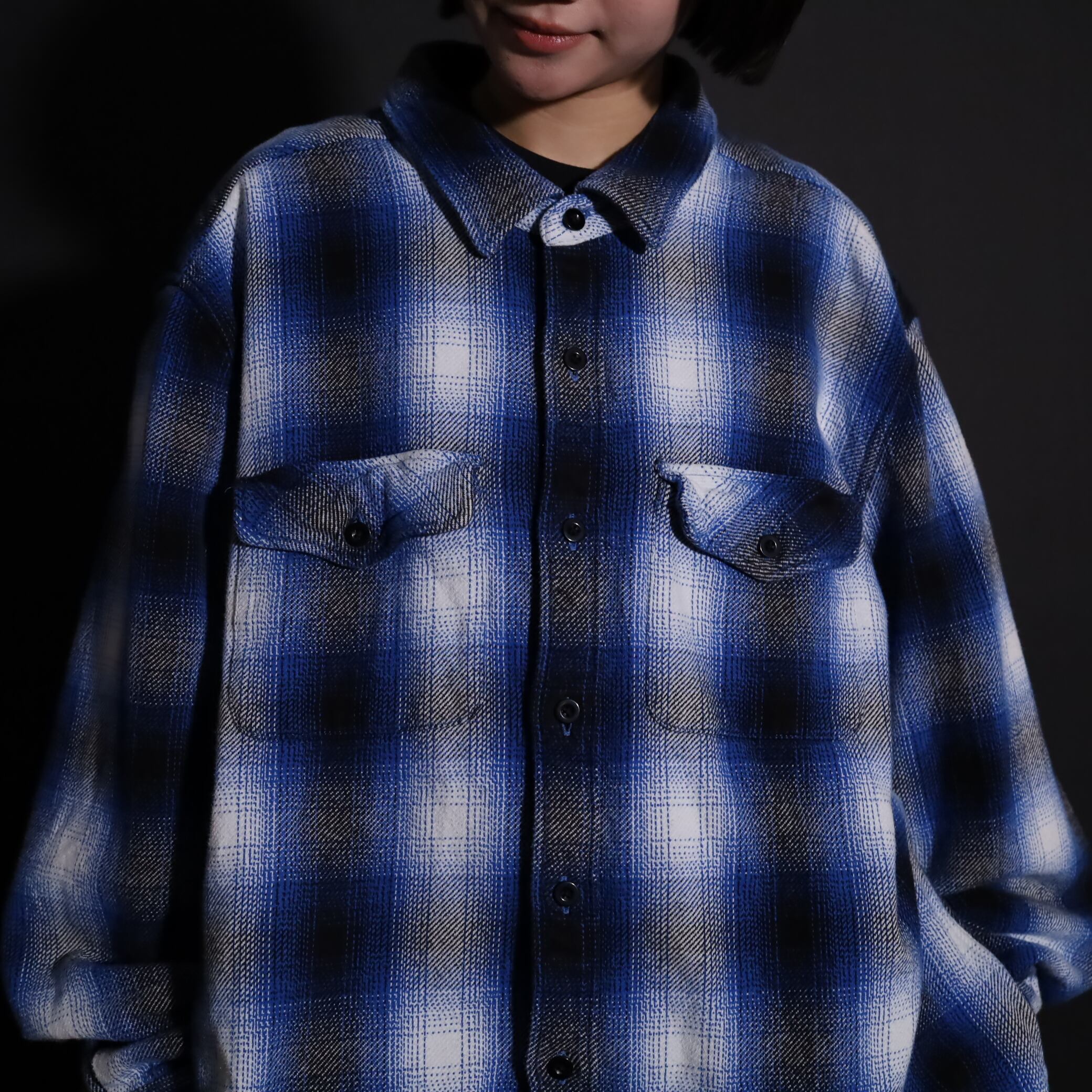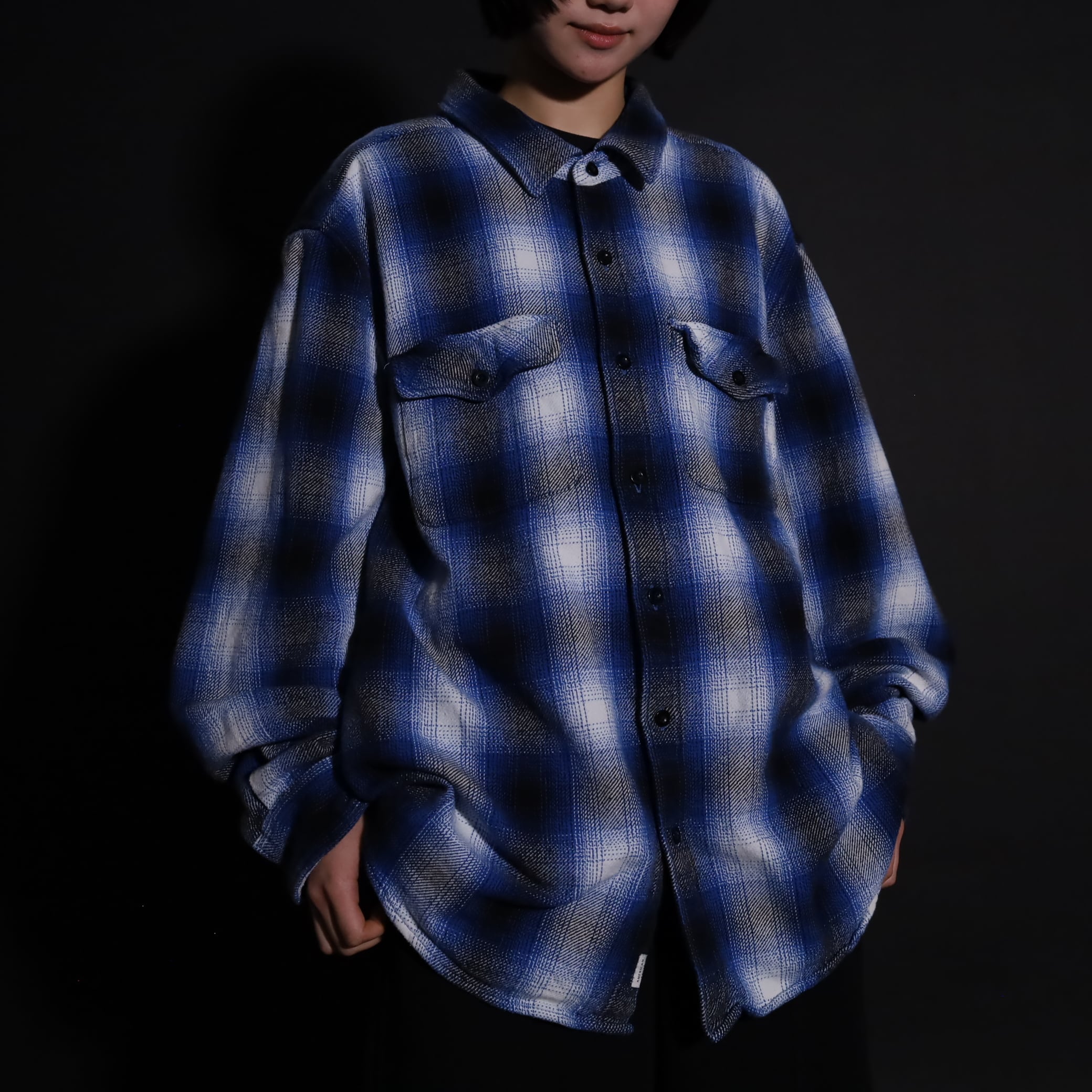オンブレーチェックフランネルシャツ.