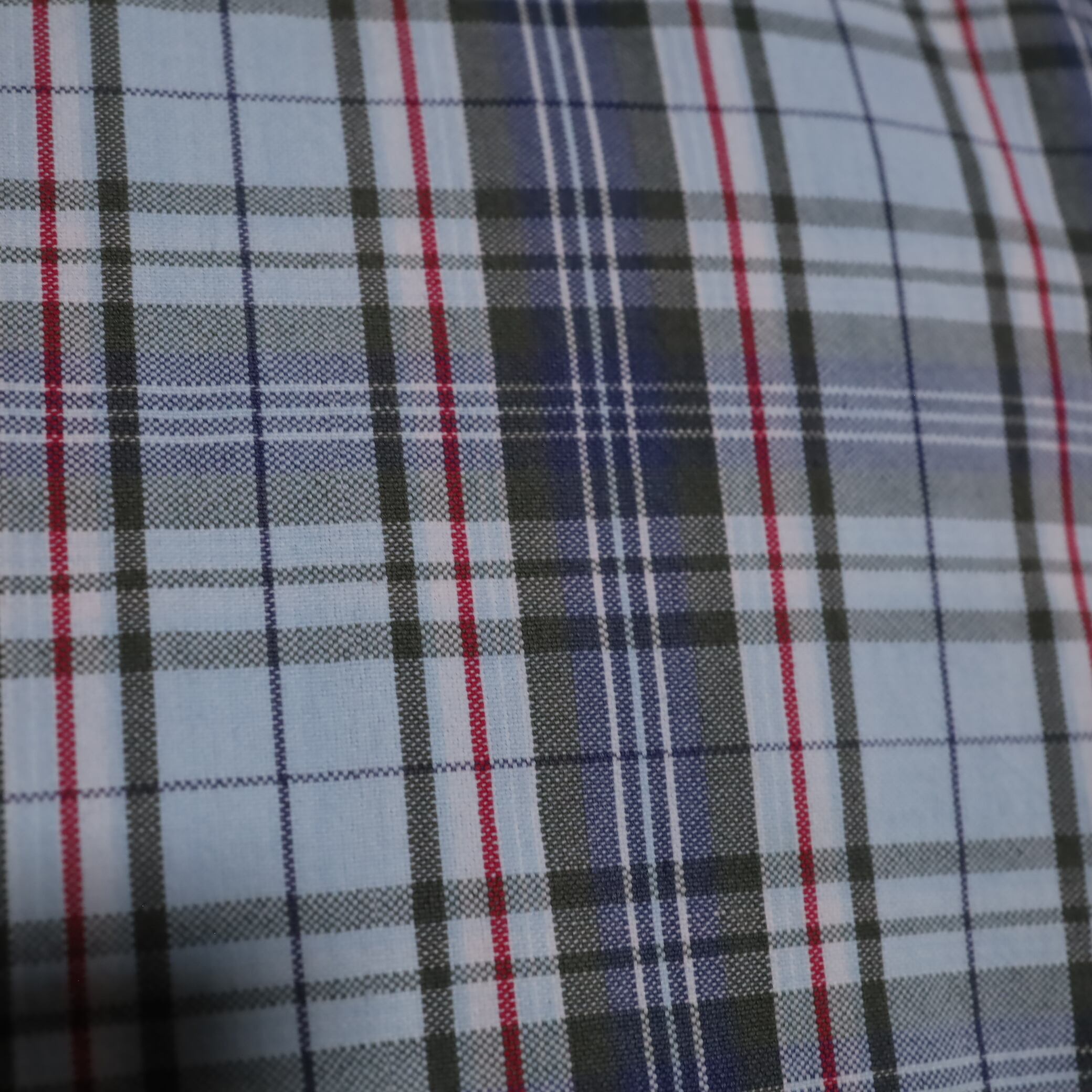 トーンの異なるブルーカラーをベースに,ホワイトカラーやレッドカラーを加えた,爽やかでほどよいメリハリのあるチェックデザイン.