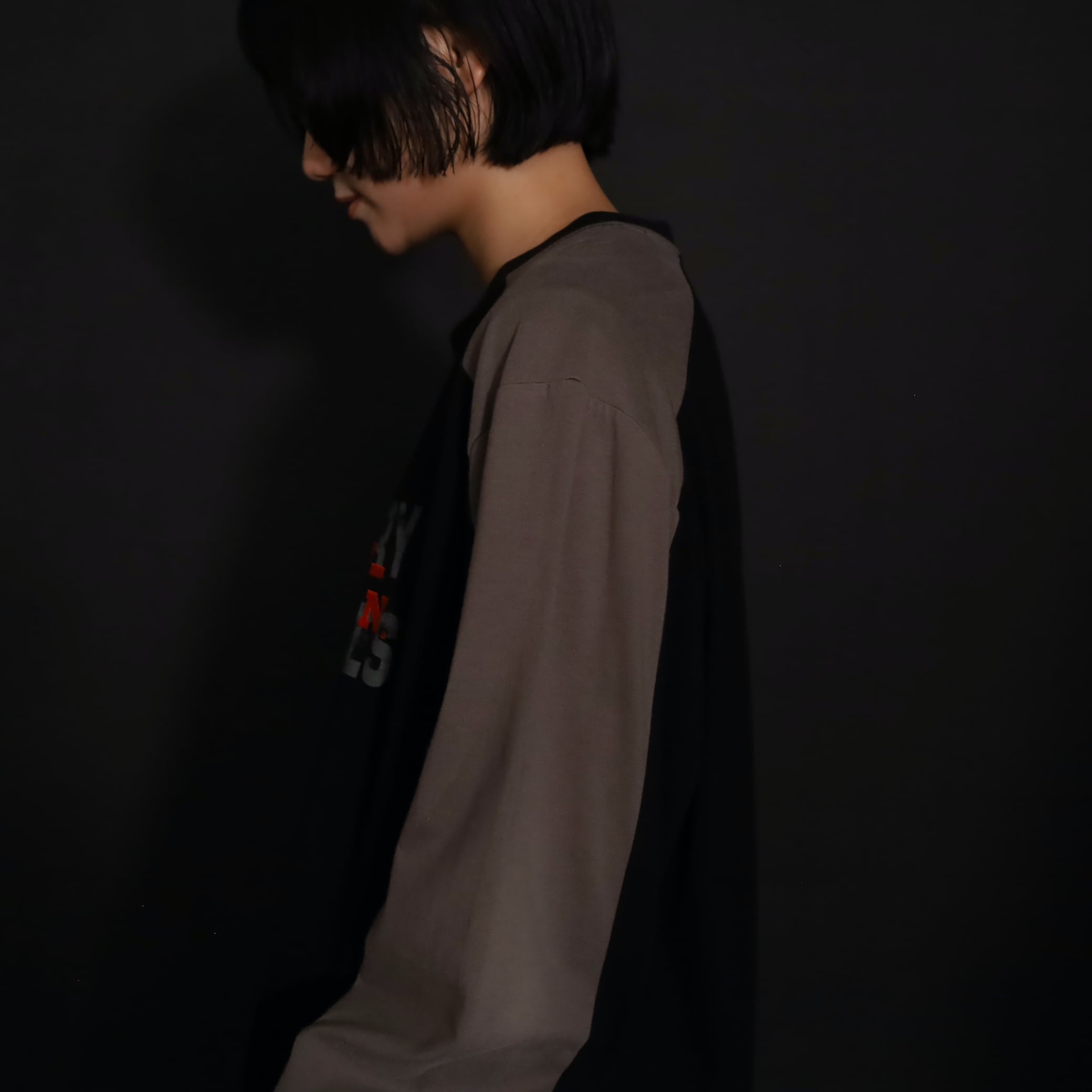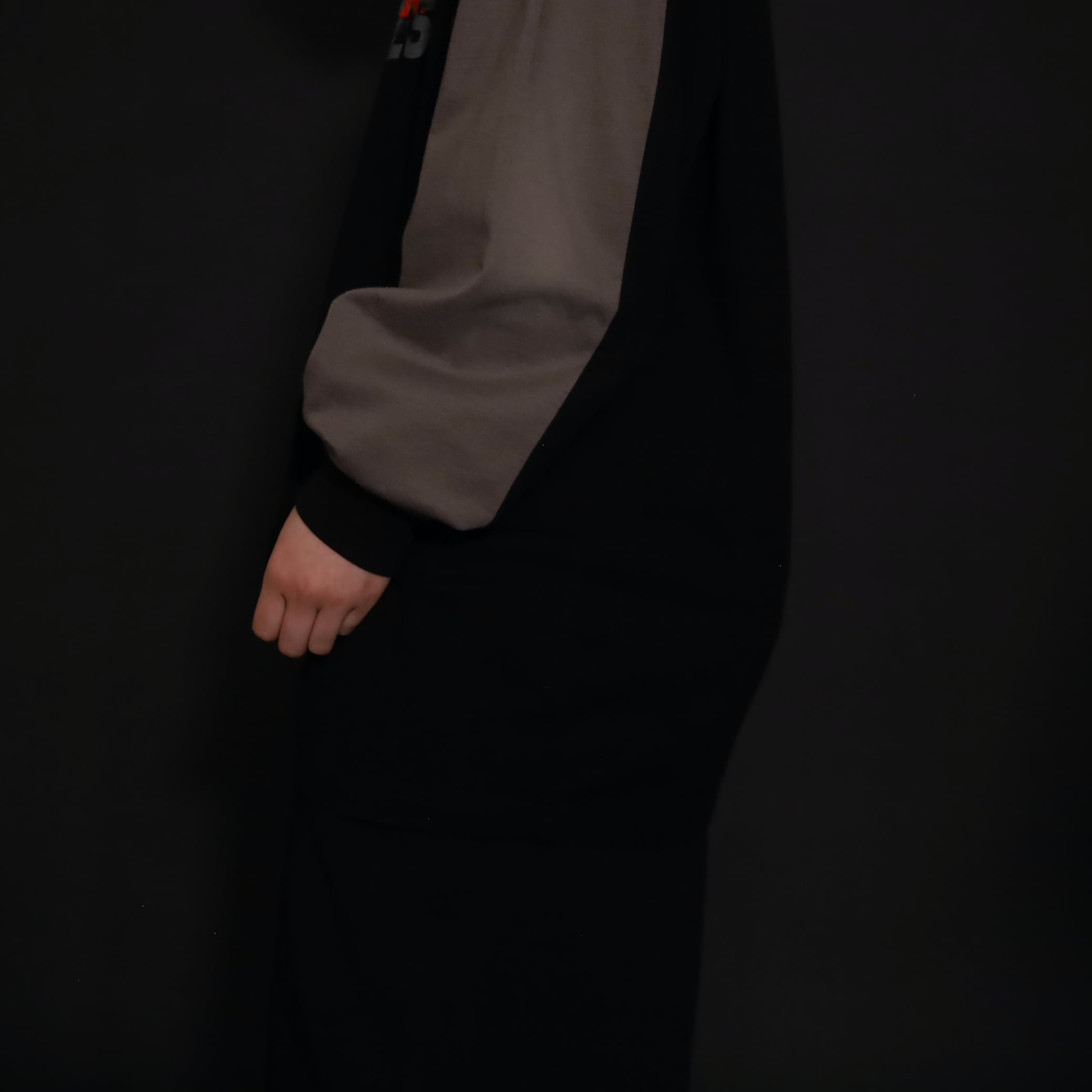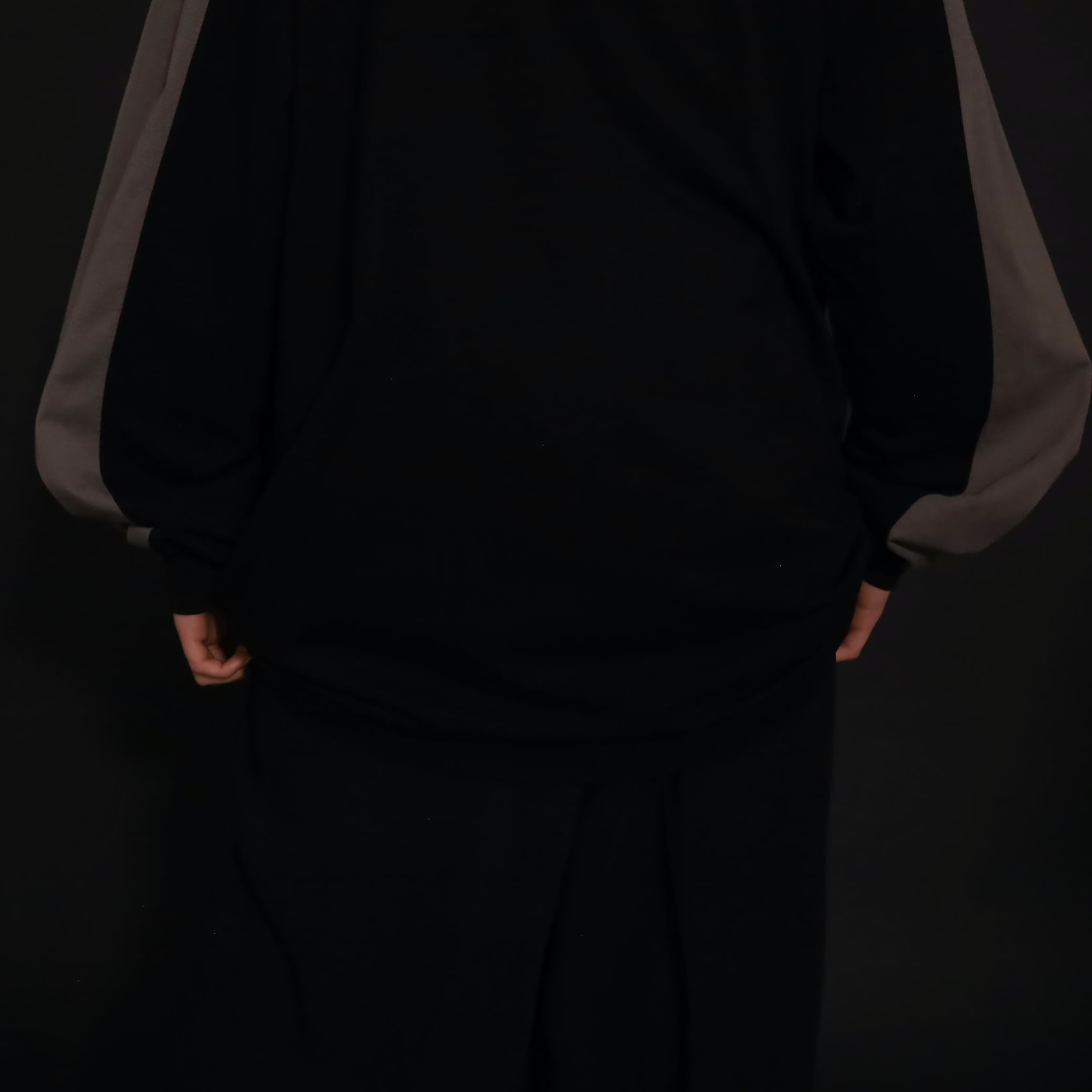 ブラックボディをベースに,袖はグレーに切り替わる,モノクロのバイカラーデザイン.