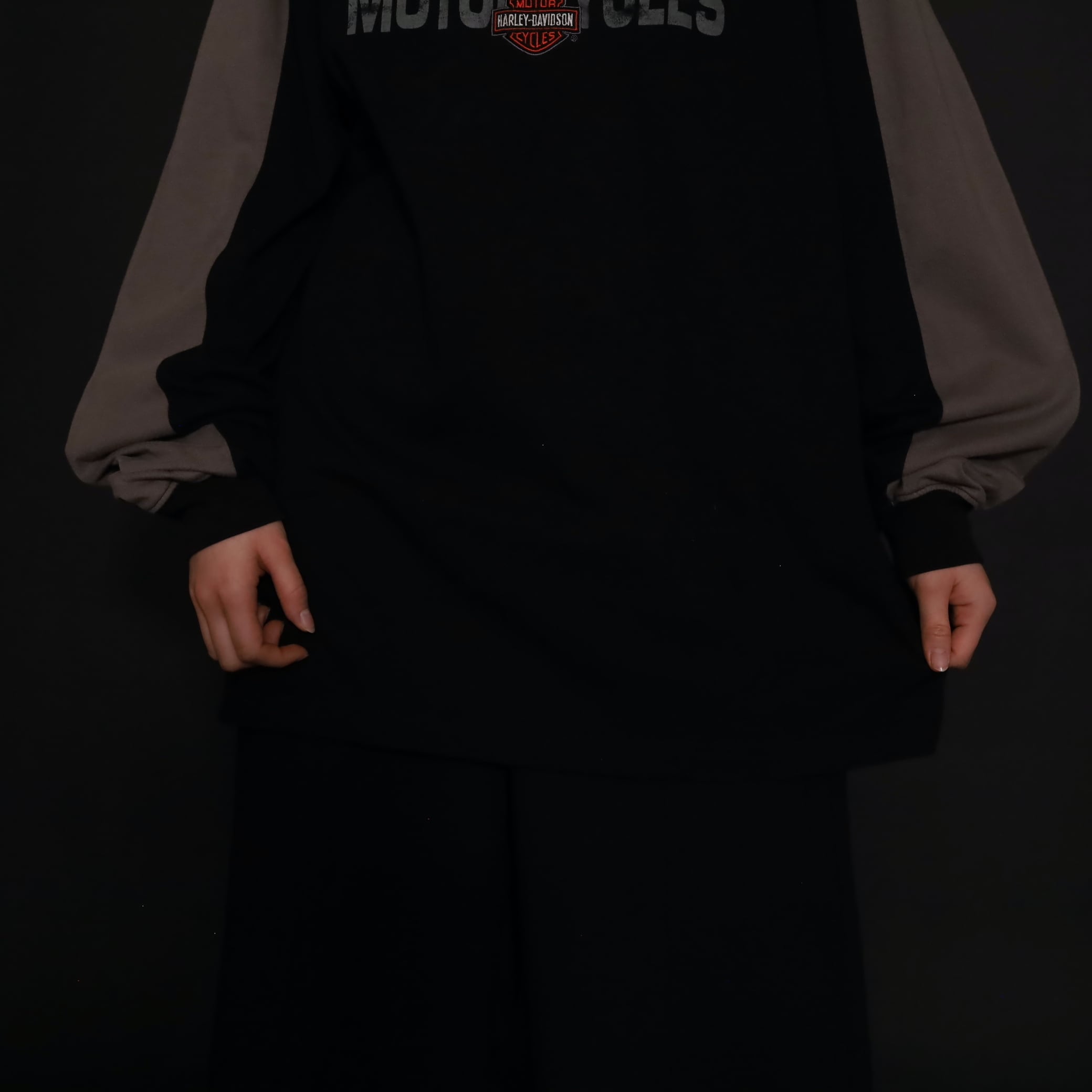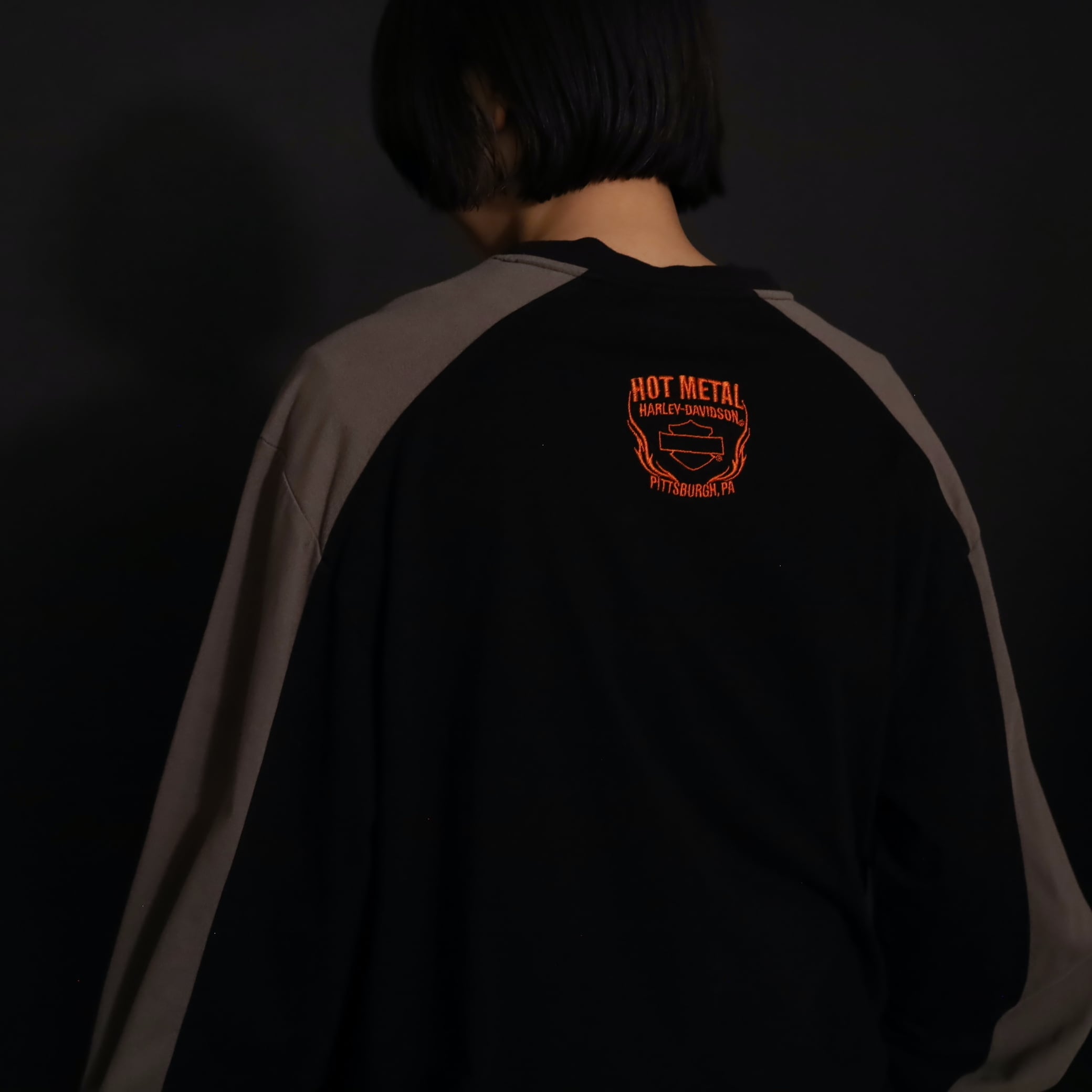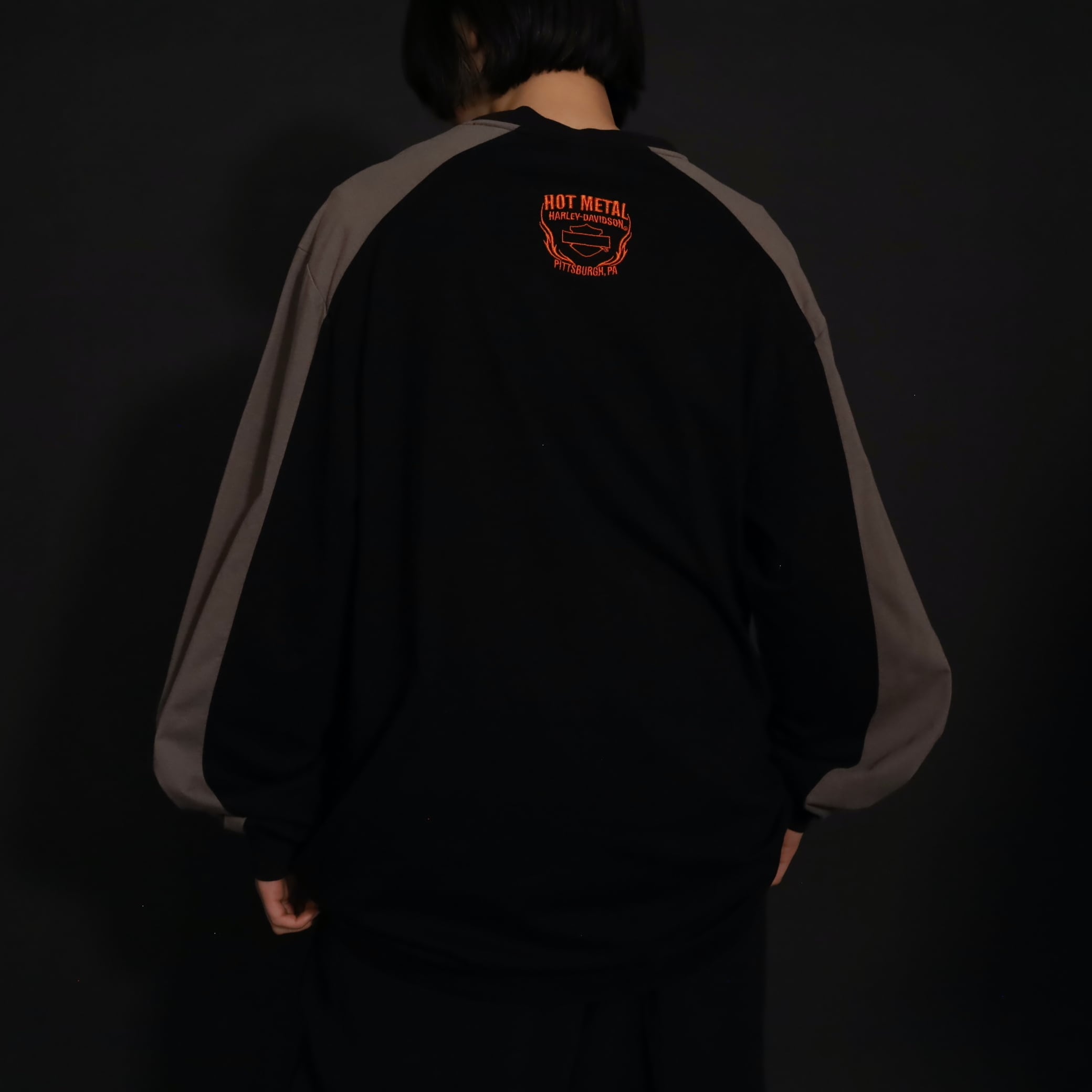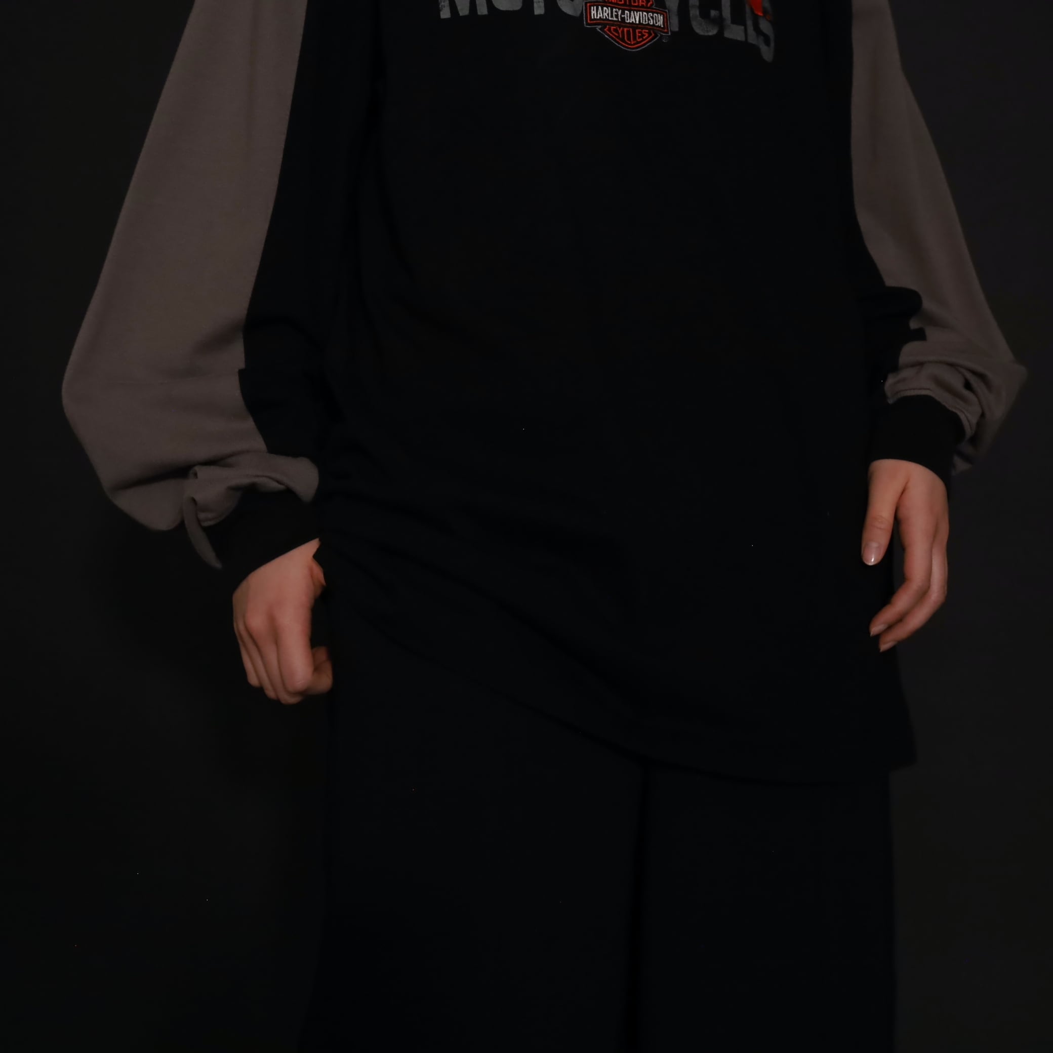 ブラックボディをベースに,袖はグレーに切り替わる,モノクロのバイカラーデザイン.