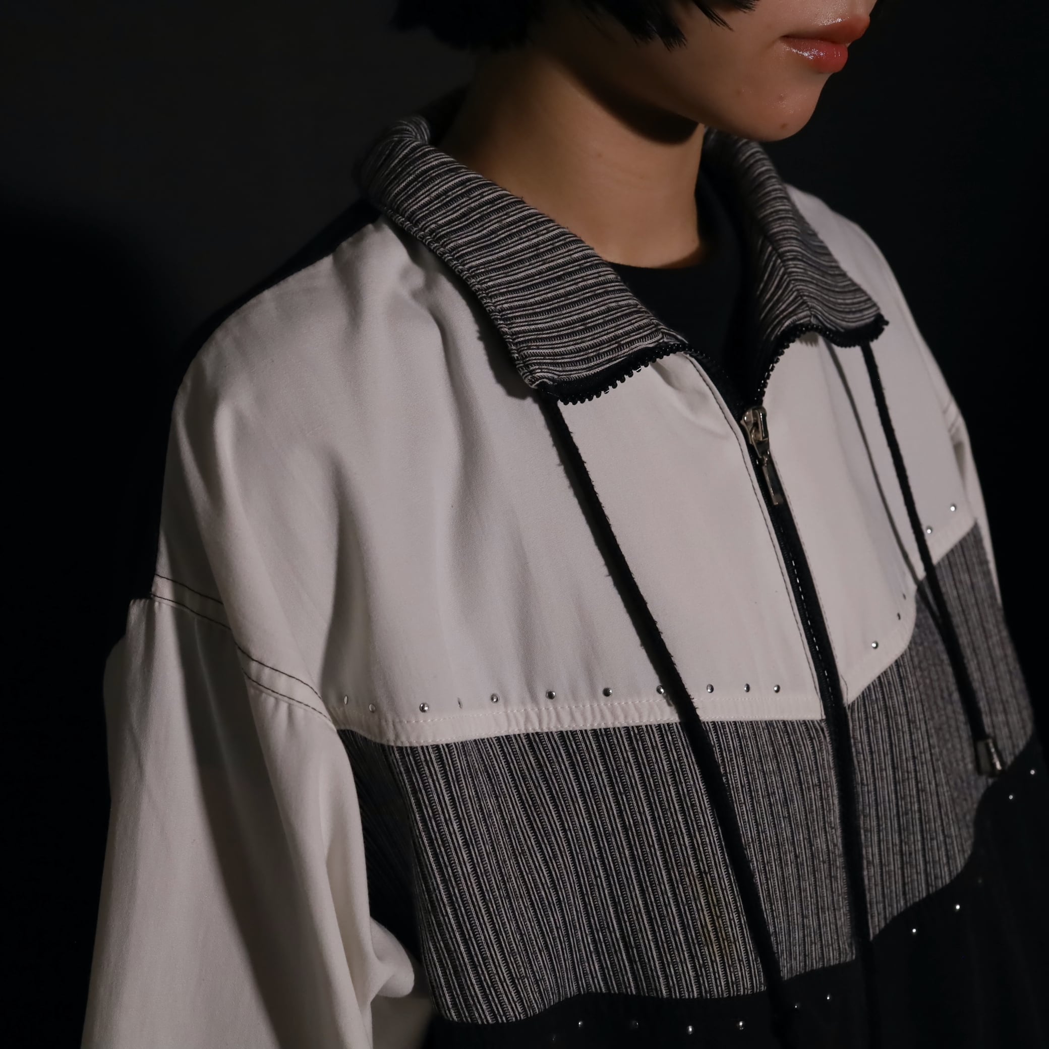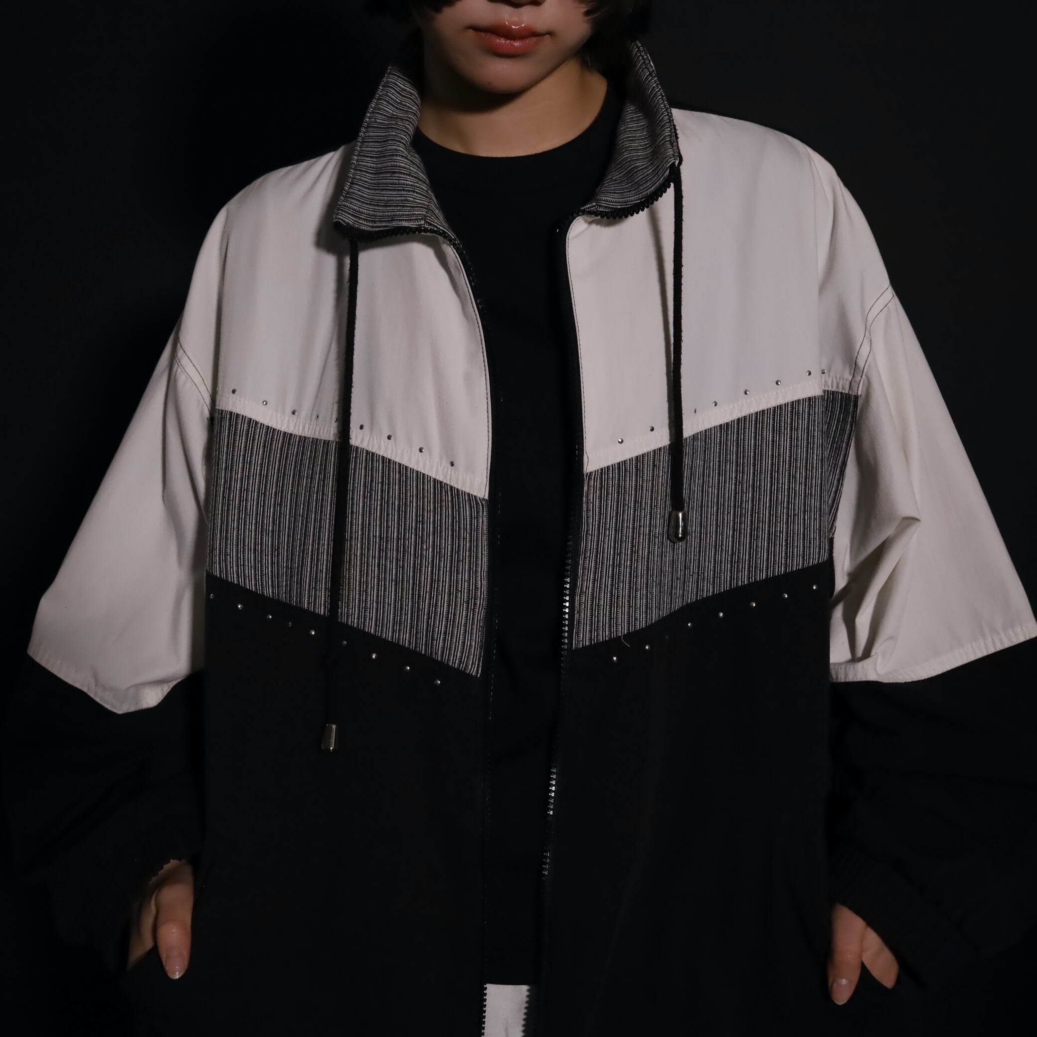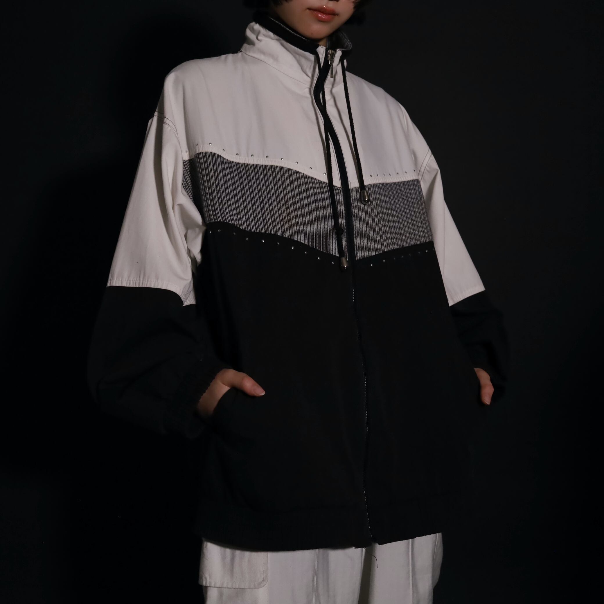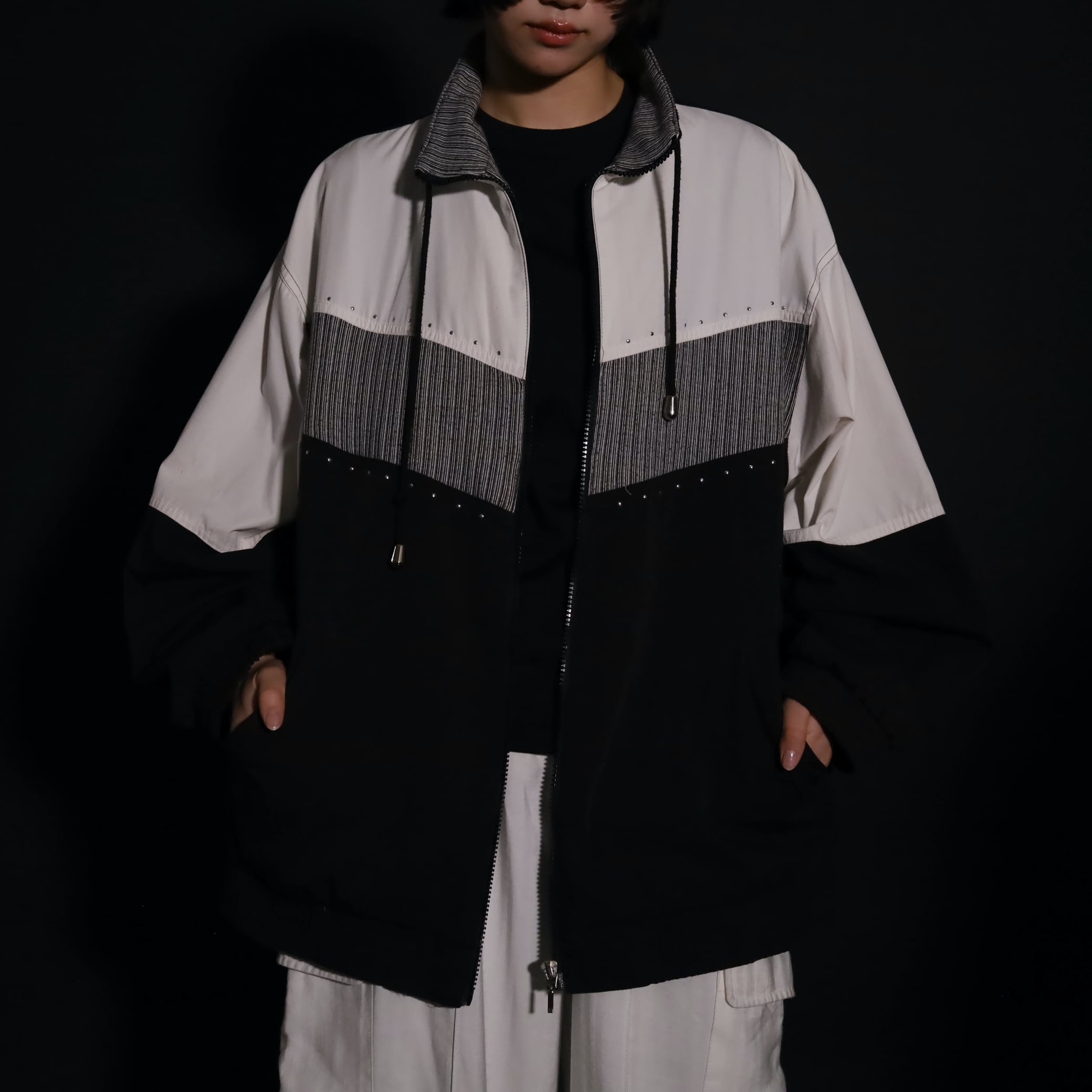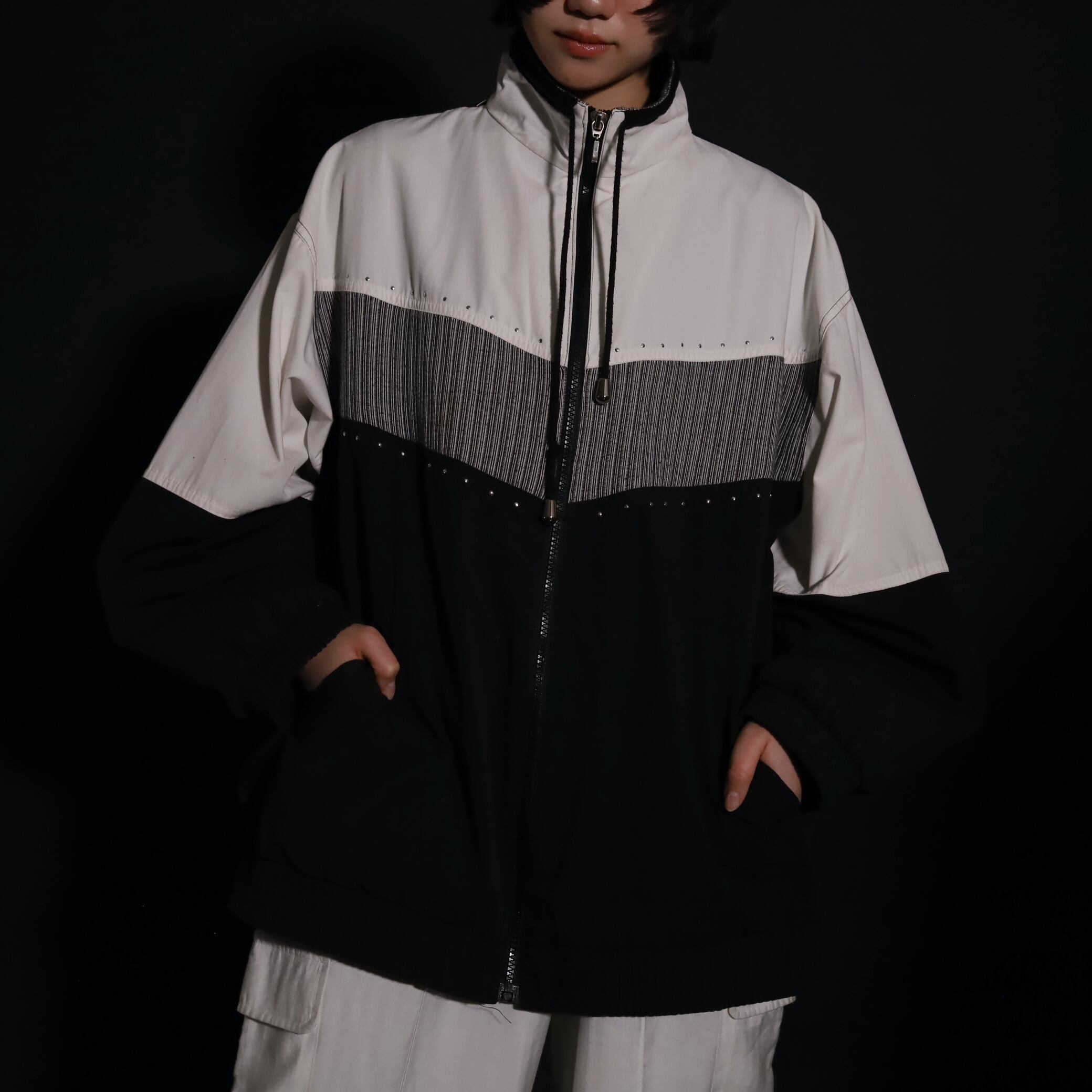 トライカラー切替ジップアップブルゾン.