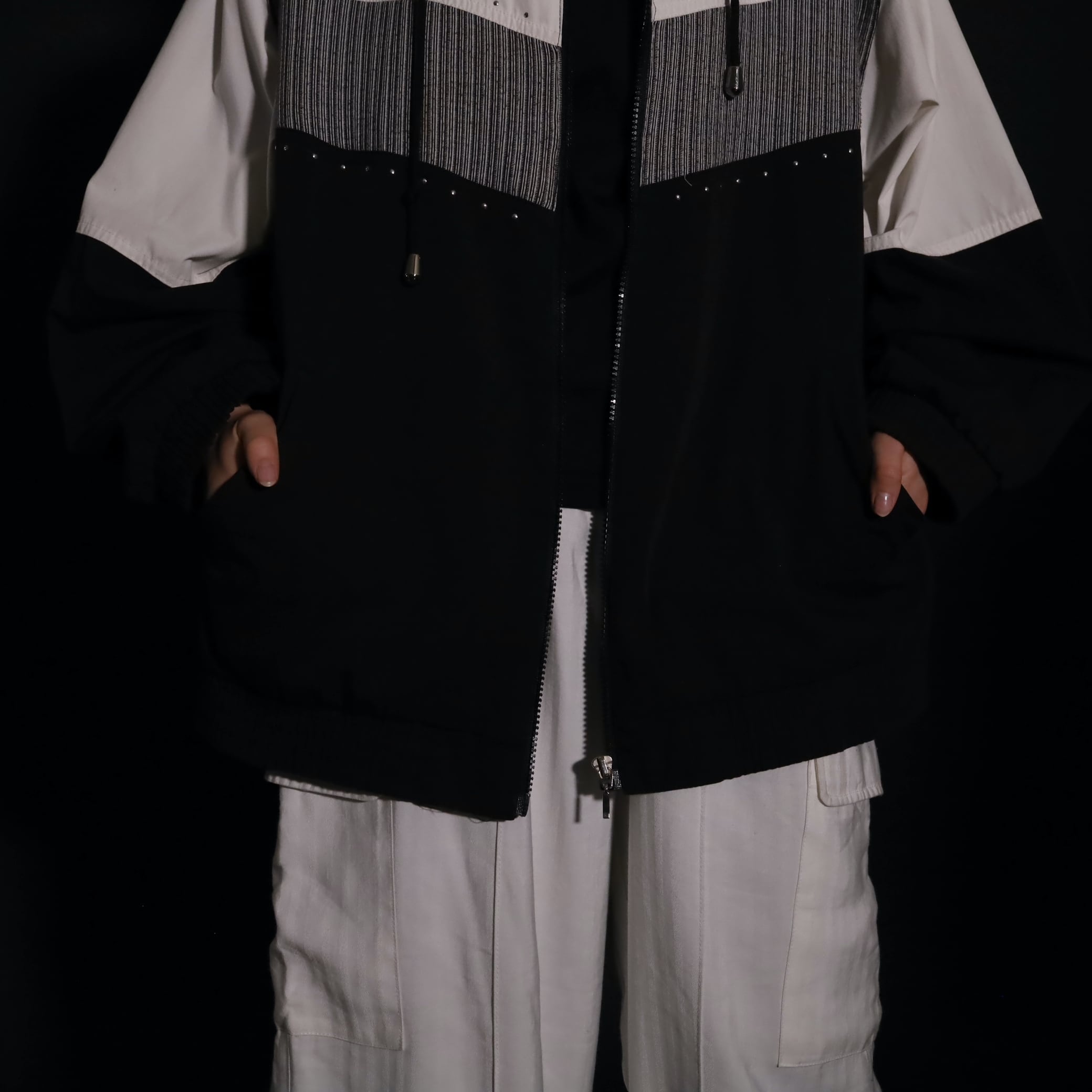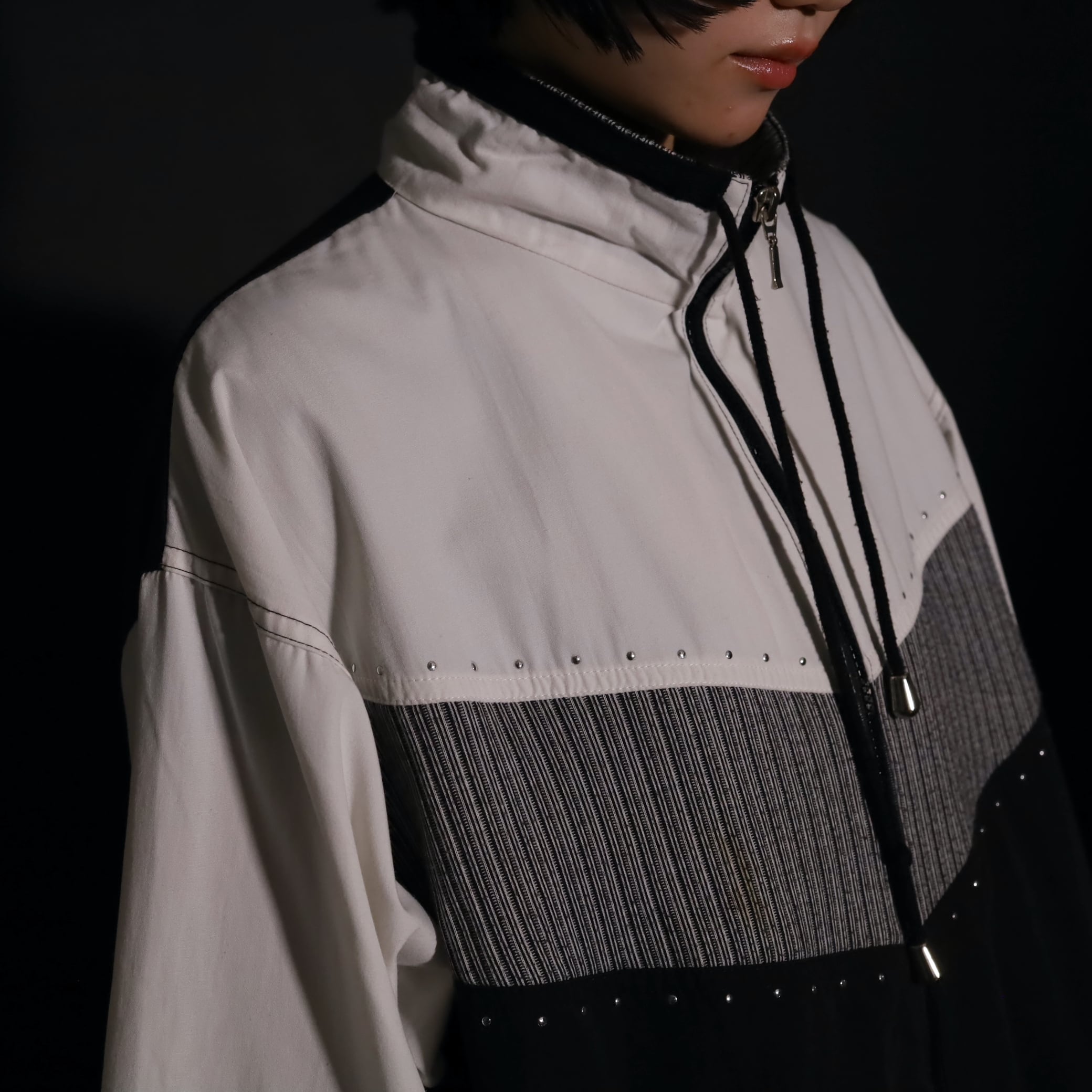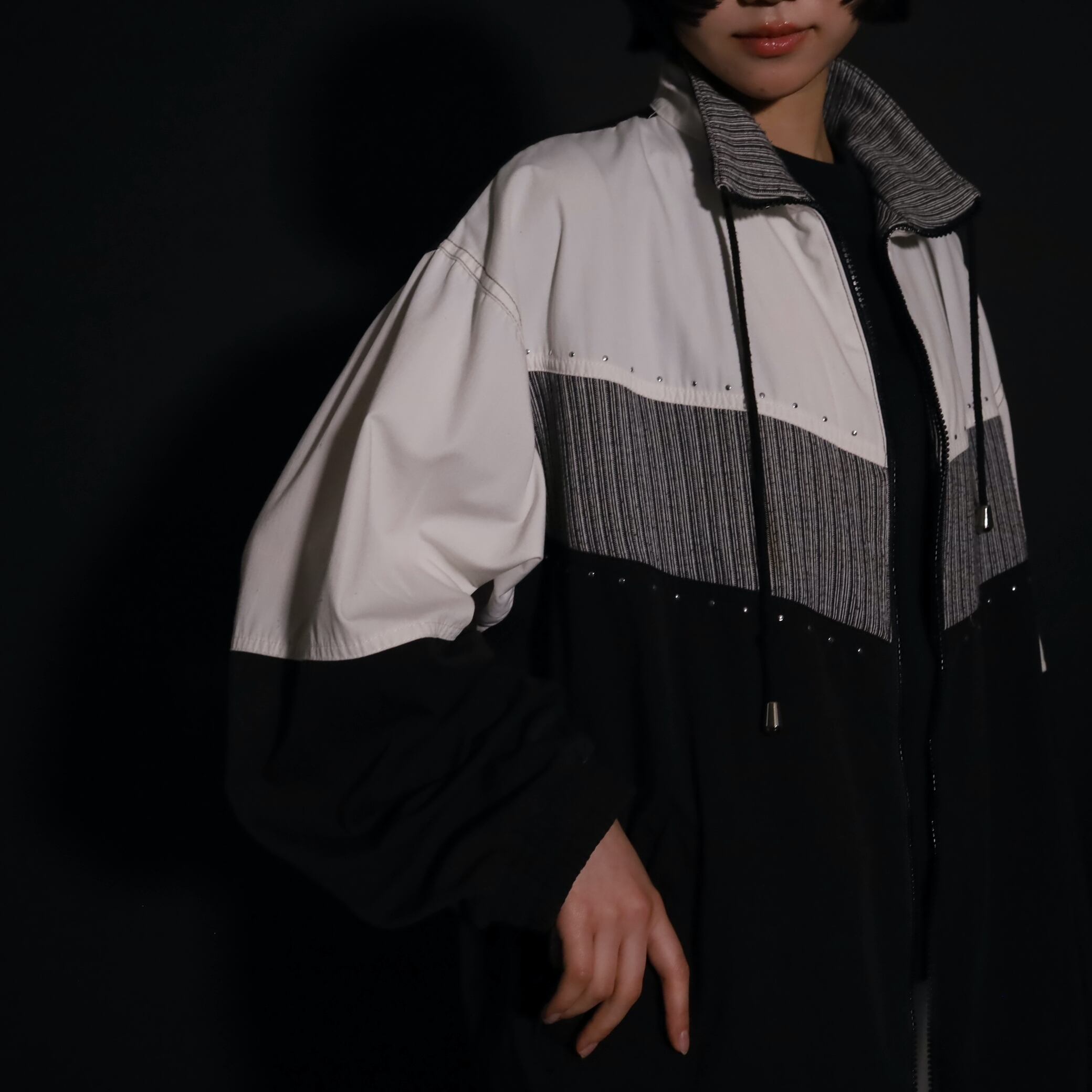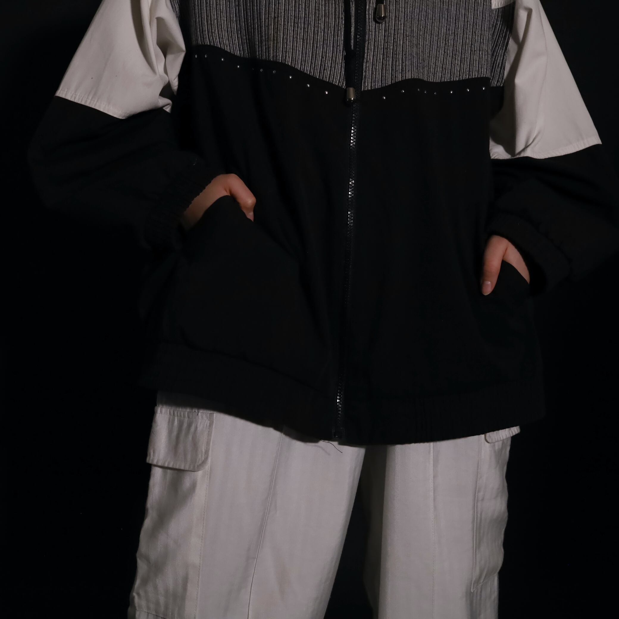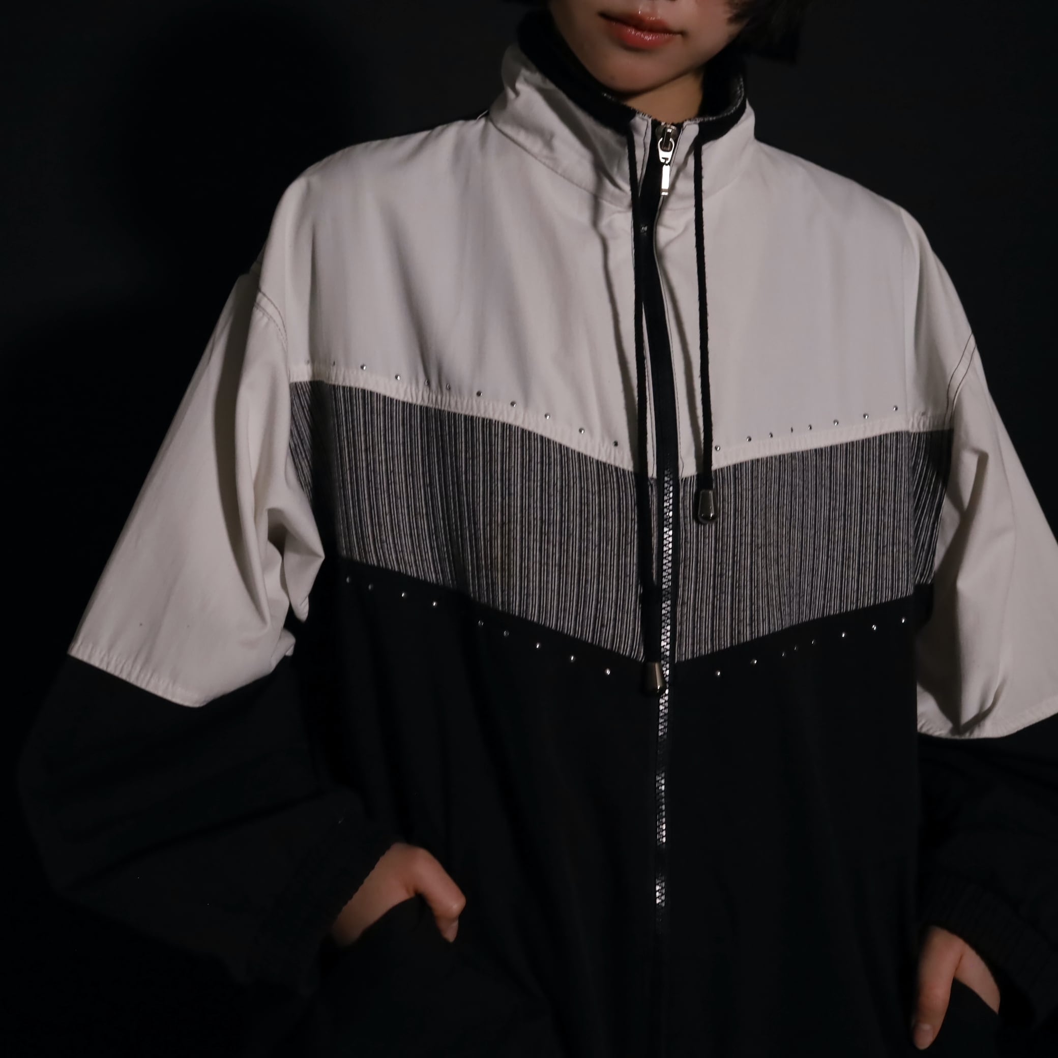 トライカラー切替ジップアップブルゾン.