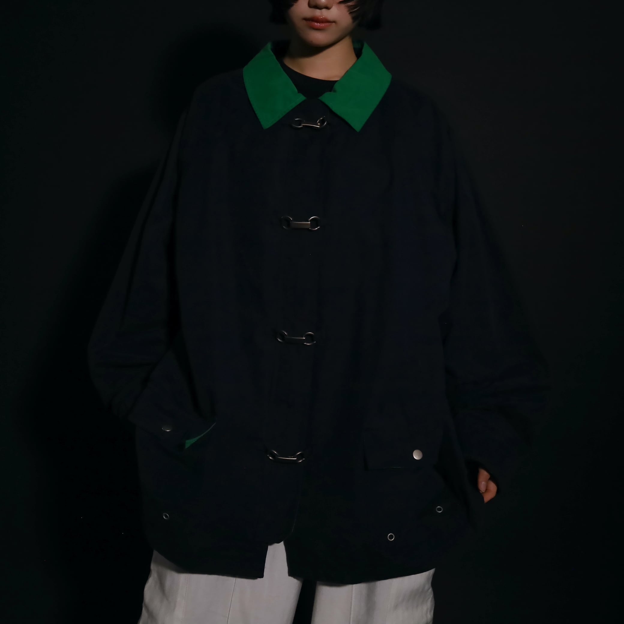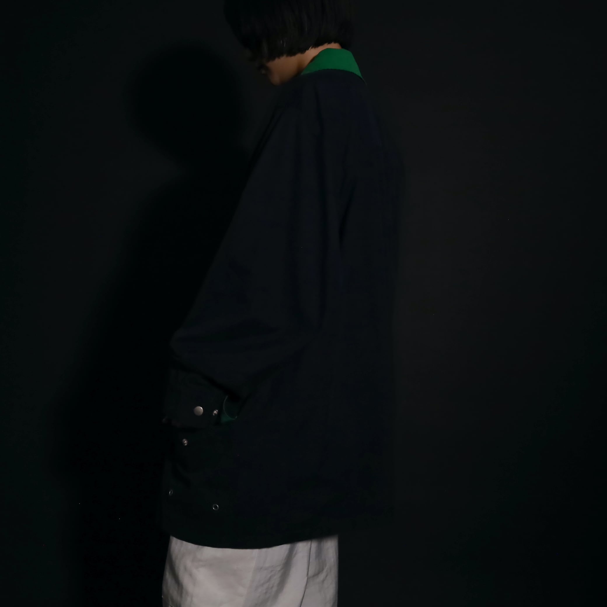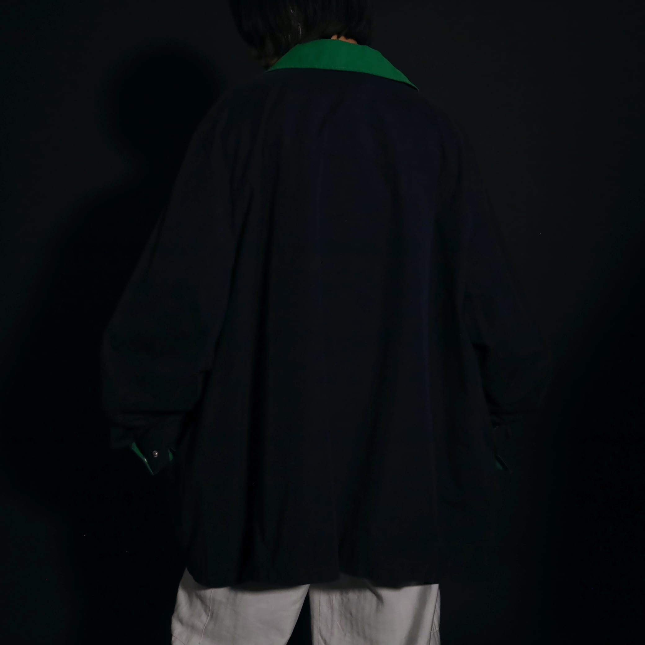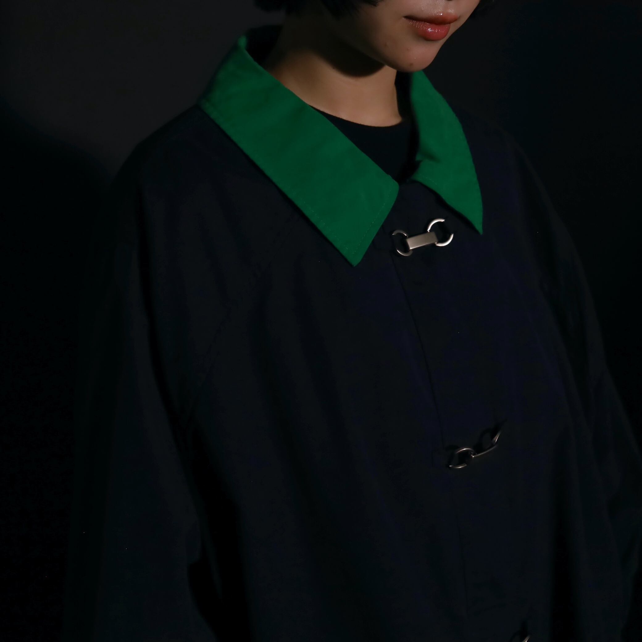 ネイビーカラーのボディをベースに,襟はグリーンカラーに切替わるバイカラーデザイン.