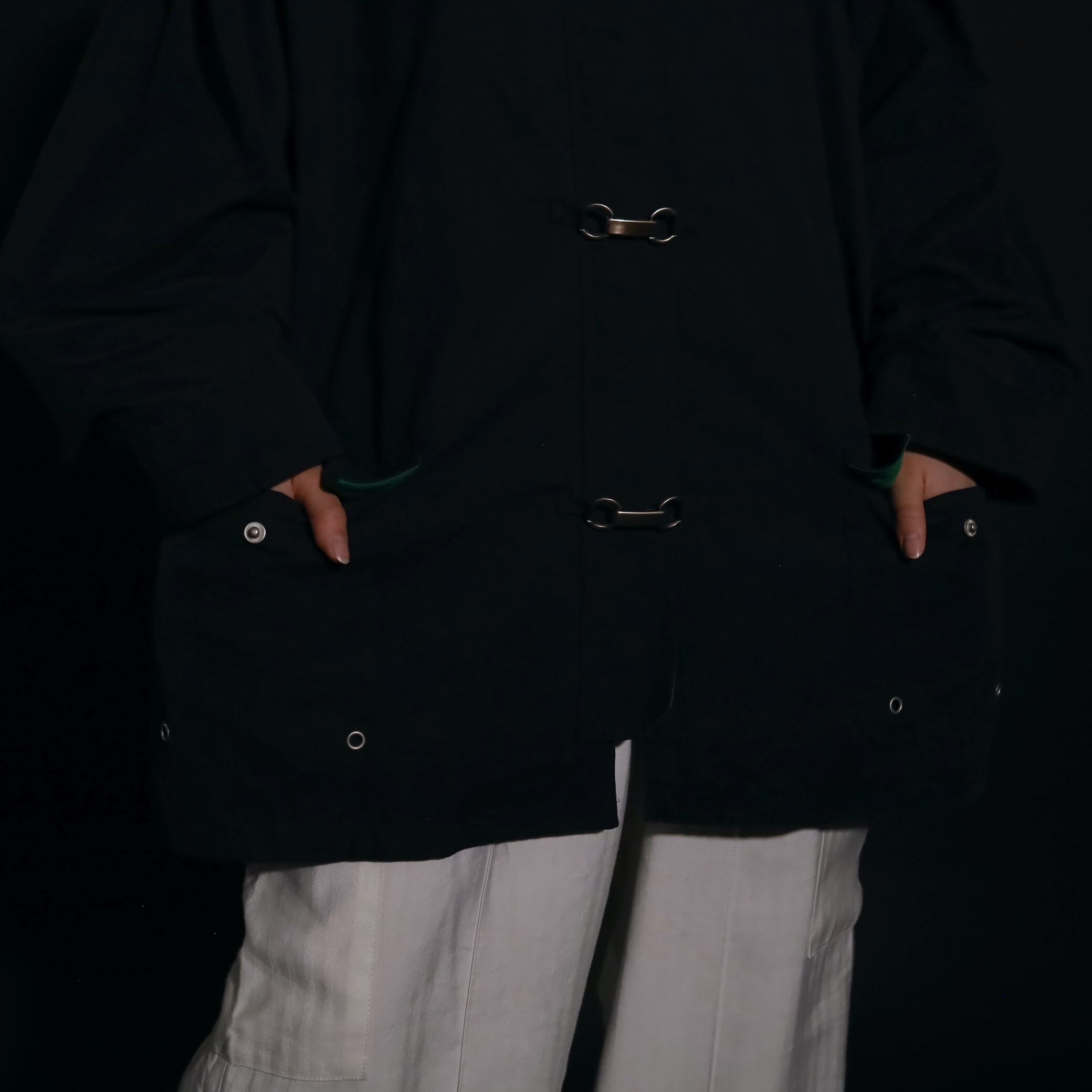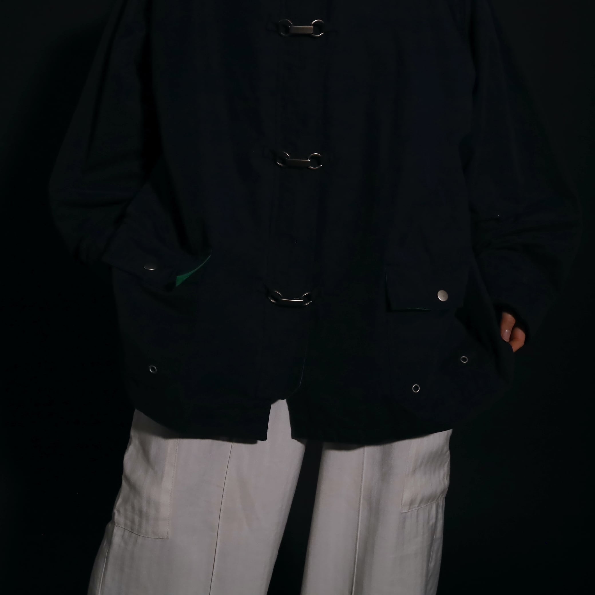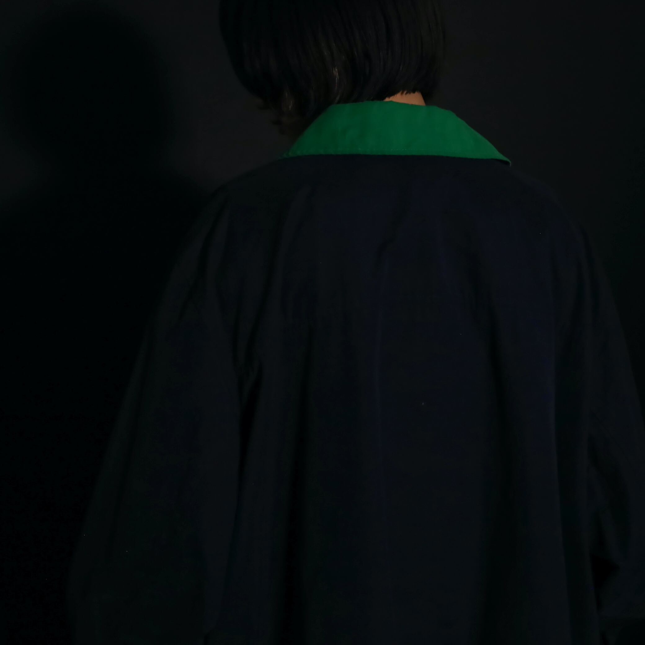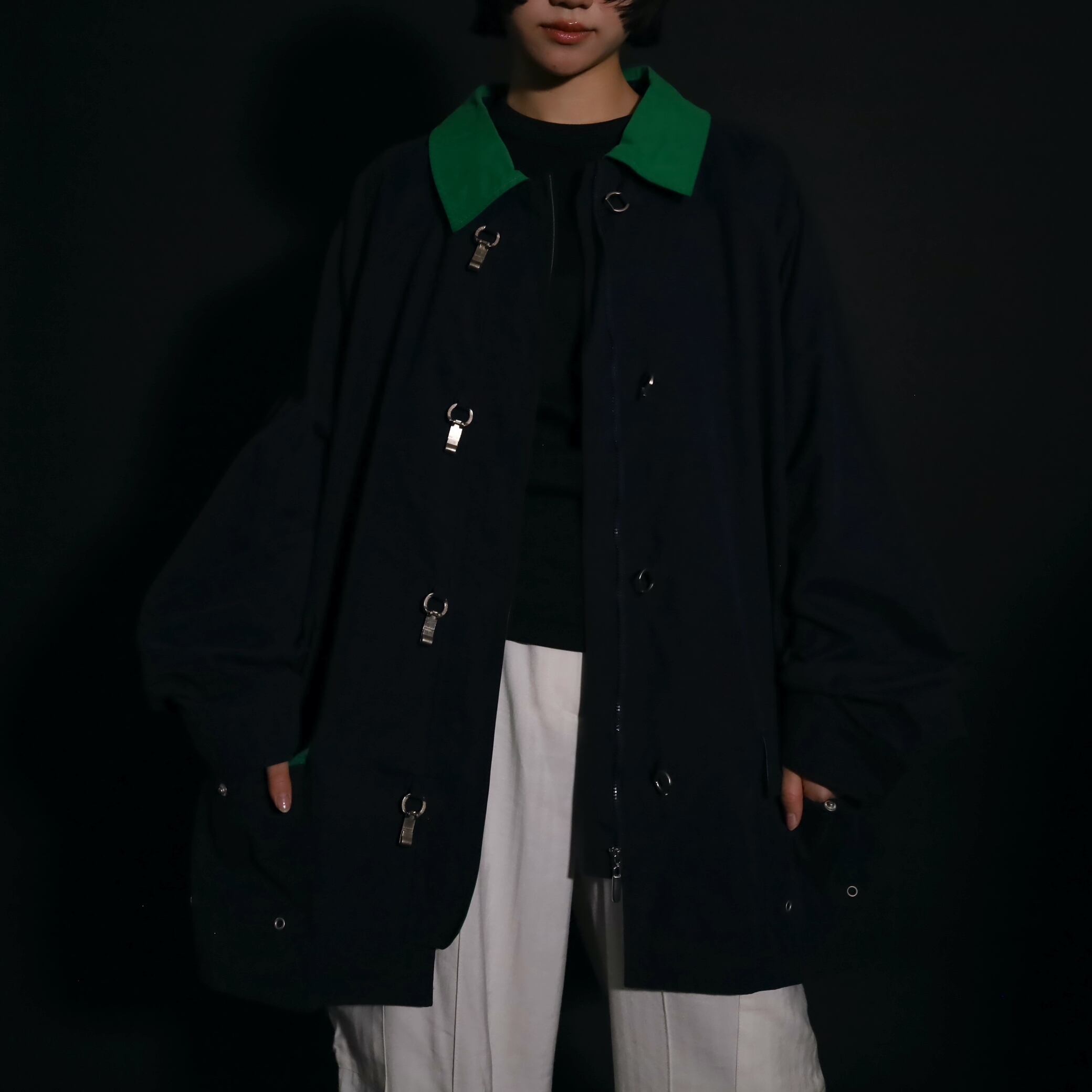 ネイビーカラーのボディをベースに,襟はグリーンカラーに切替わるバイカラーデザイン.