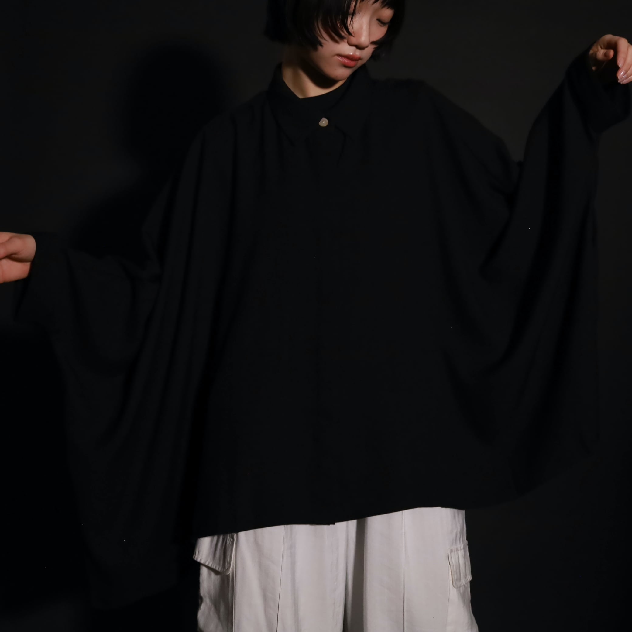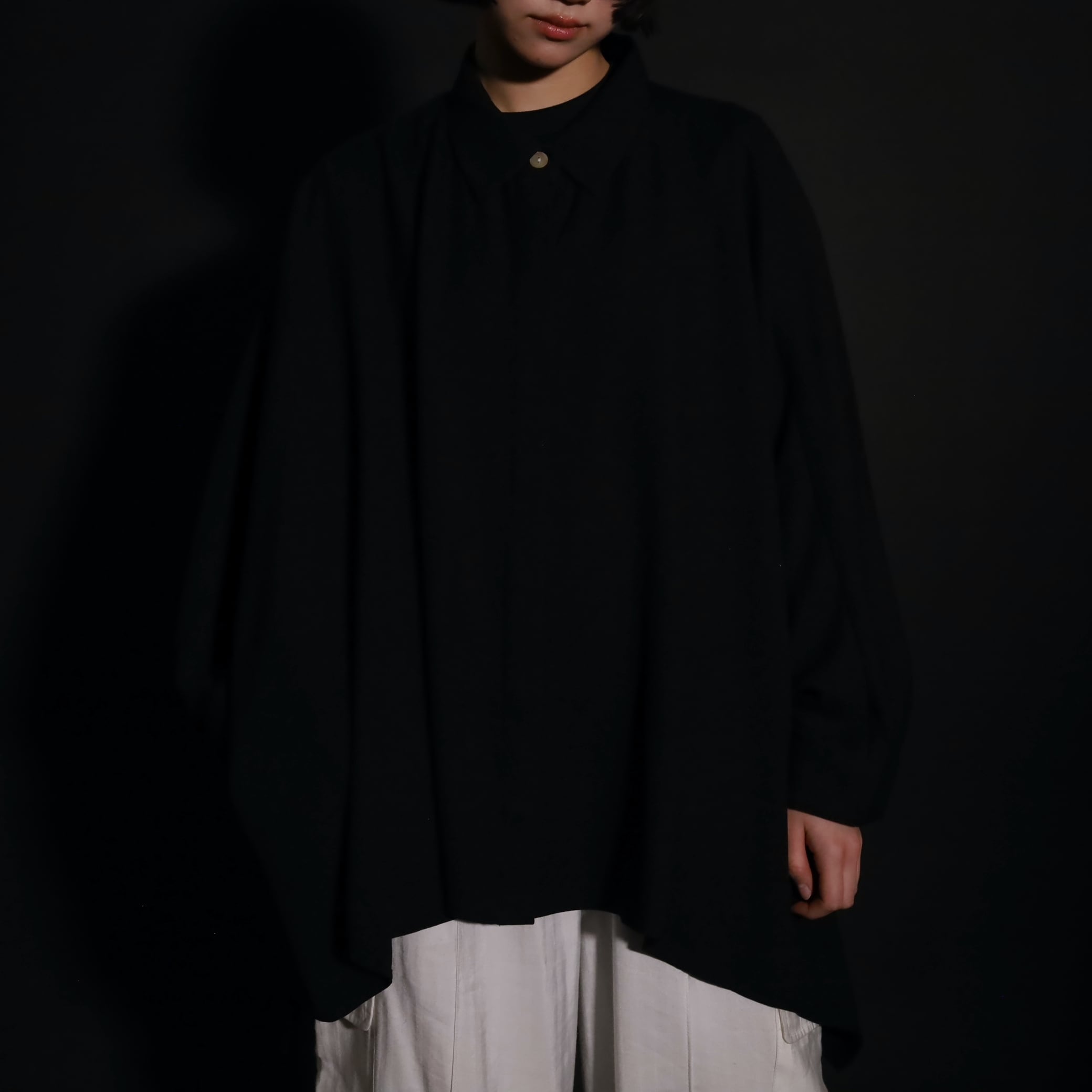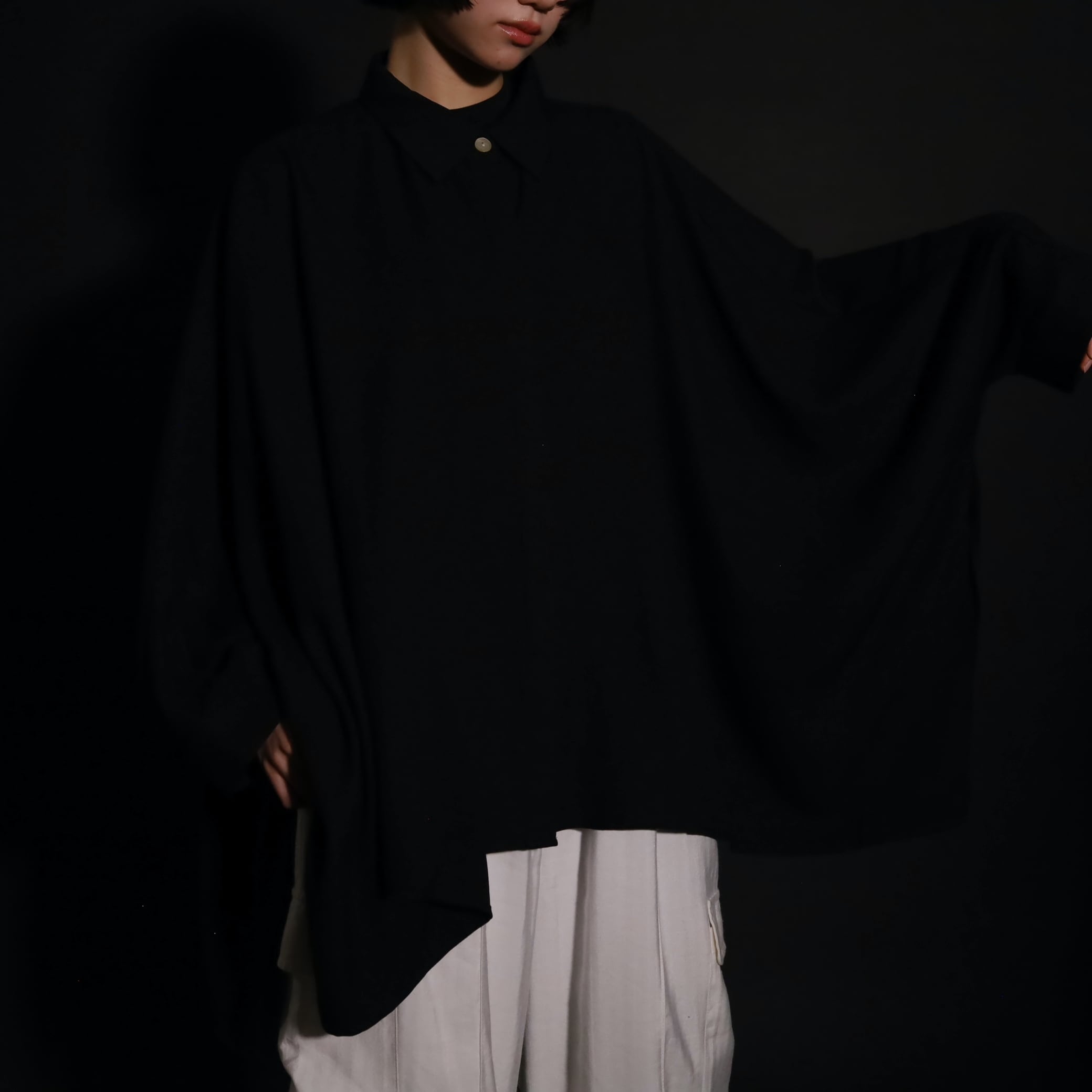 ポンチョのような…ドルマンスリーヴのような…超変化球なドレープシャツです.