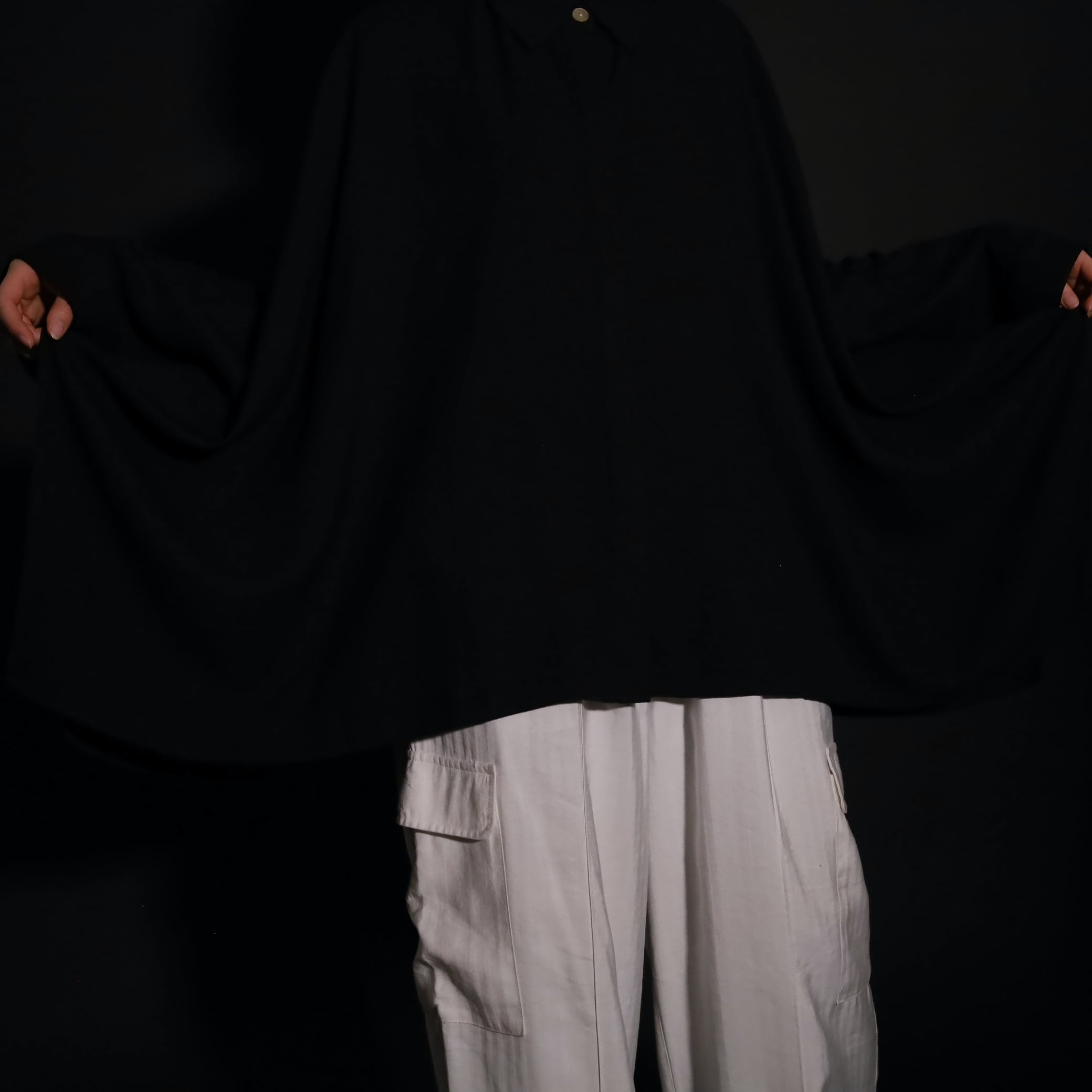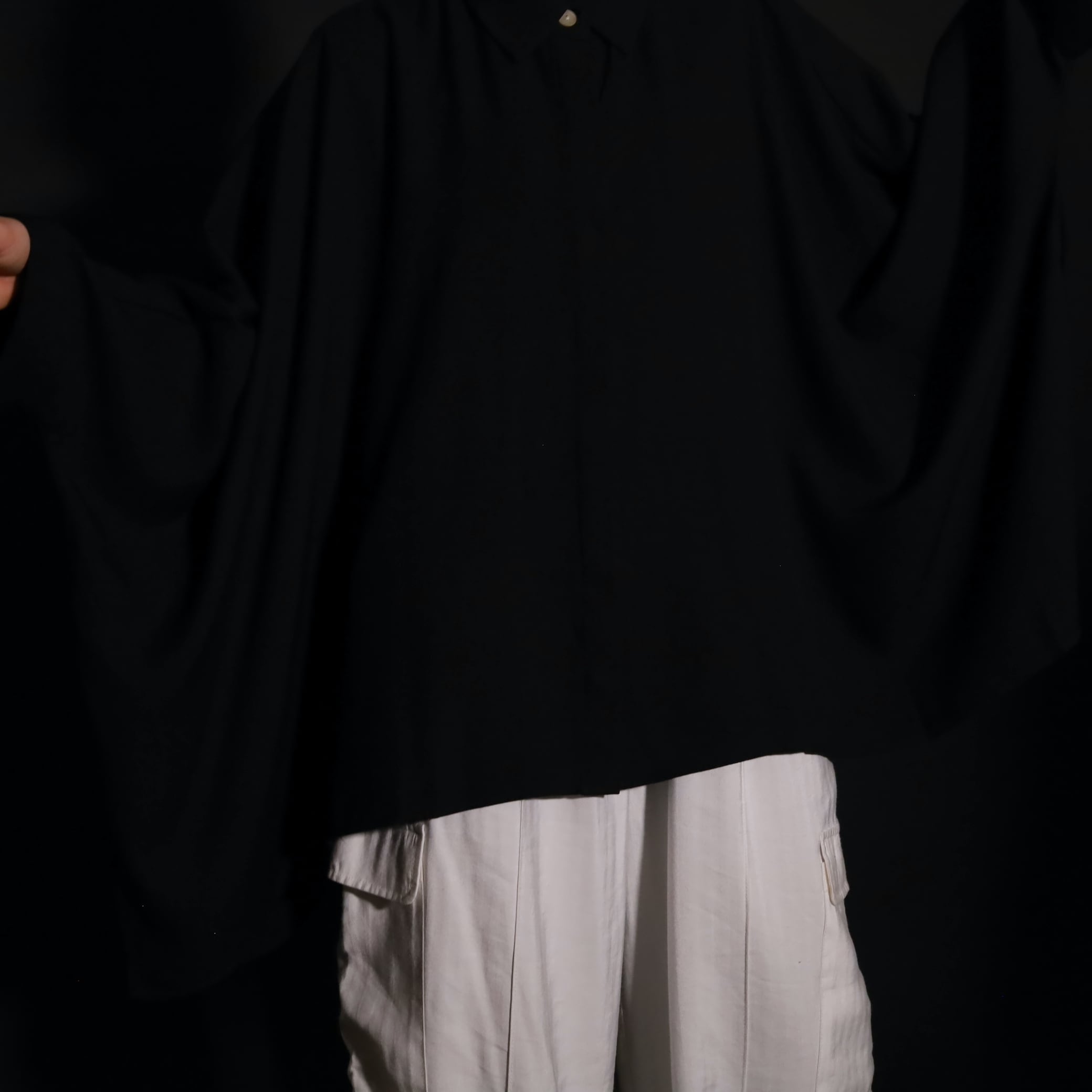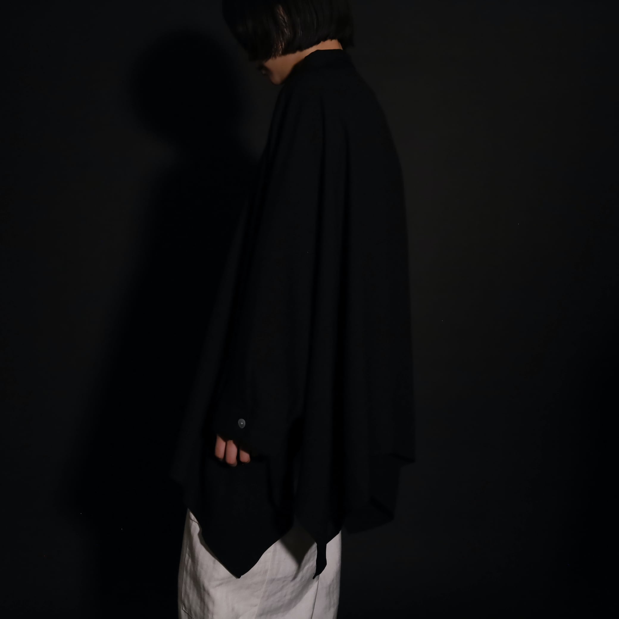 ポンチョのような…ドルマンスリーヴのような…超変化球なドレープシャツです.