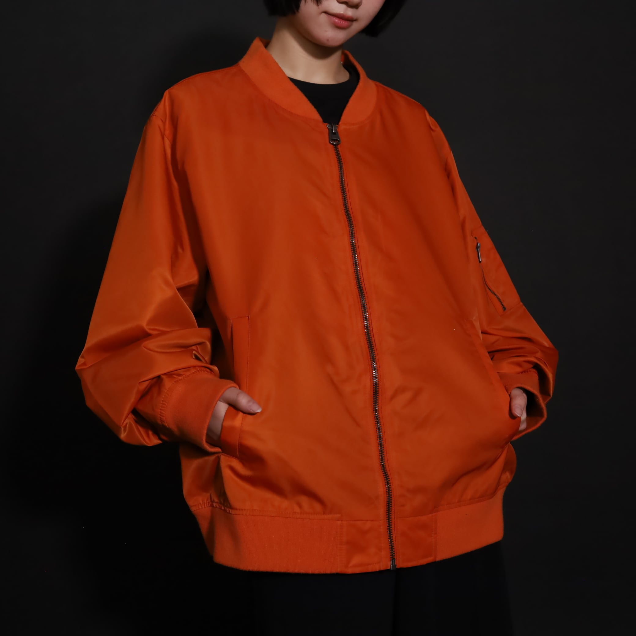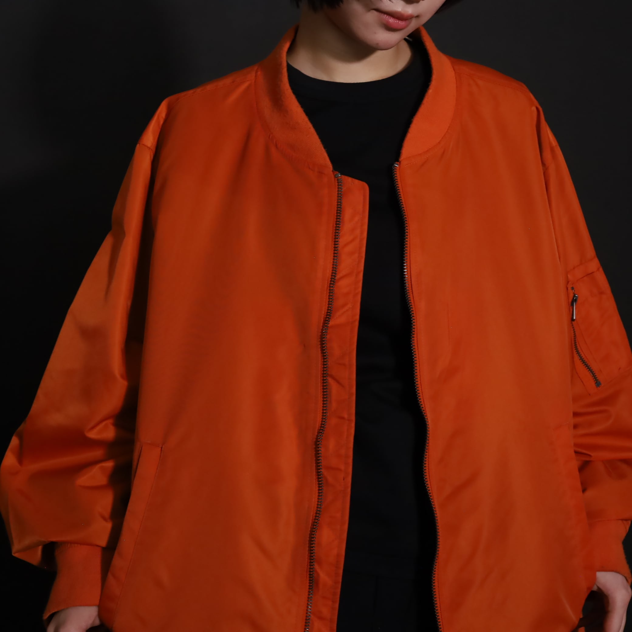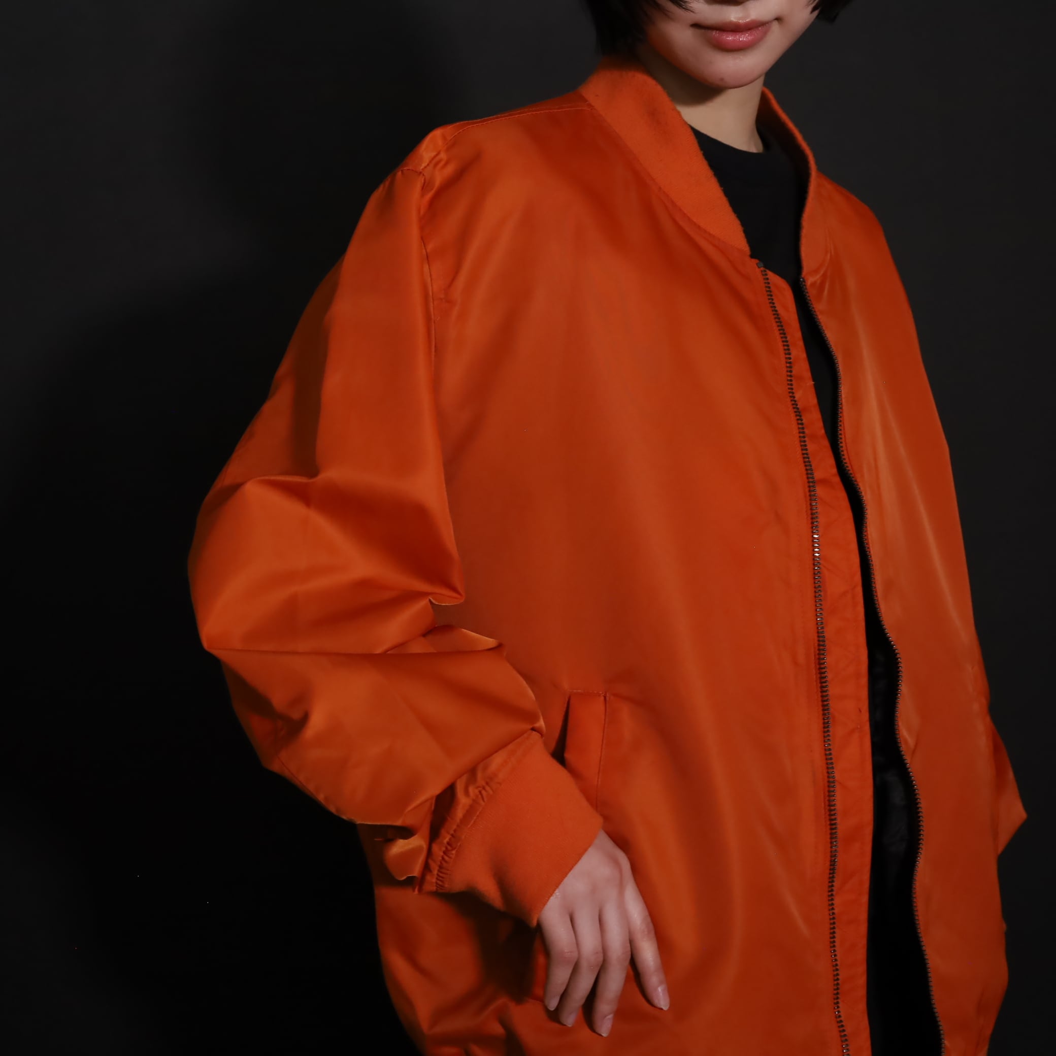 MA-1らしくボリュームは満点,丈はレイヤードに活かせるショート丈.