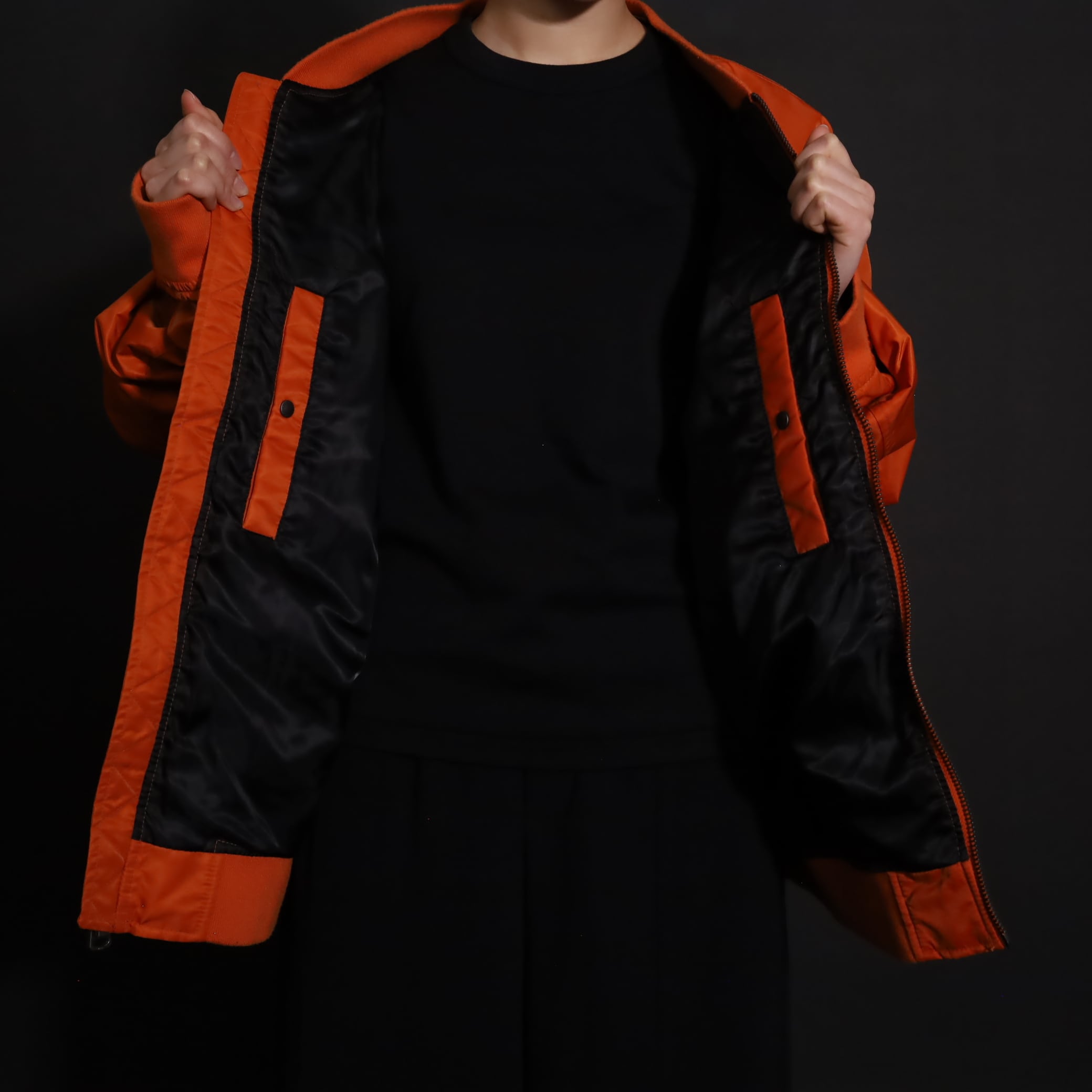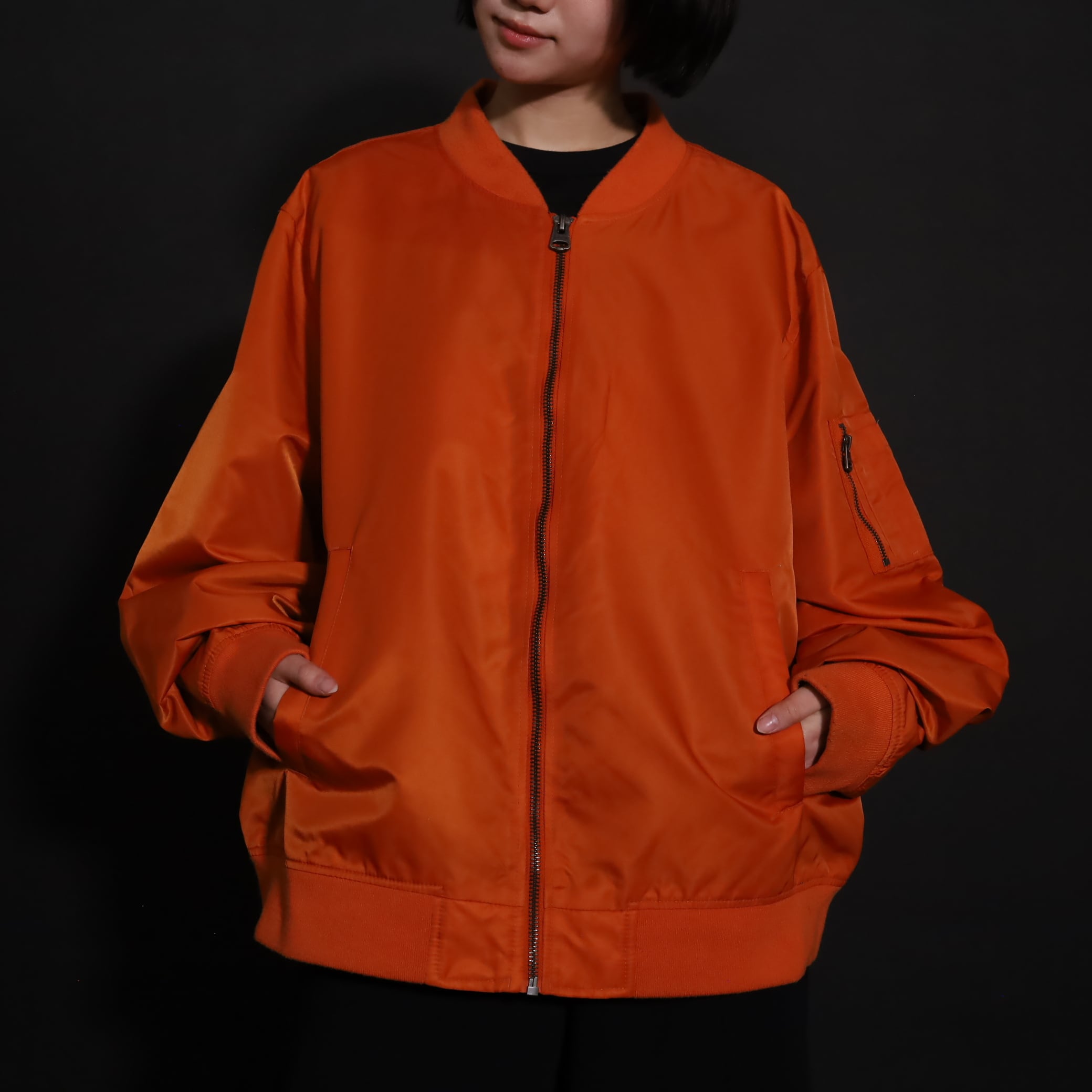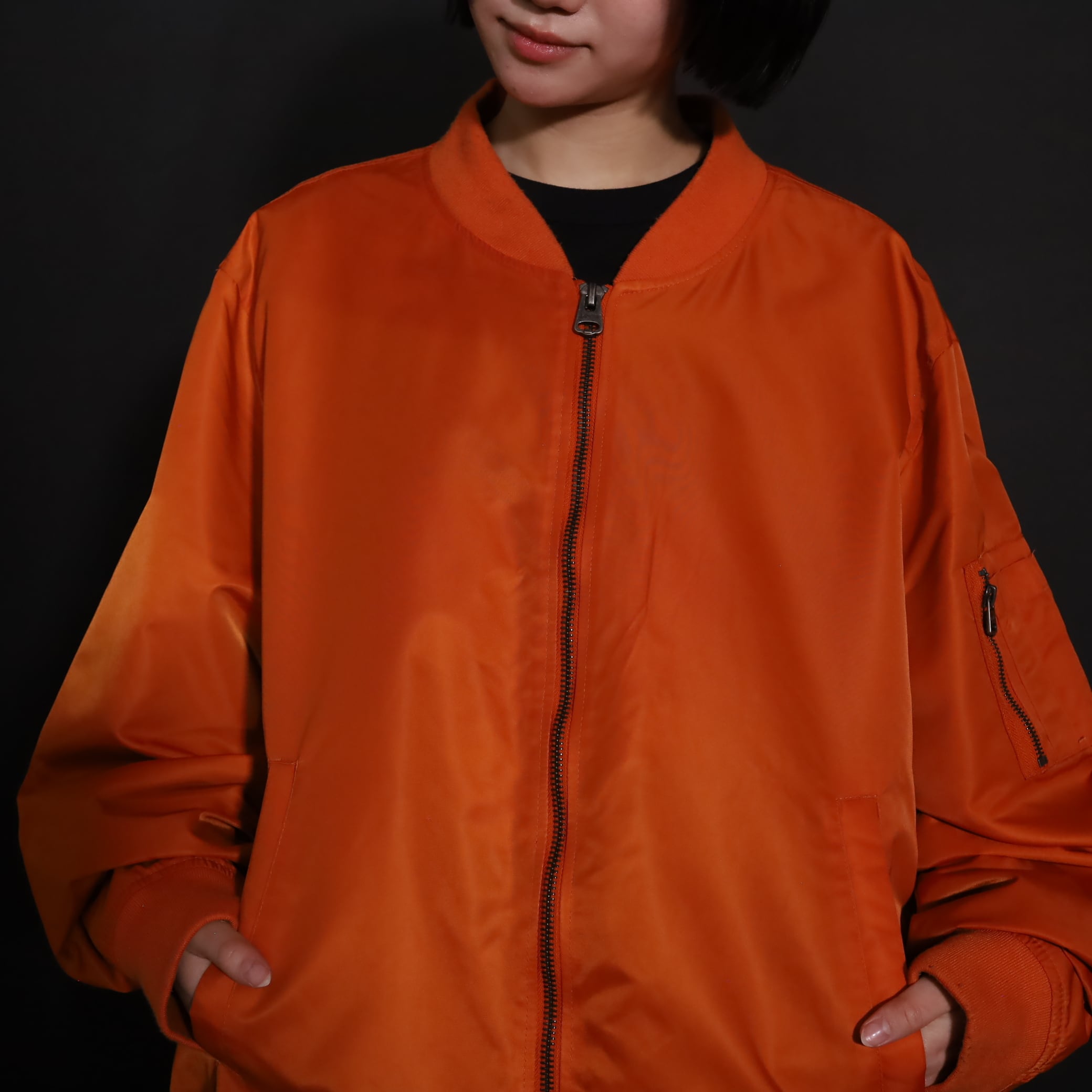 MA-1らしくボリュームは満点,丈はレイヤードに活かせるショート丈.