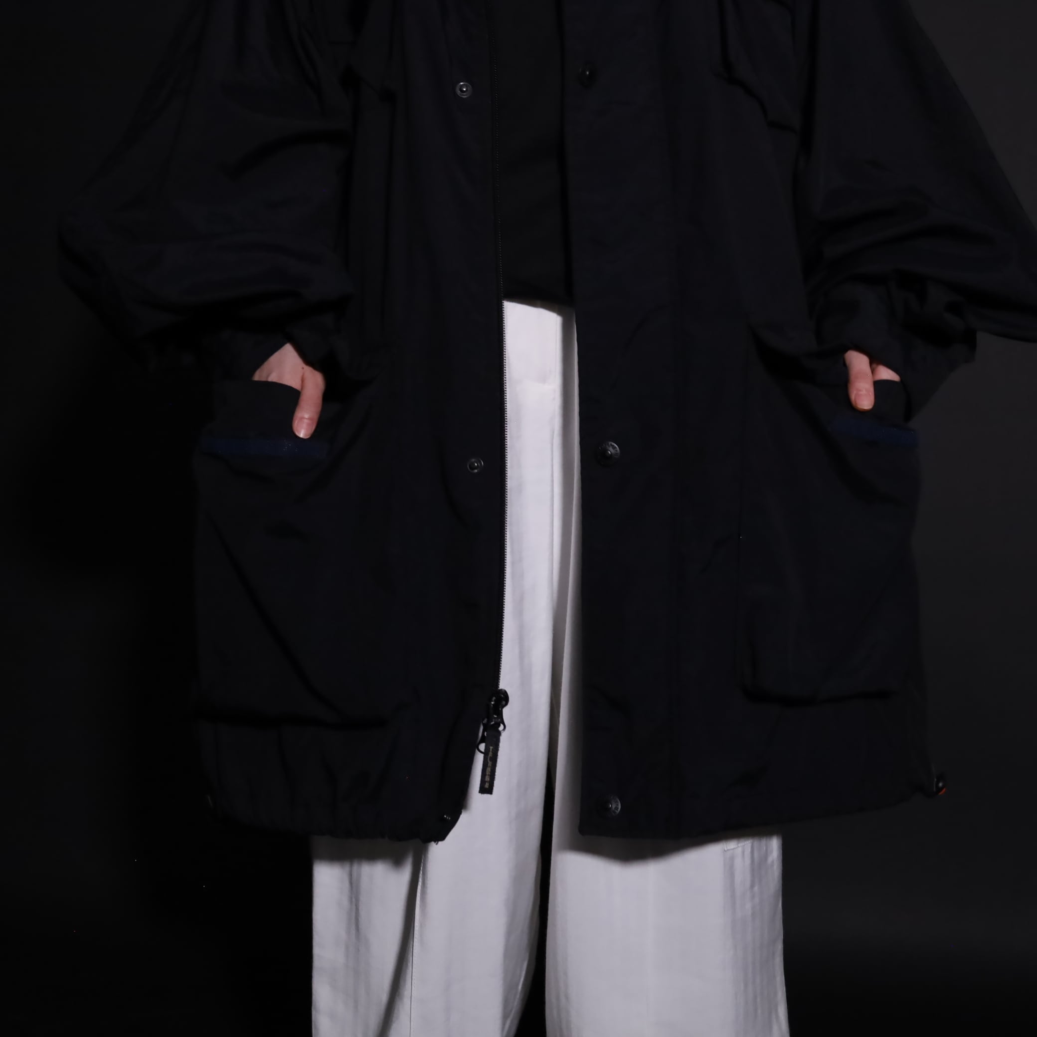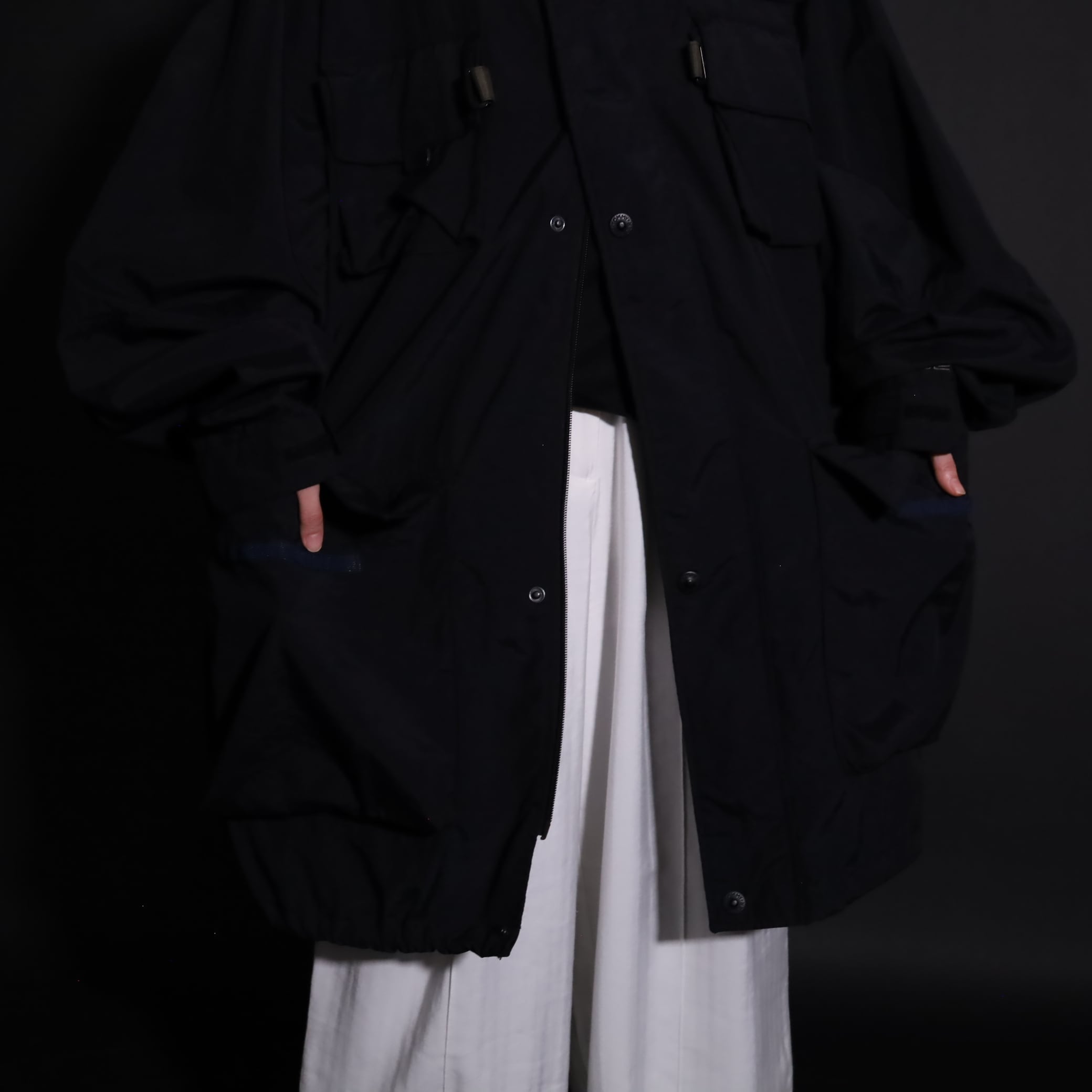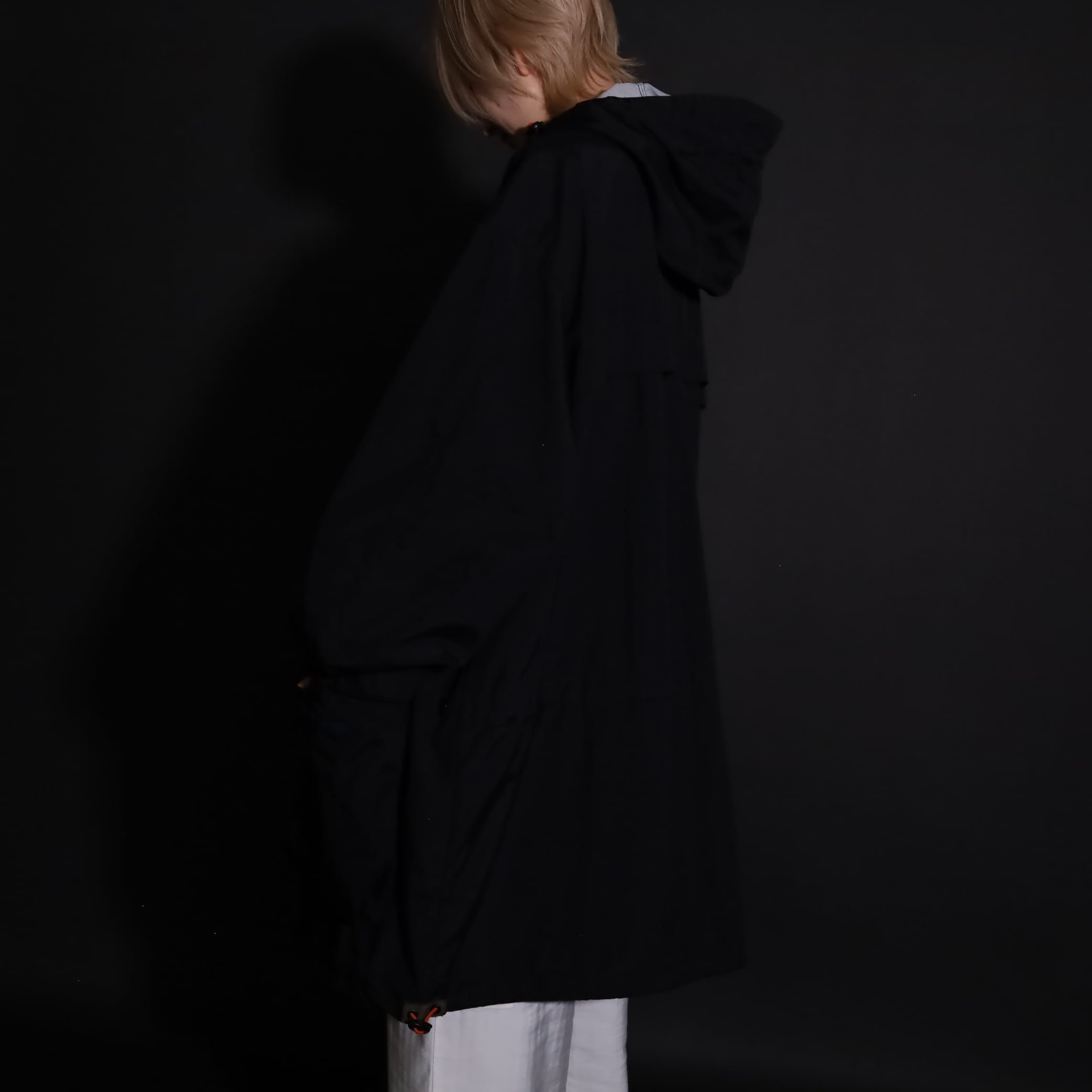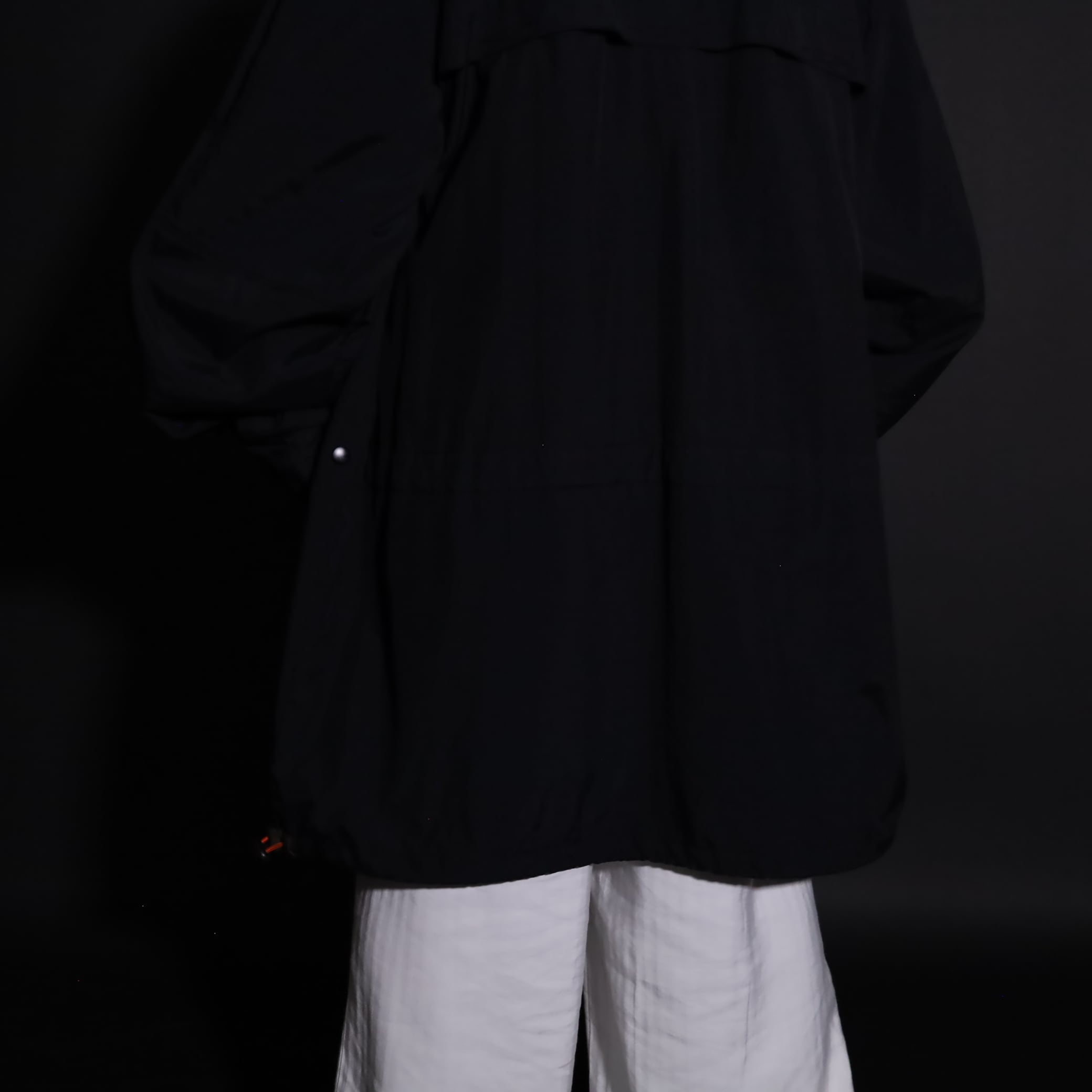 TALLタイプのため着丈は長い仕立てですが,裾のドローコードで絞ると丈感も調整できます.