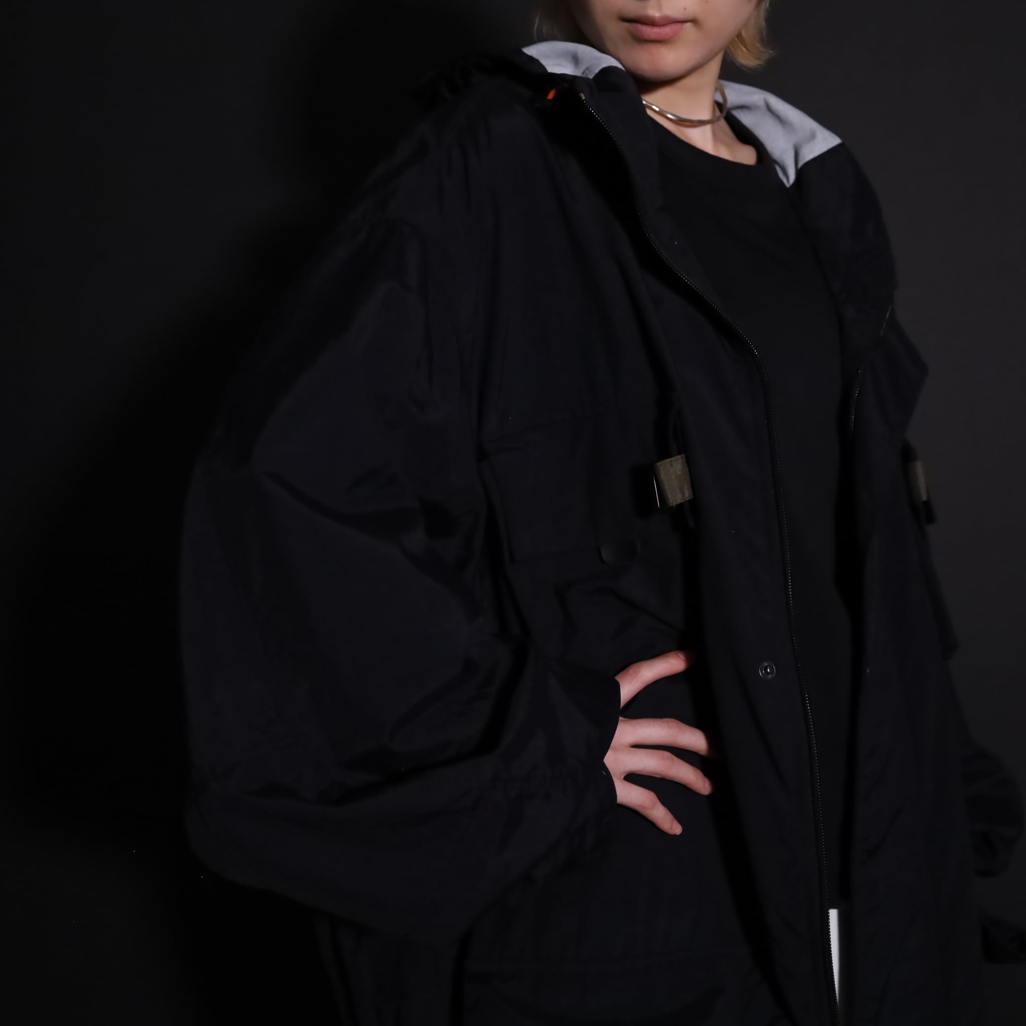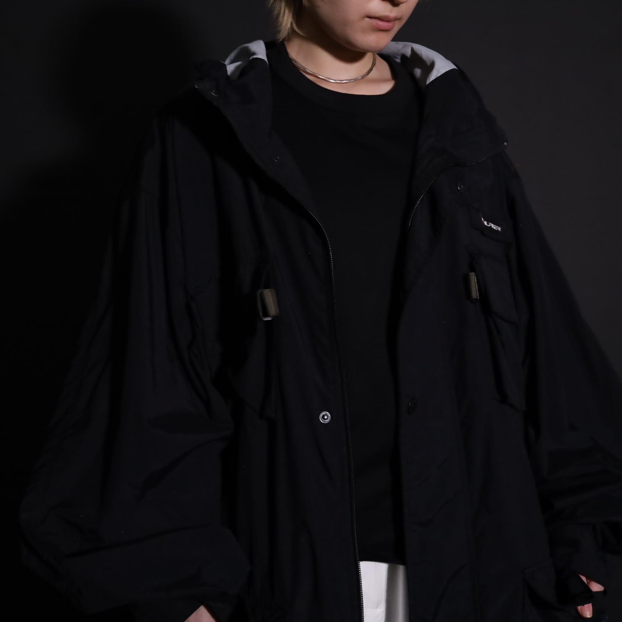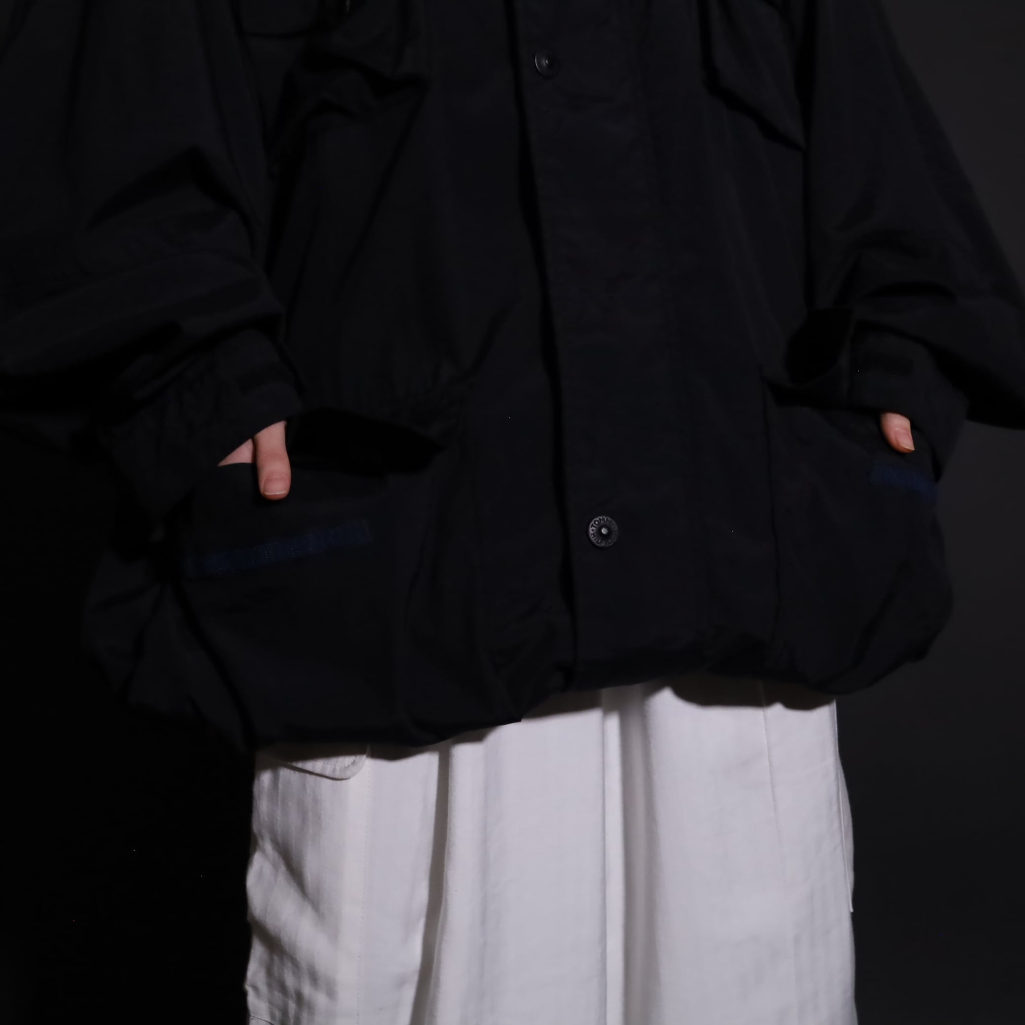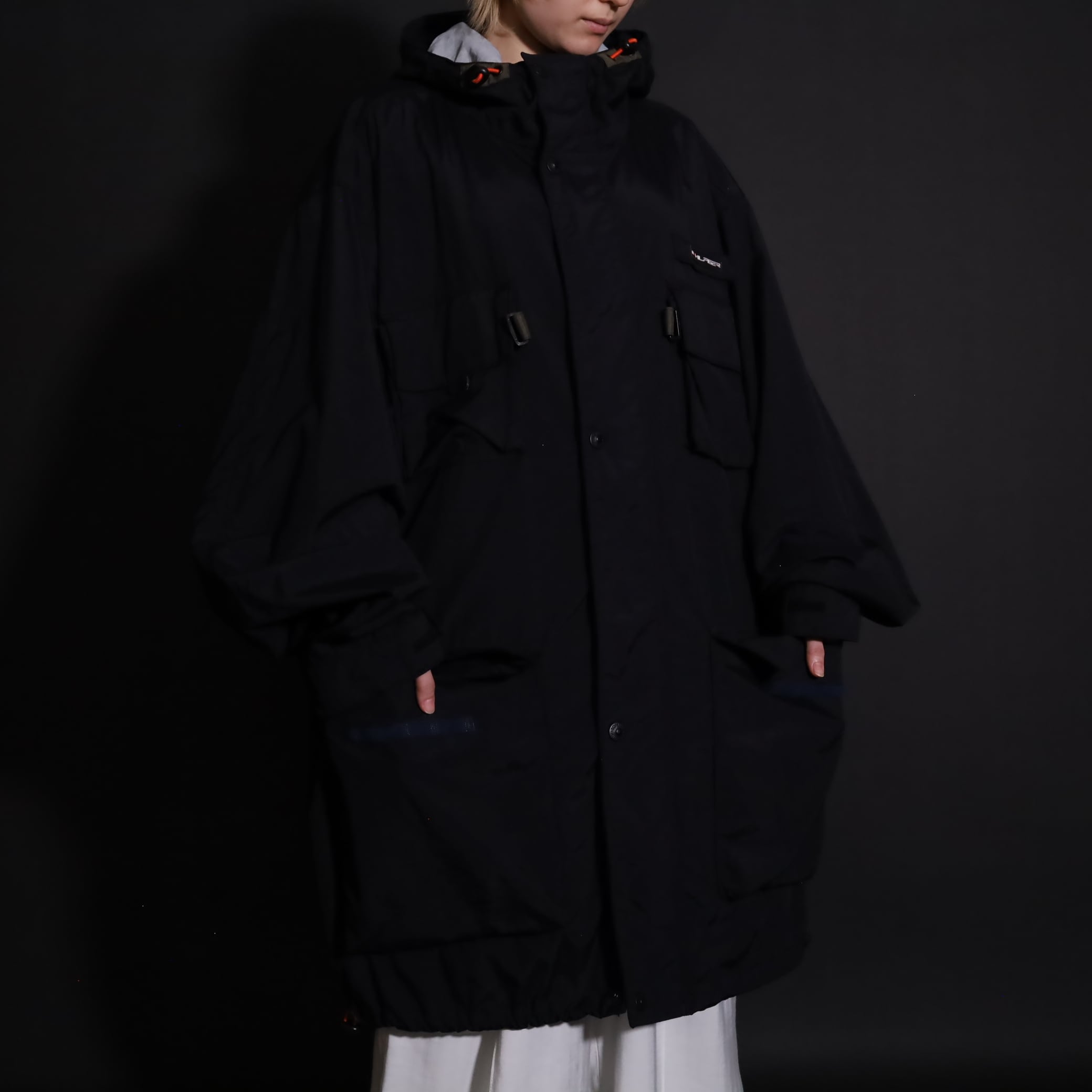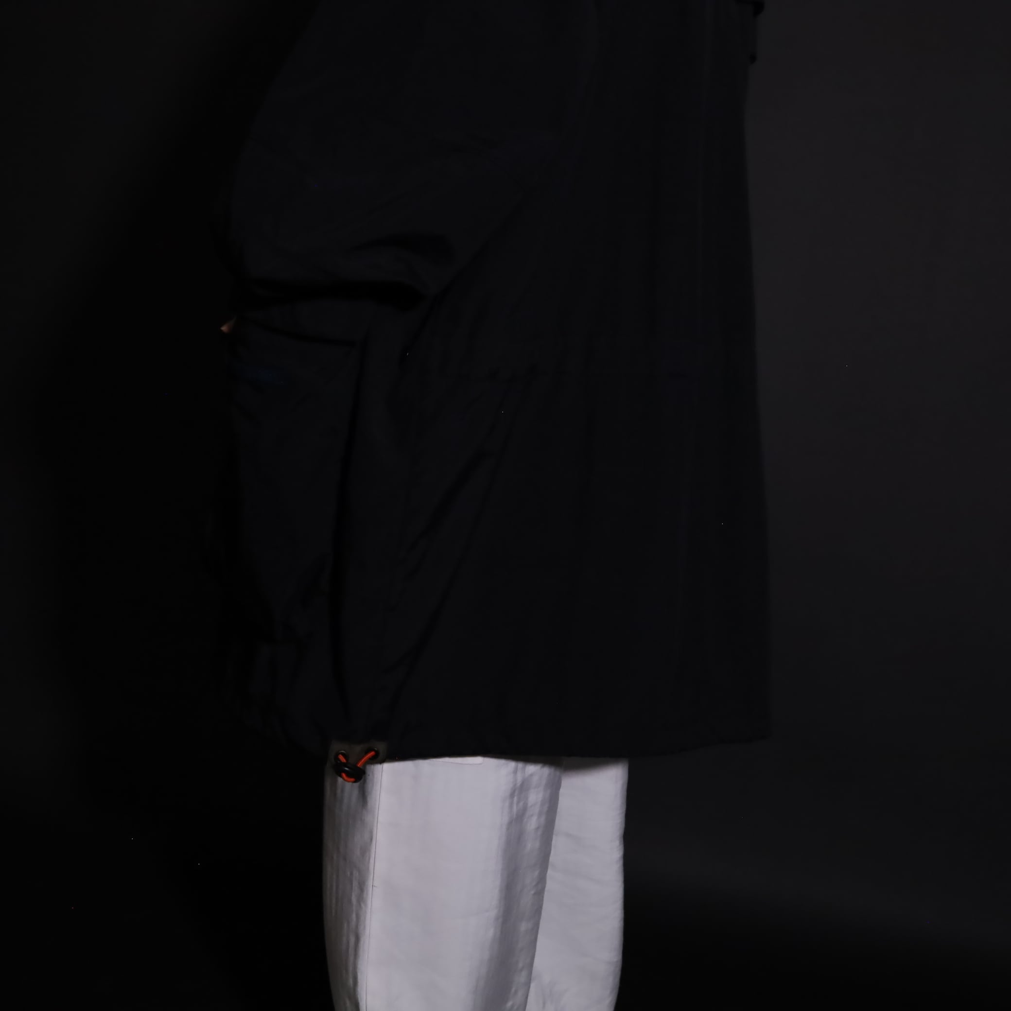TALLタイプのため着丈は長い仕立てですが,裾のドローコードで絞ると丈感も調整できます.