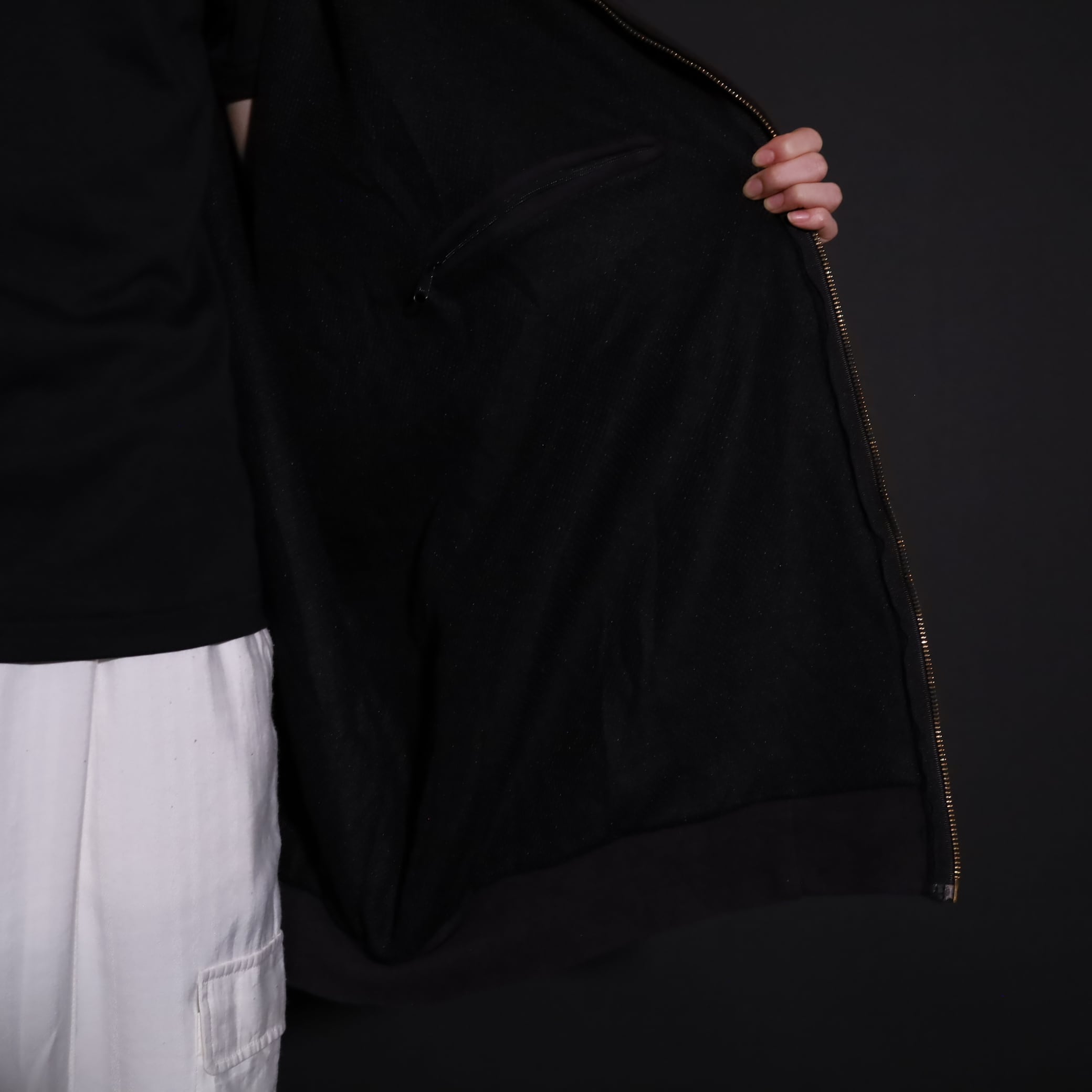 ジッパーもお馴染みの真鍮製で,ヴィンテージライクな風合いが良し.