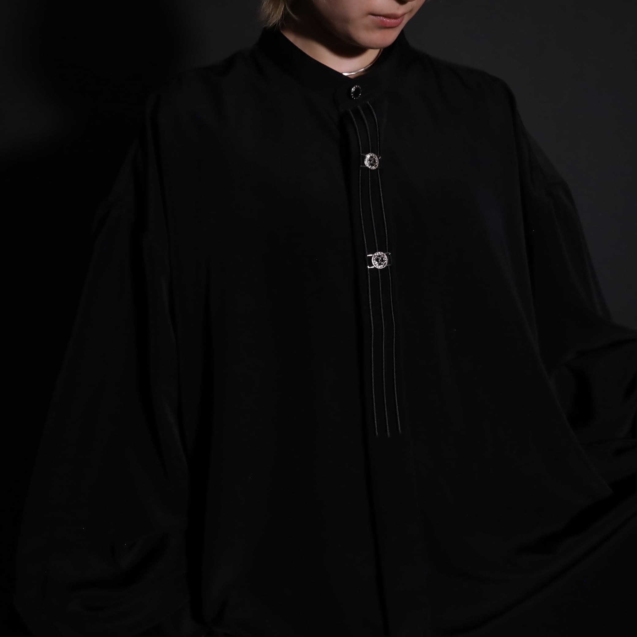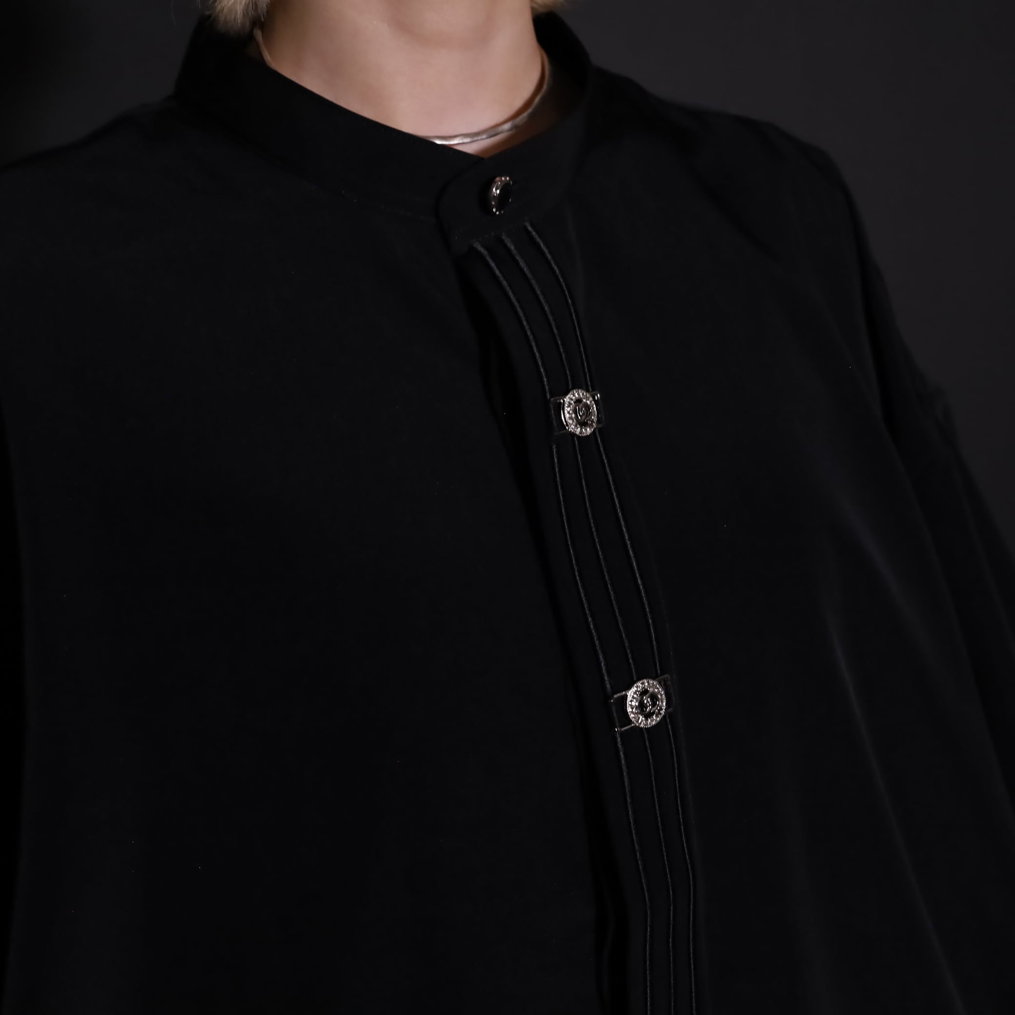 前立ては比翼デザインで品よくまとまり,さらに比翼上にはエレガントな装飾ボタンが付属で,ラグジュアリーなテイストに仕上がっています.