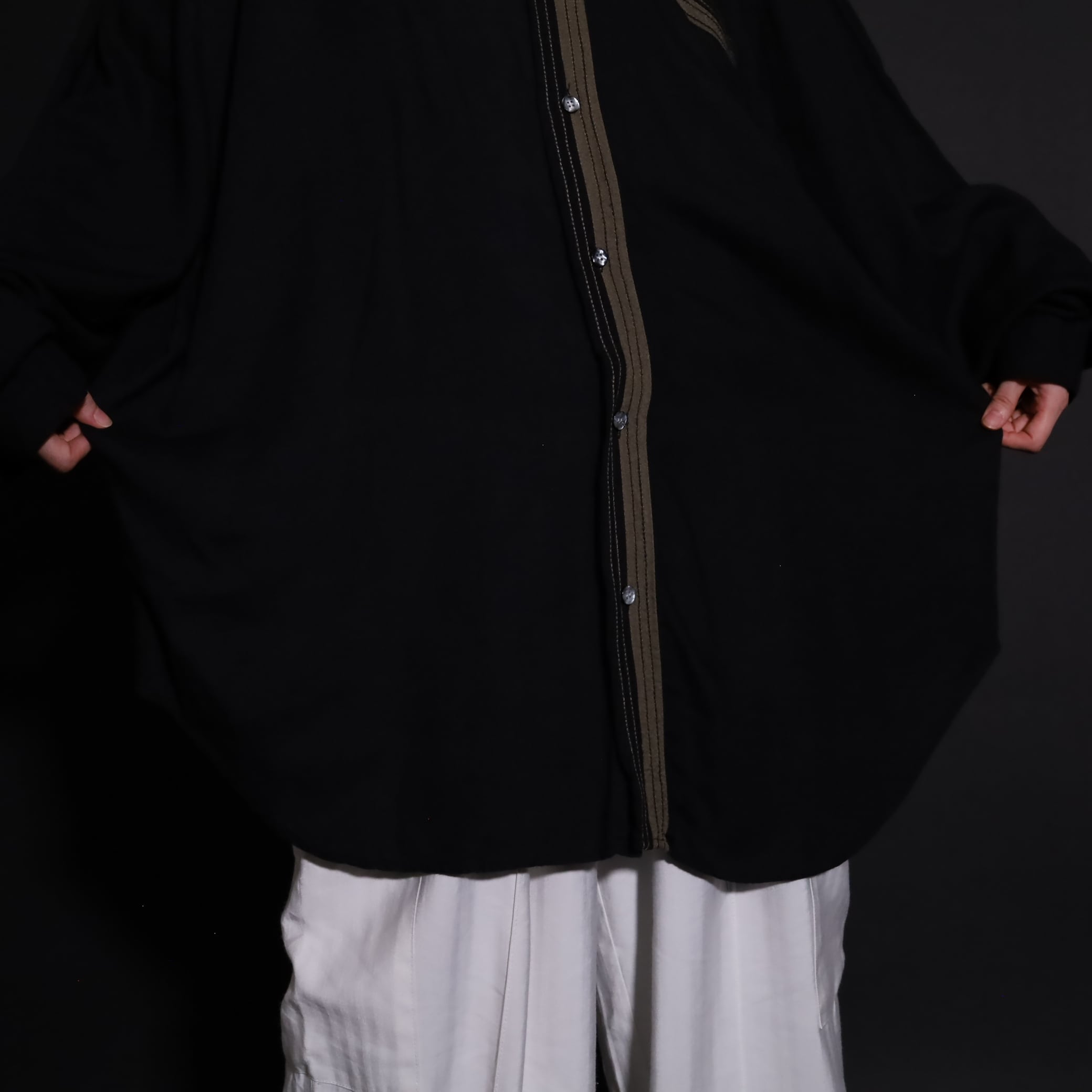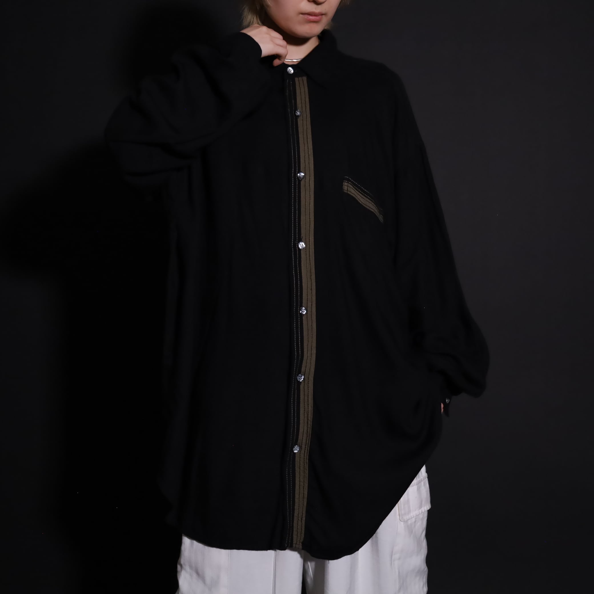 レーヨンの生地の落ち感が存分に発揮され,こなれ感あるルーズなシルエットを描きます.