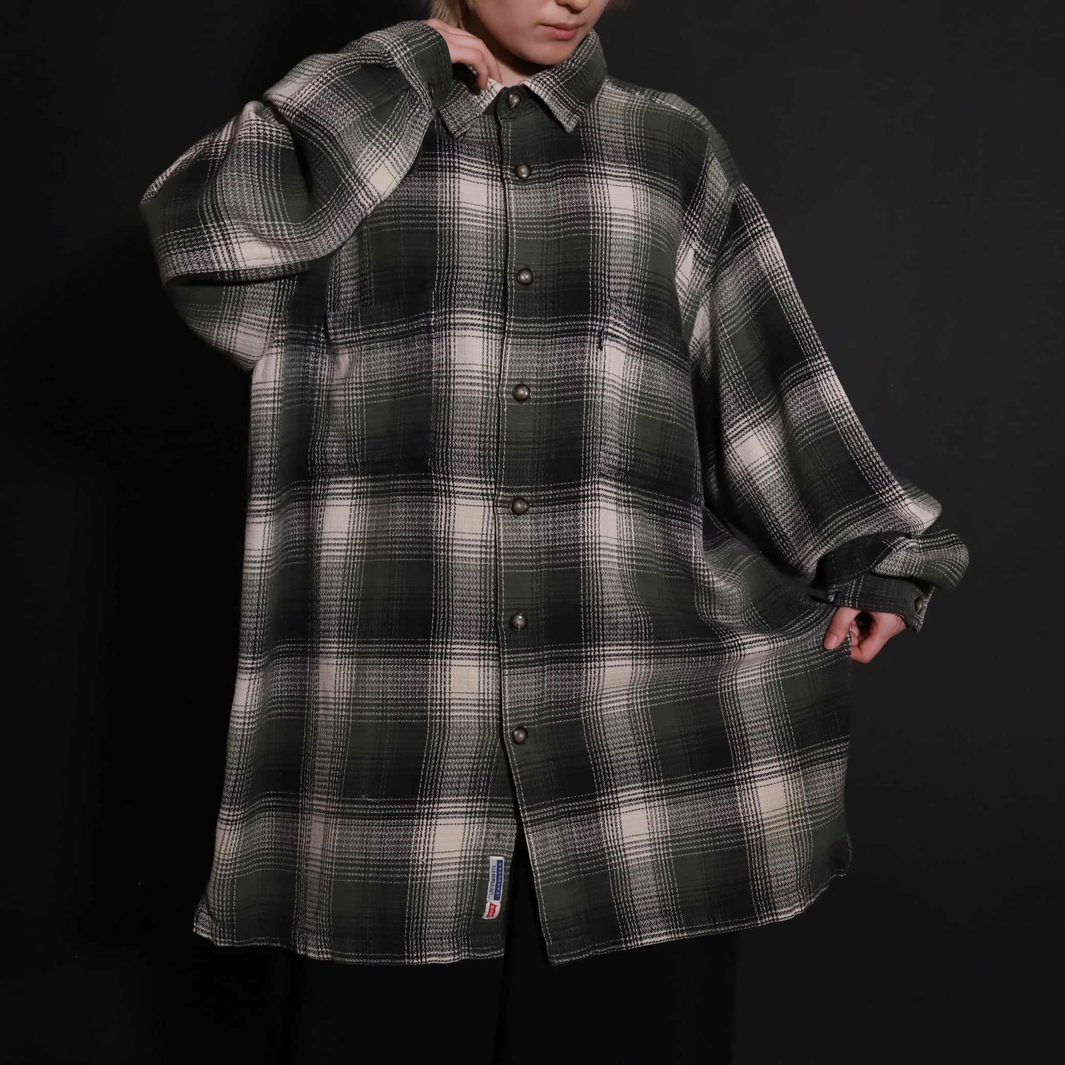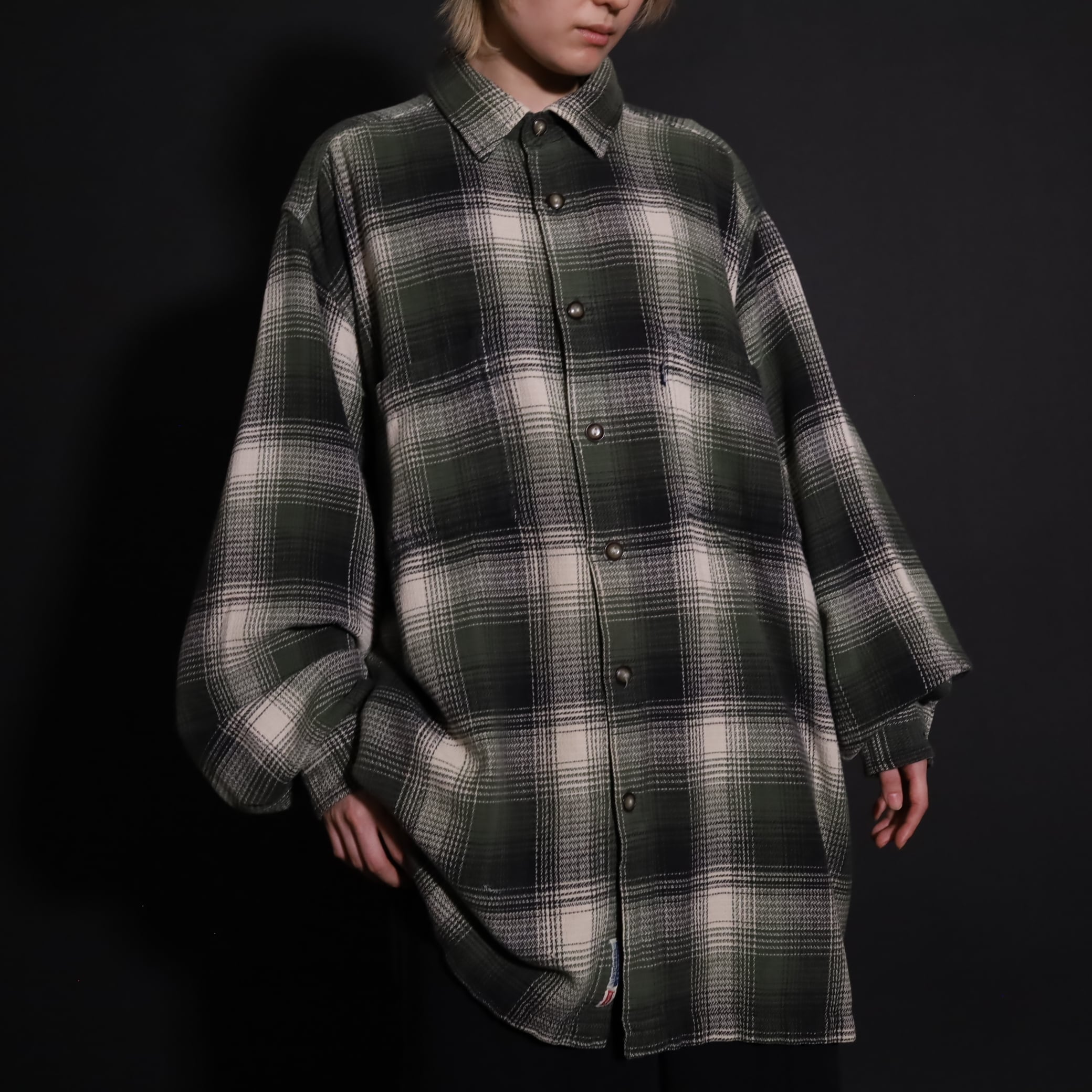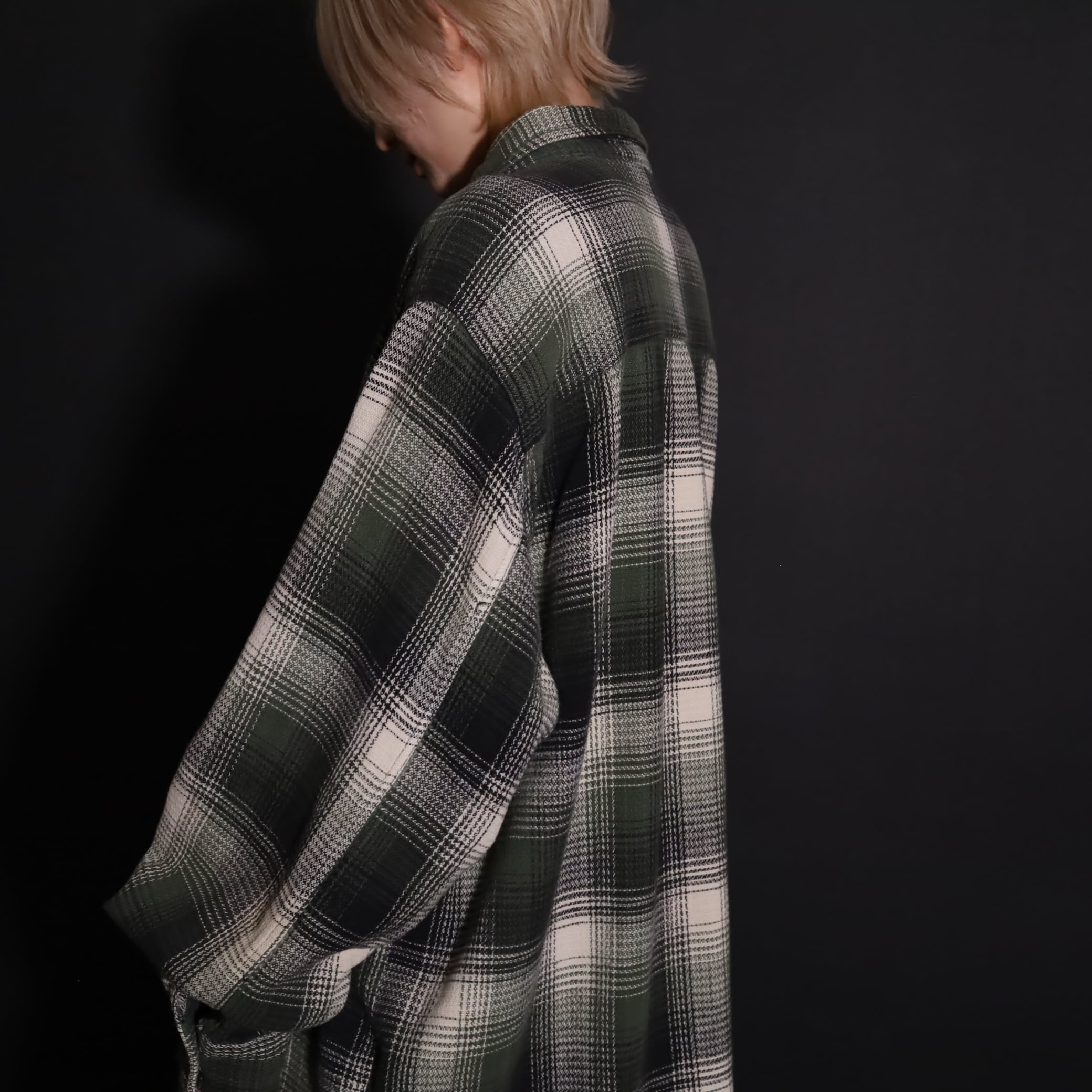 好配色のオンブレーチェックシャツ.