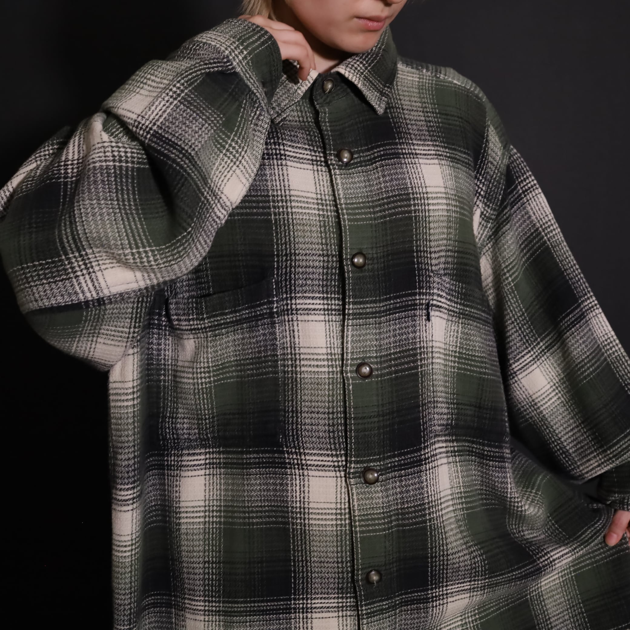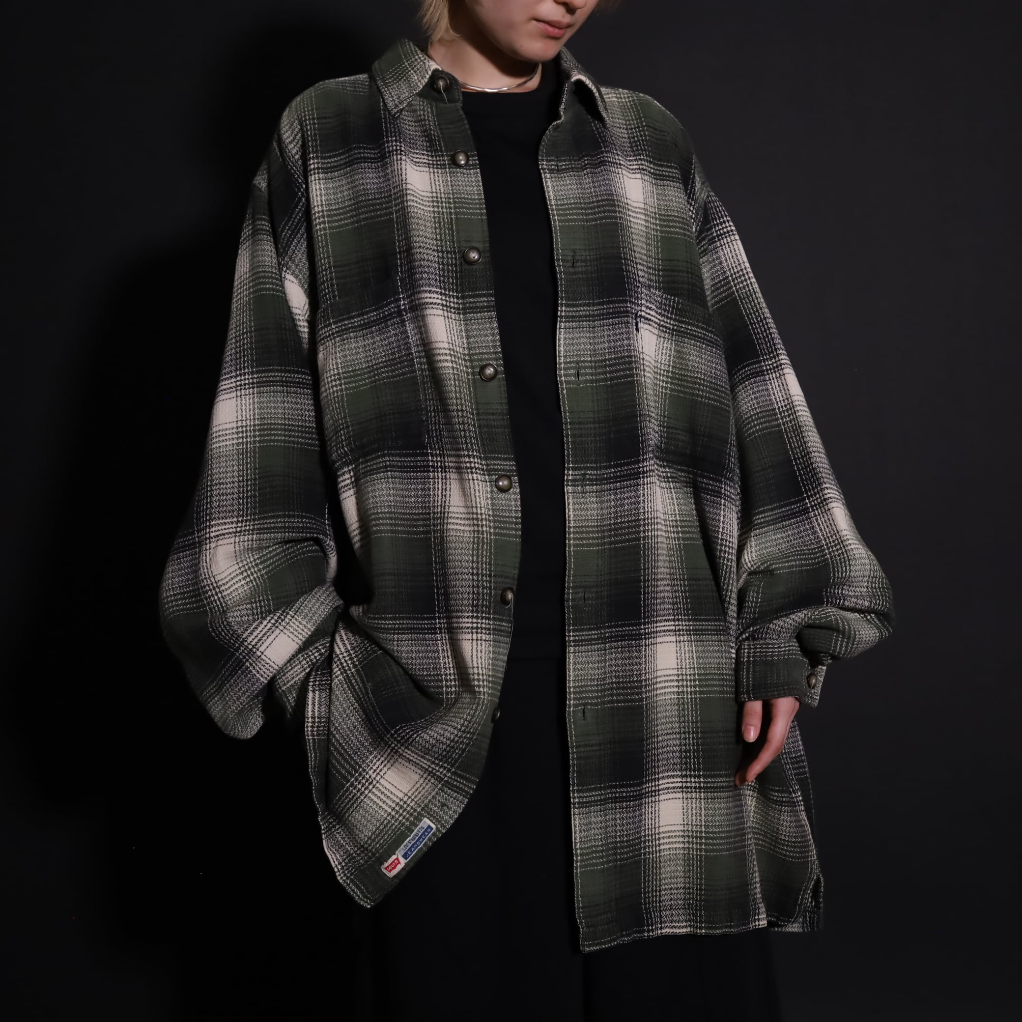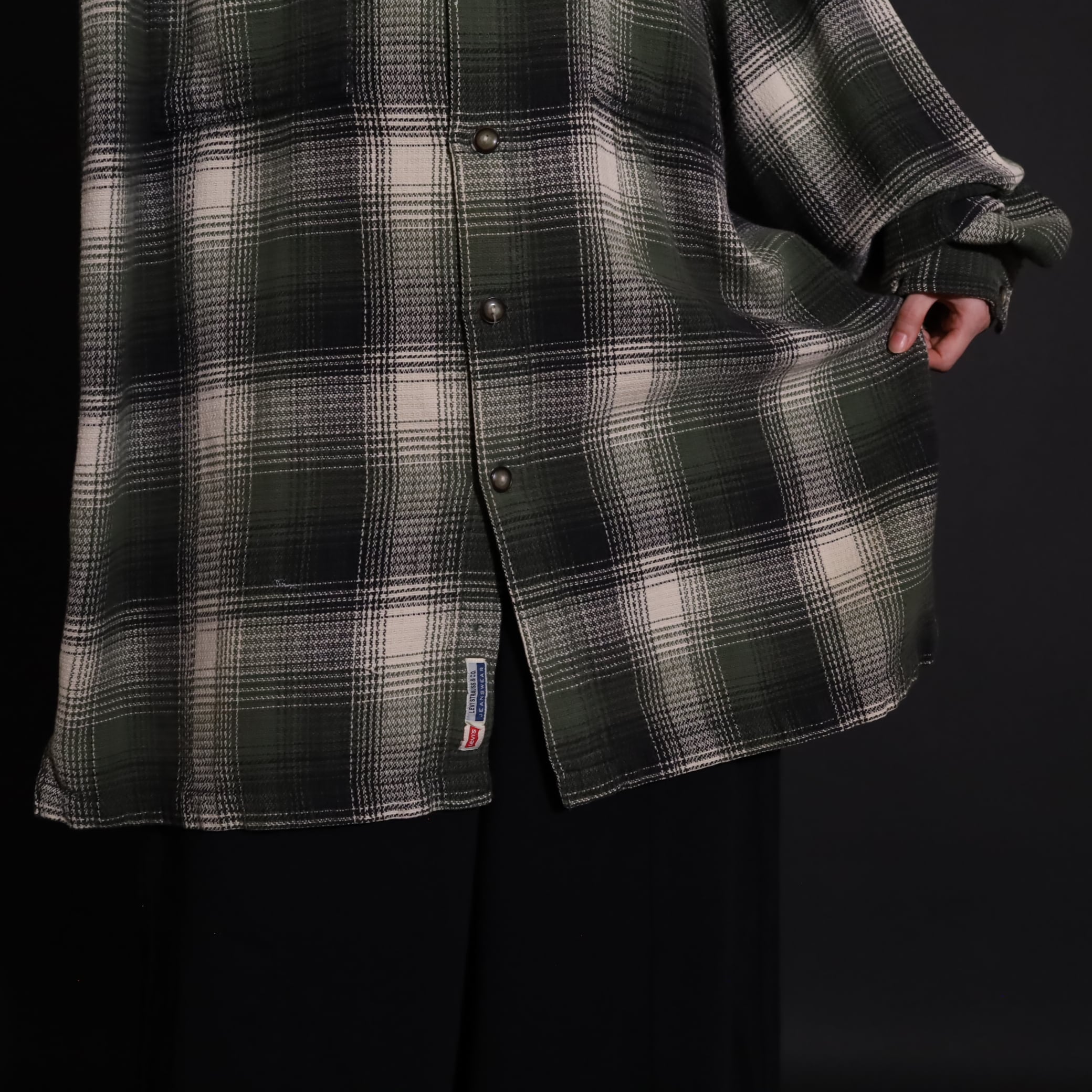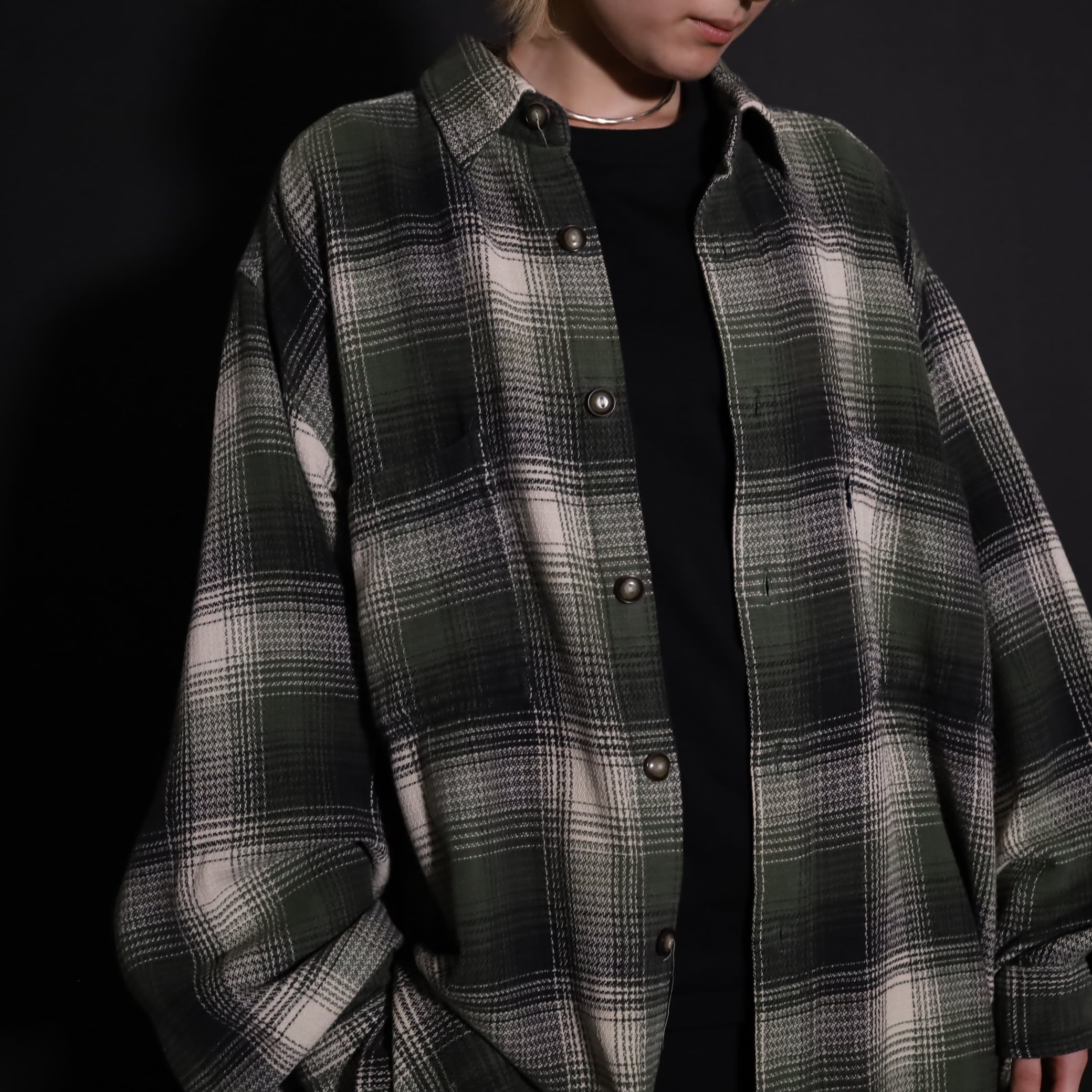 好配色のオンブレーチェックシャツ.