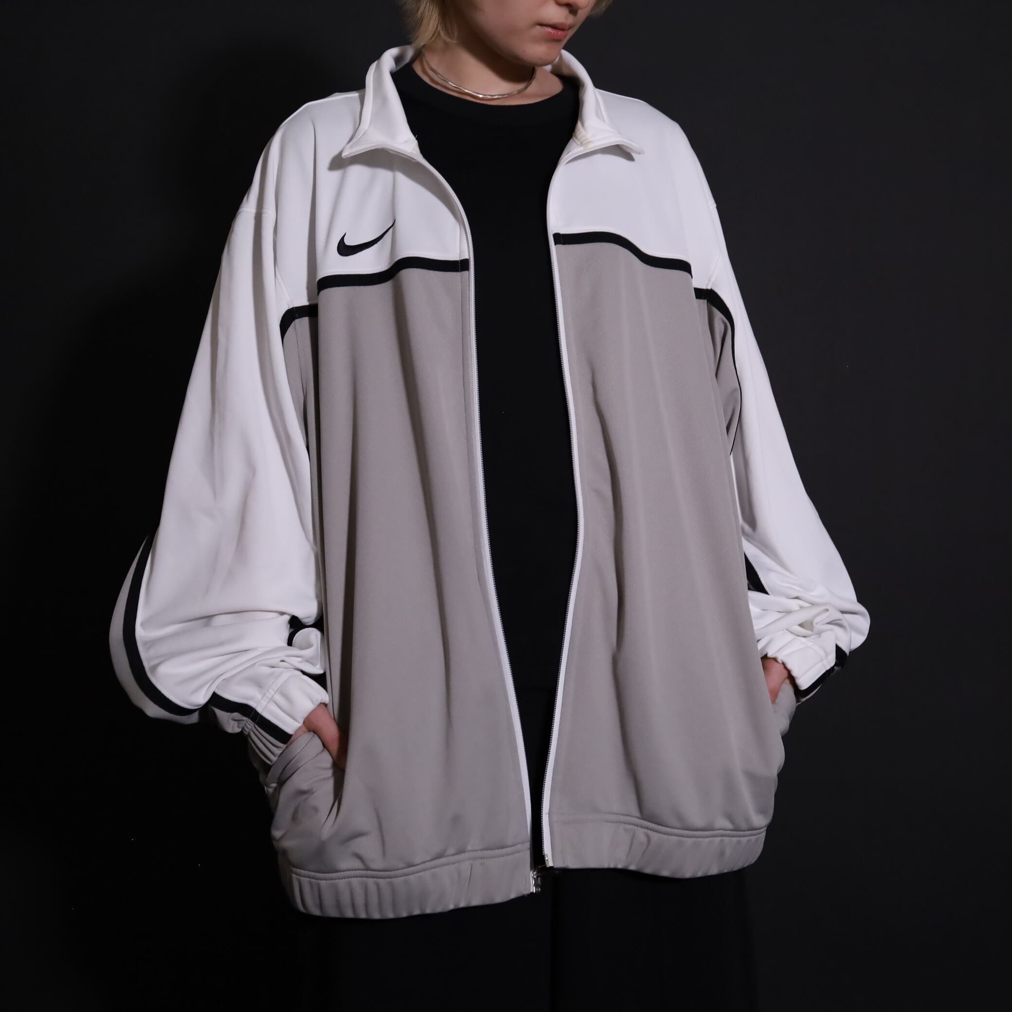 トラックジャケットとしてはナチュラルめな配色で,柔らかい印象のストリートスタイルが楽しめます.