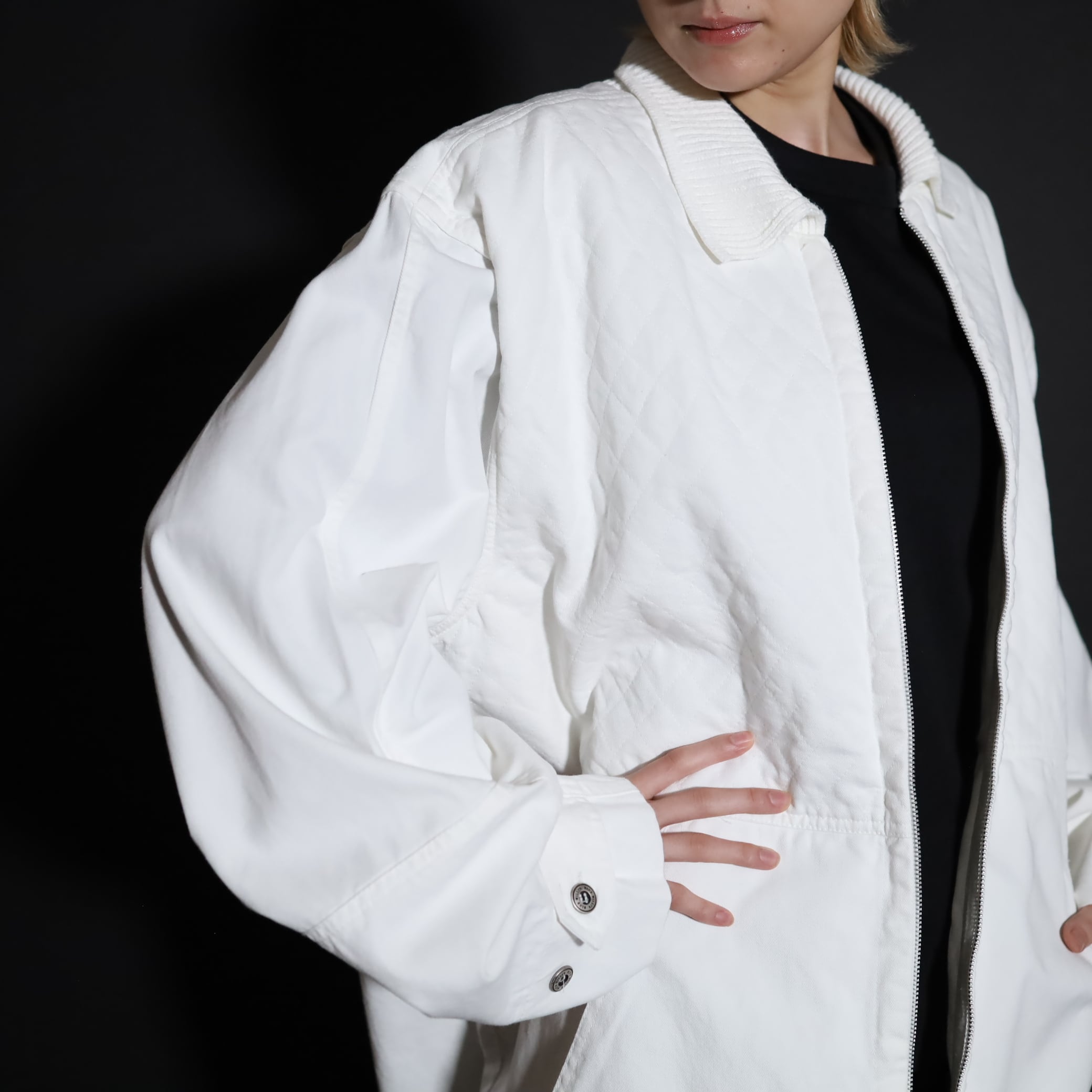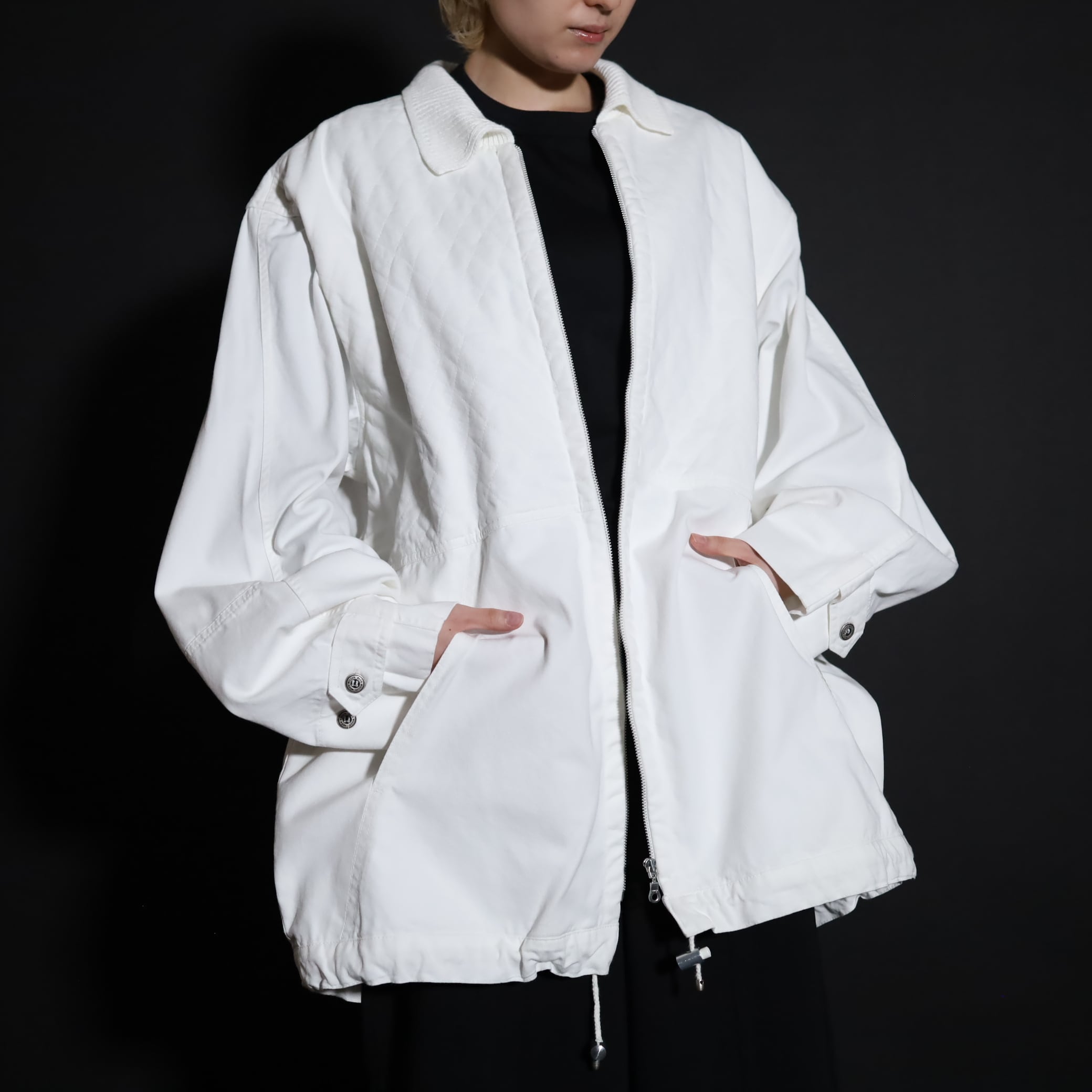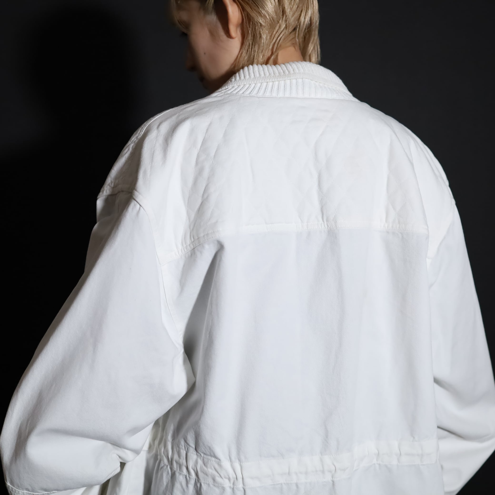 2種の生地で構成された身頃に加えて,襟はコットンリブニットに切り替わります.