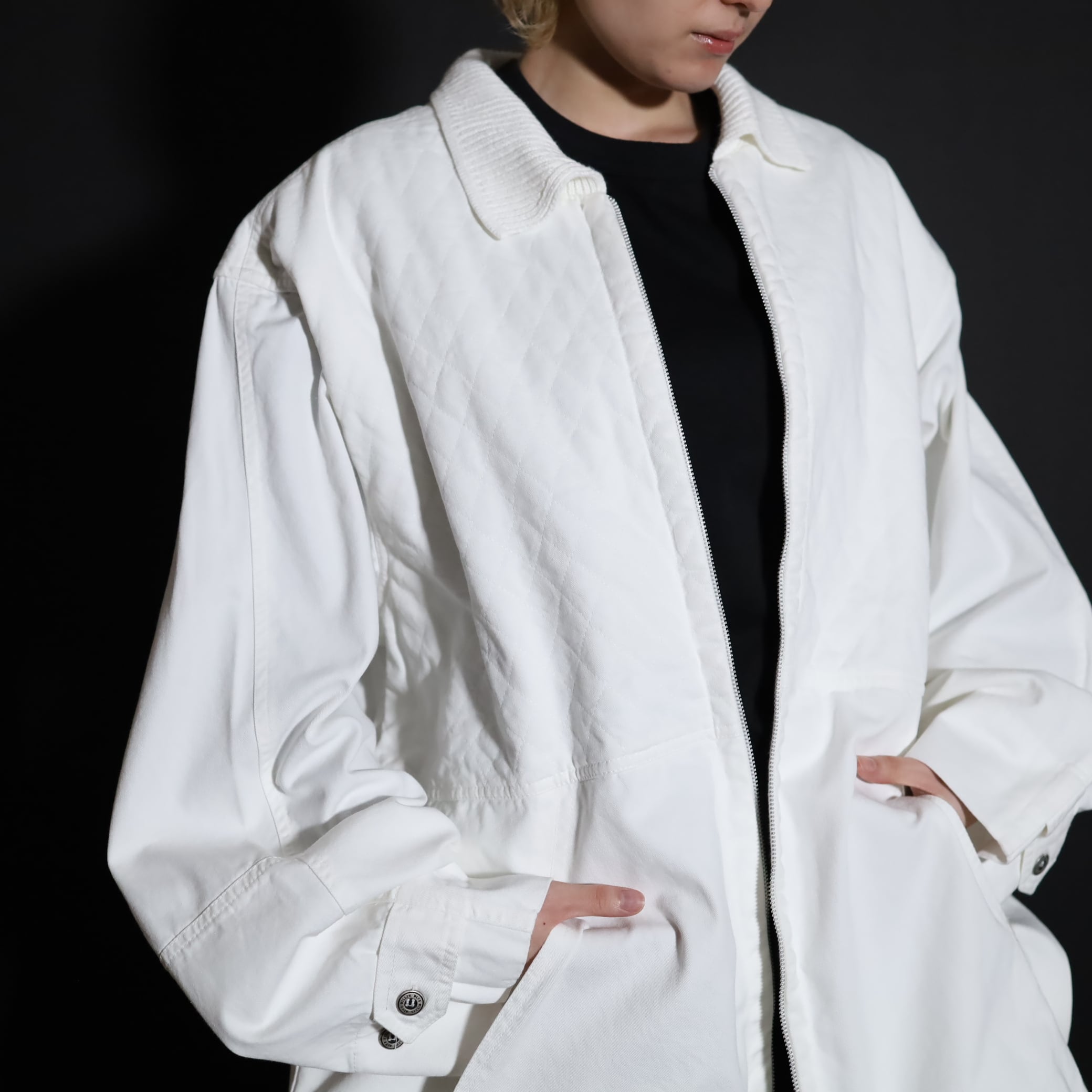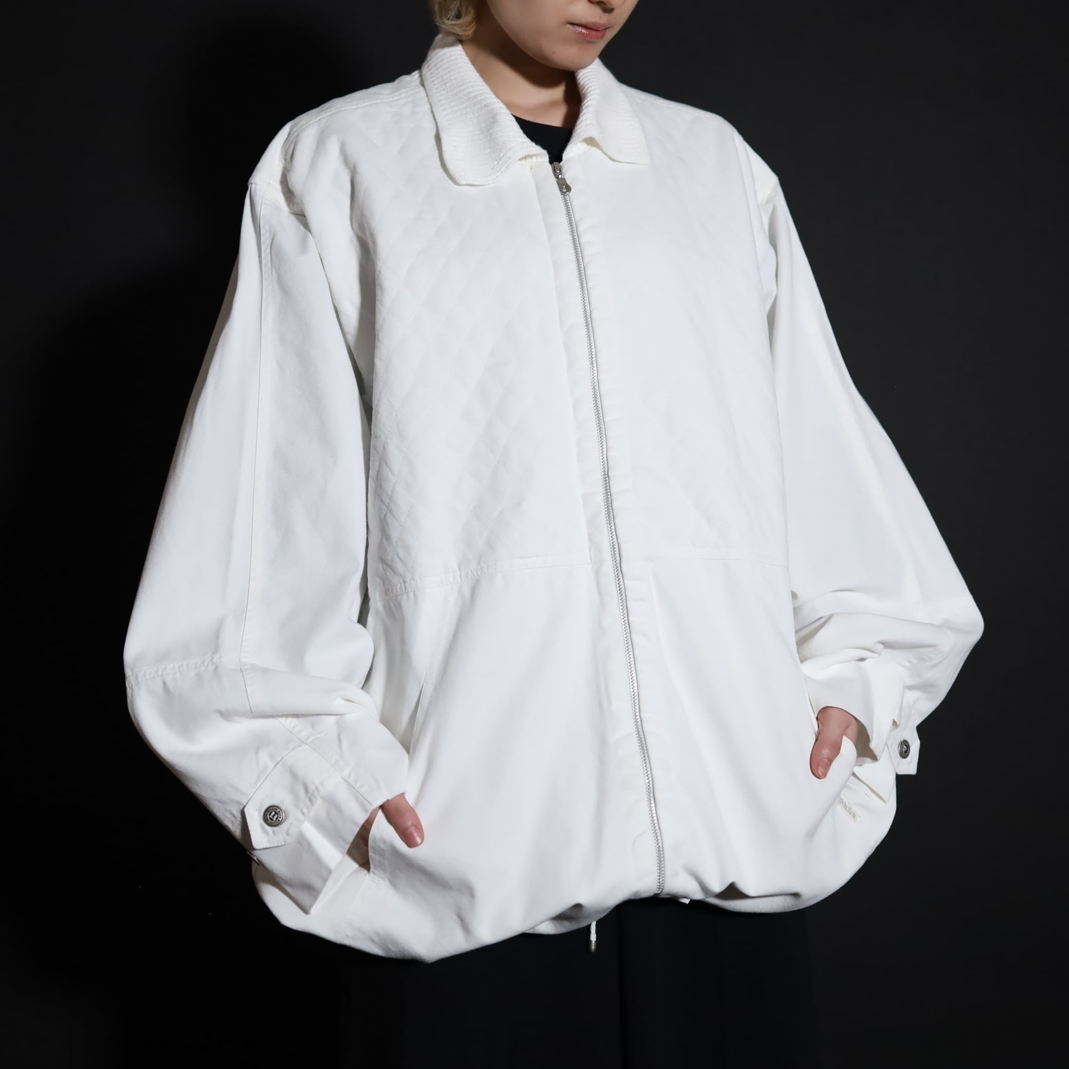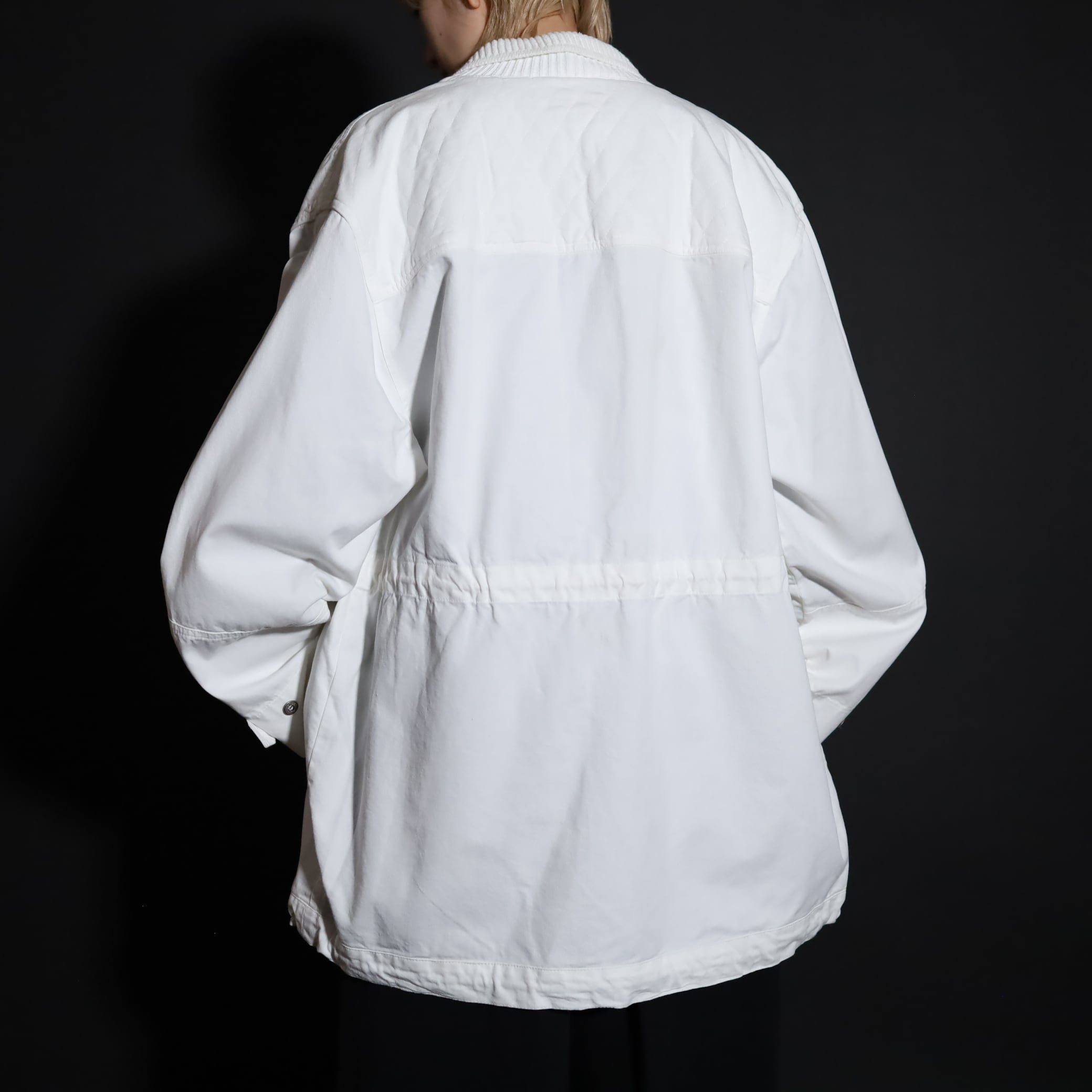 2種の生地で構成された身頃に加えて,襟はコットンリブニットに切り替わります.