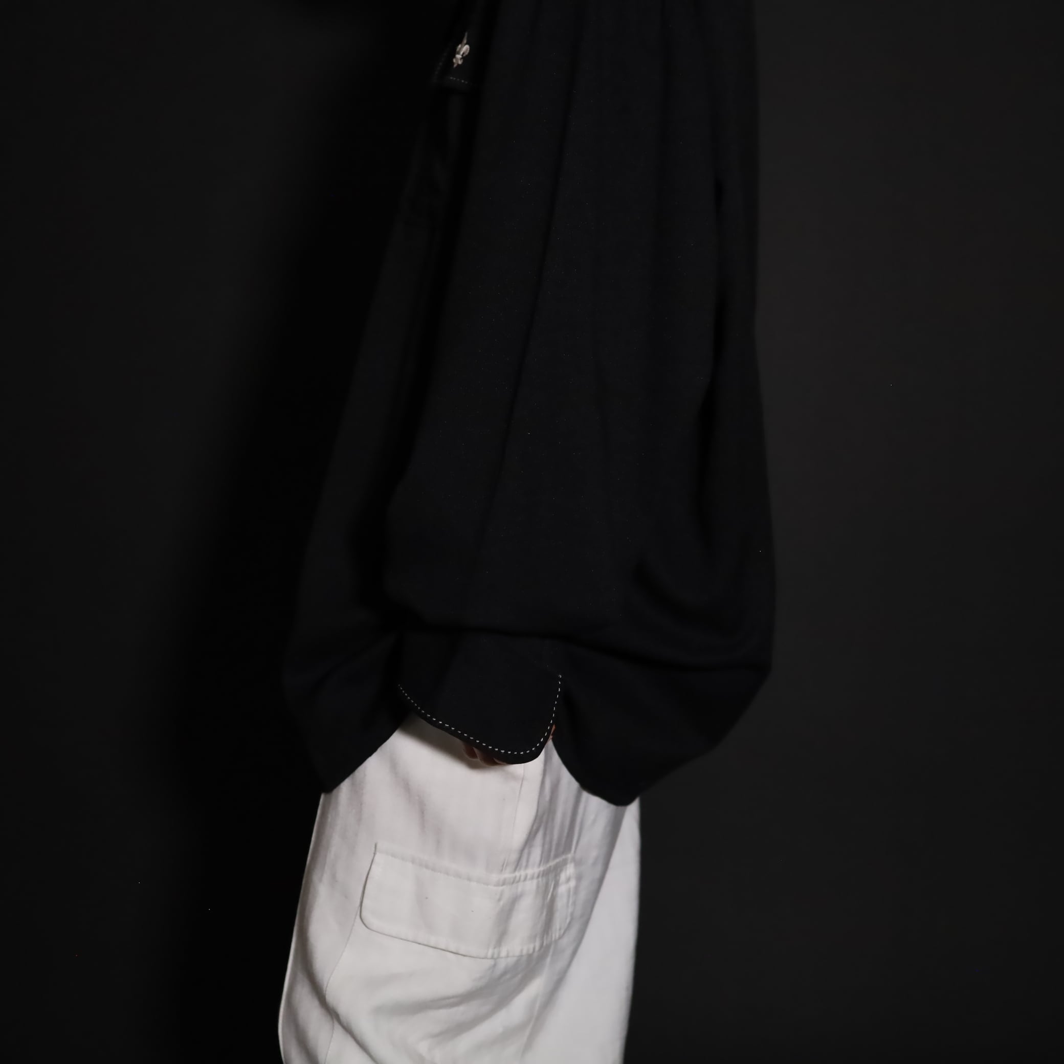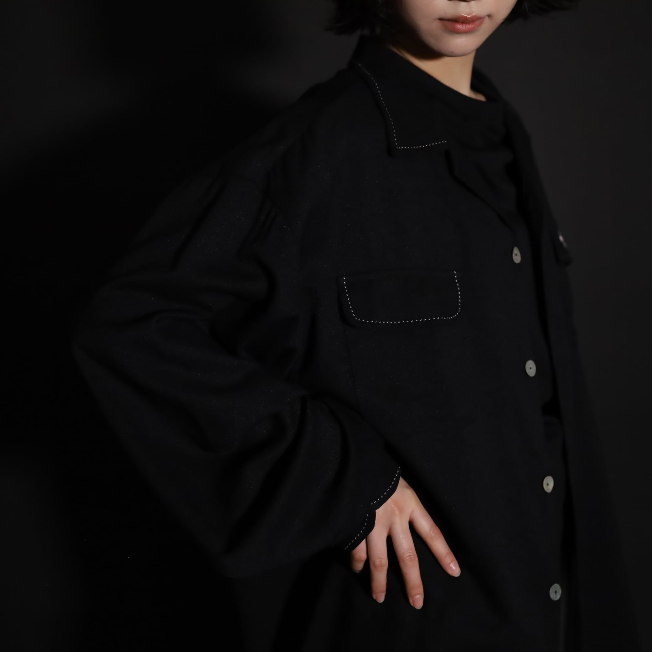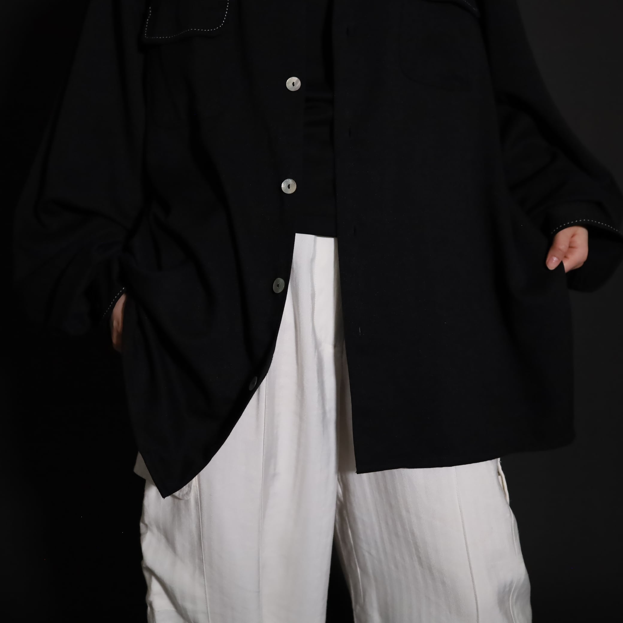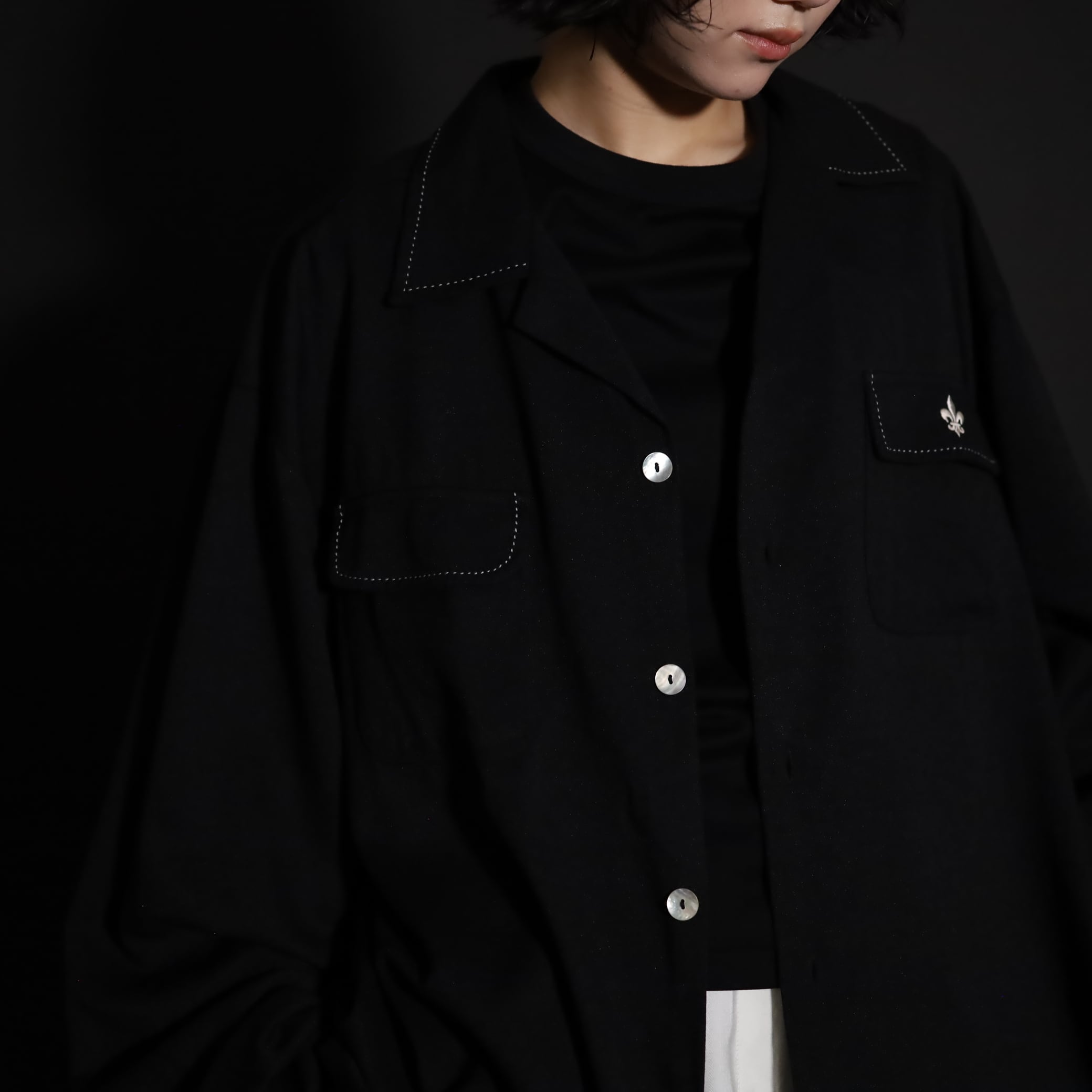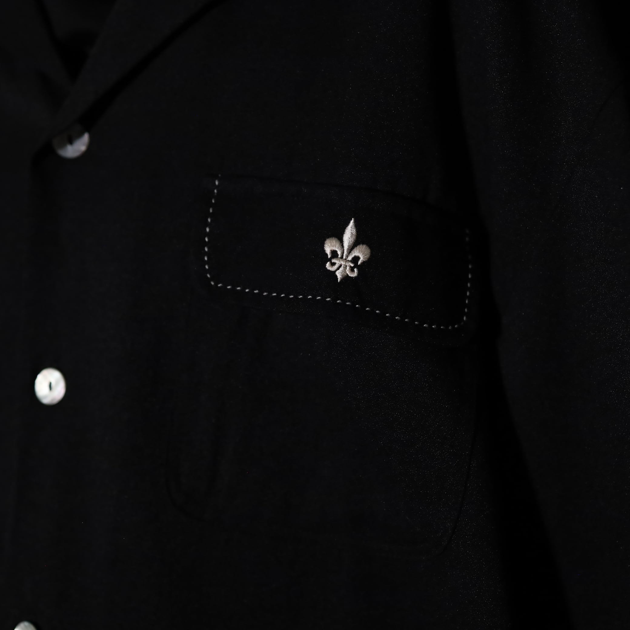 襟や胸ポケットのハンドステッチデザインや,刺繍デザインのホワイトカラーも活きてます.