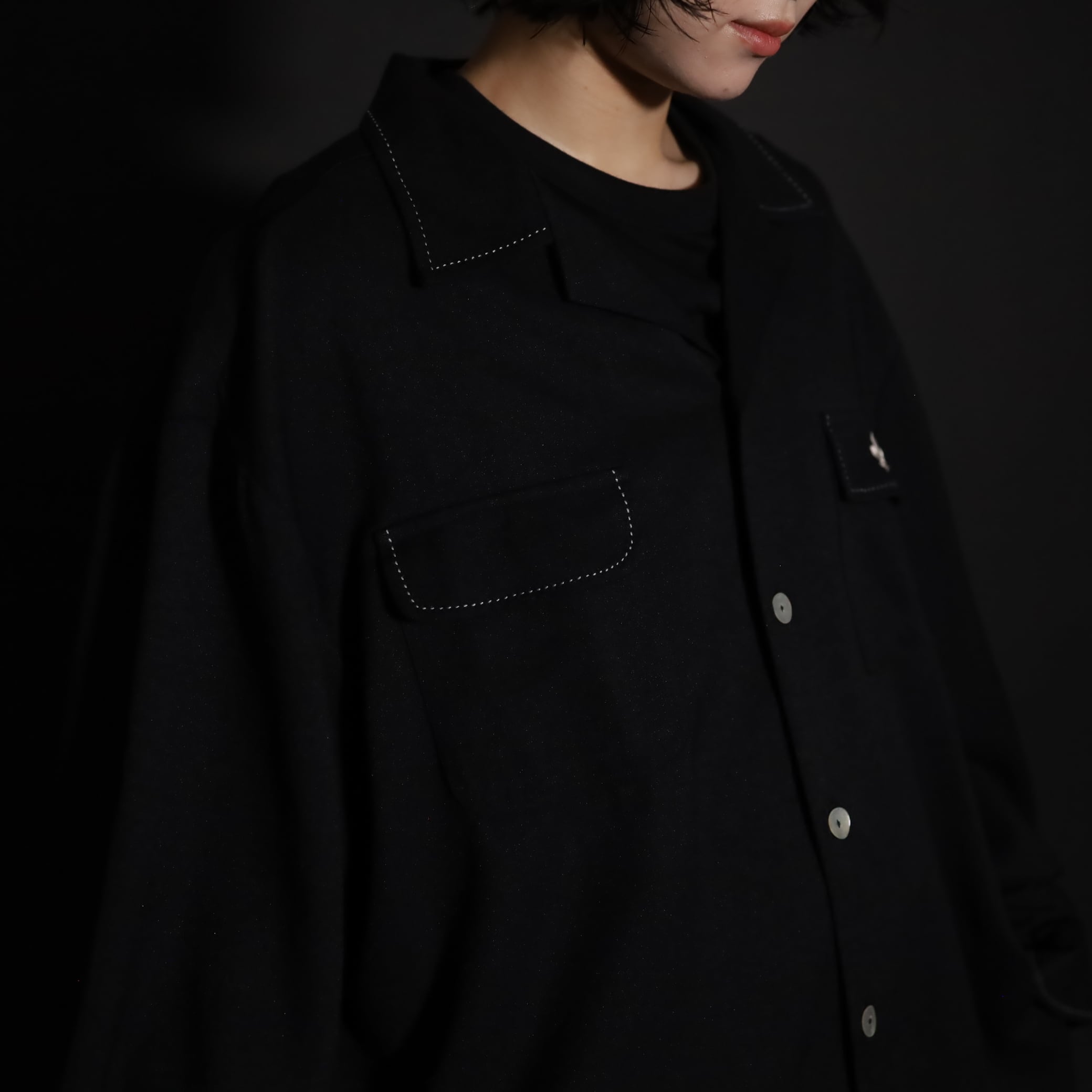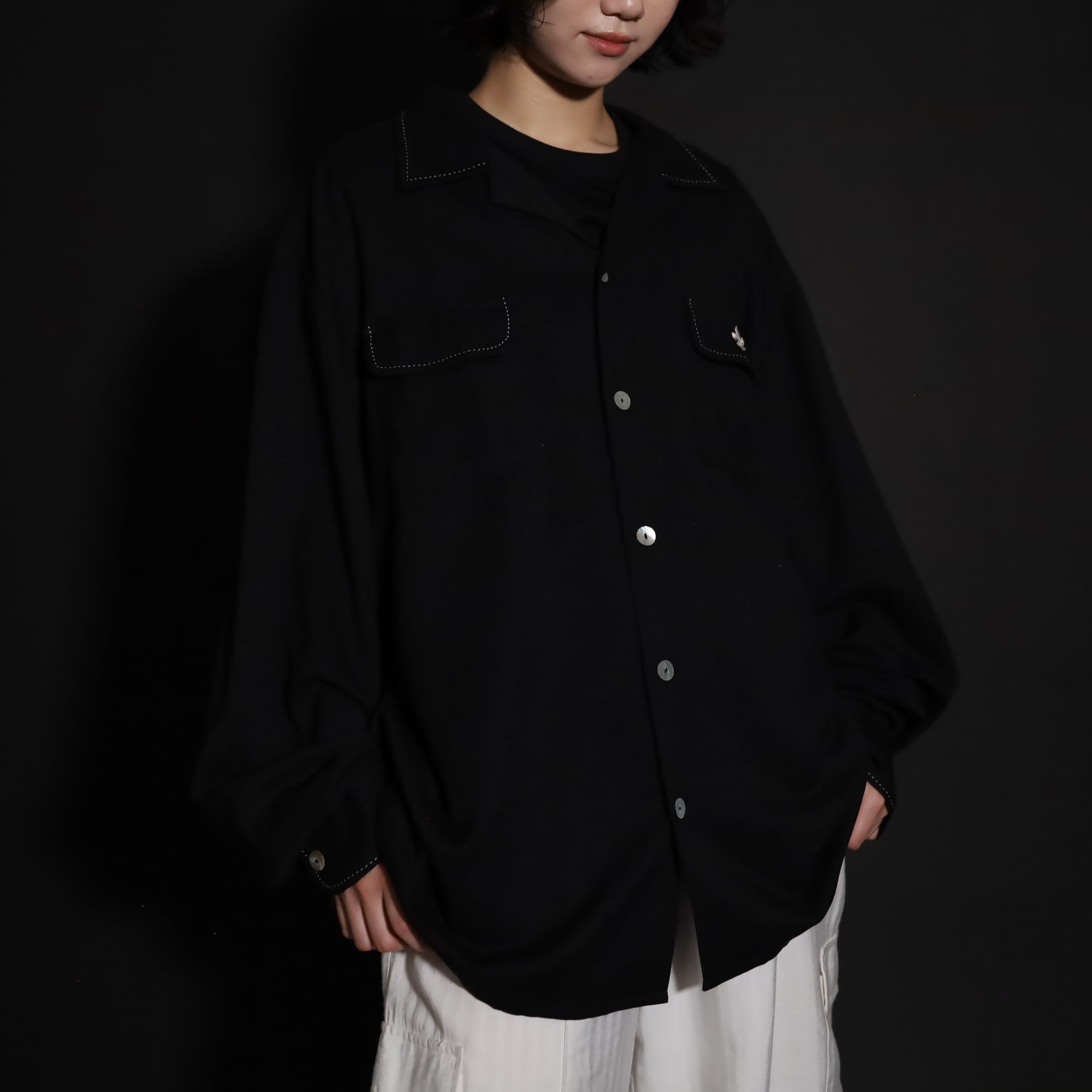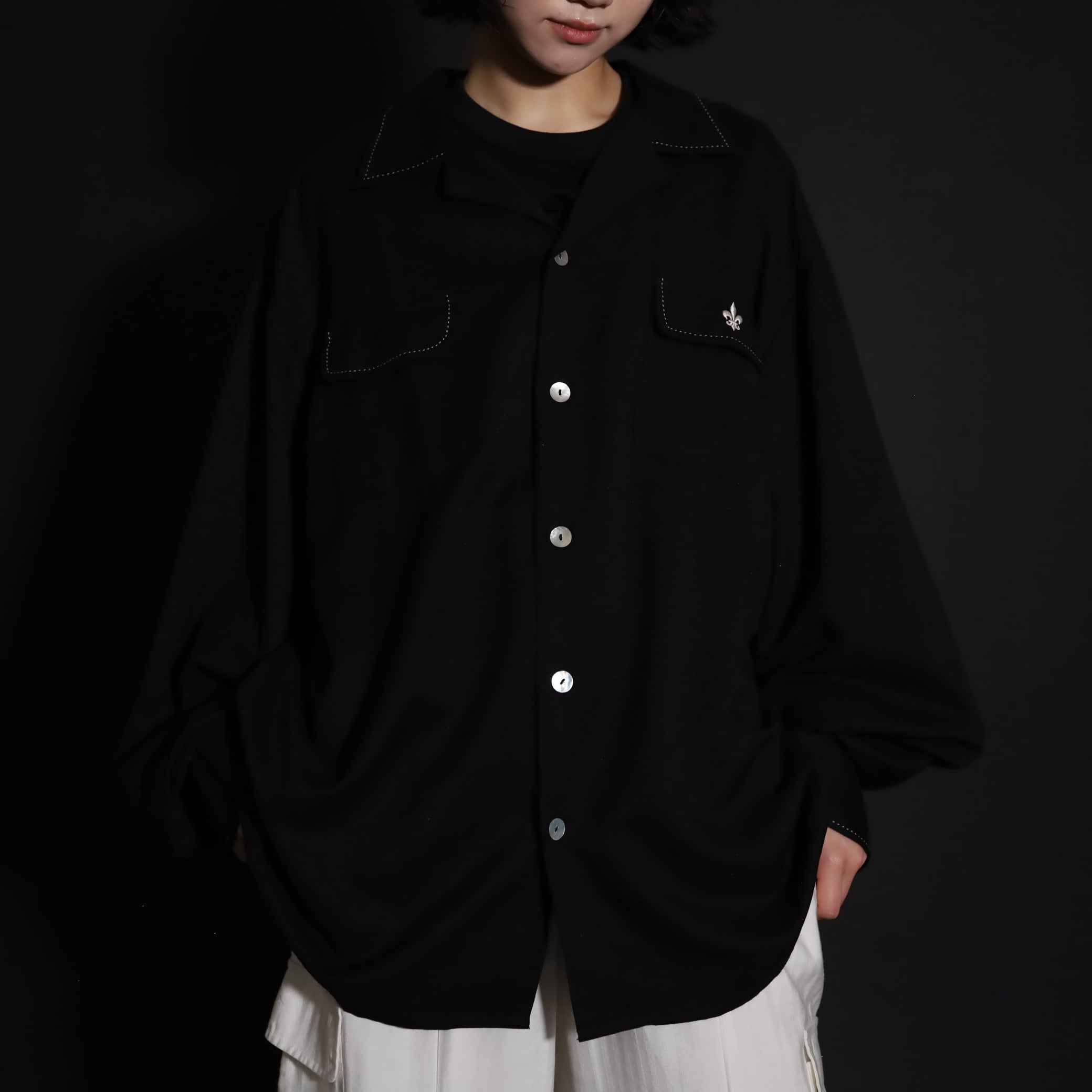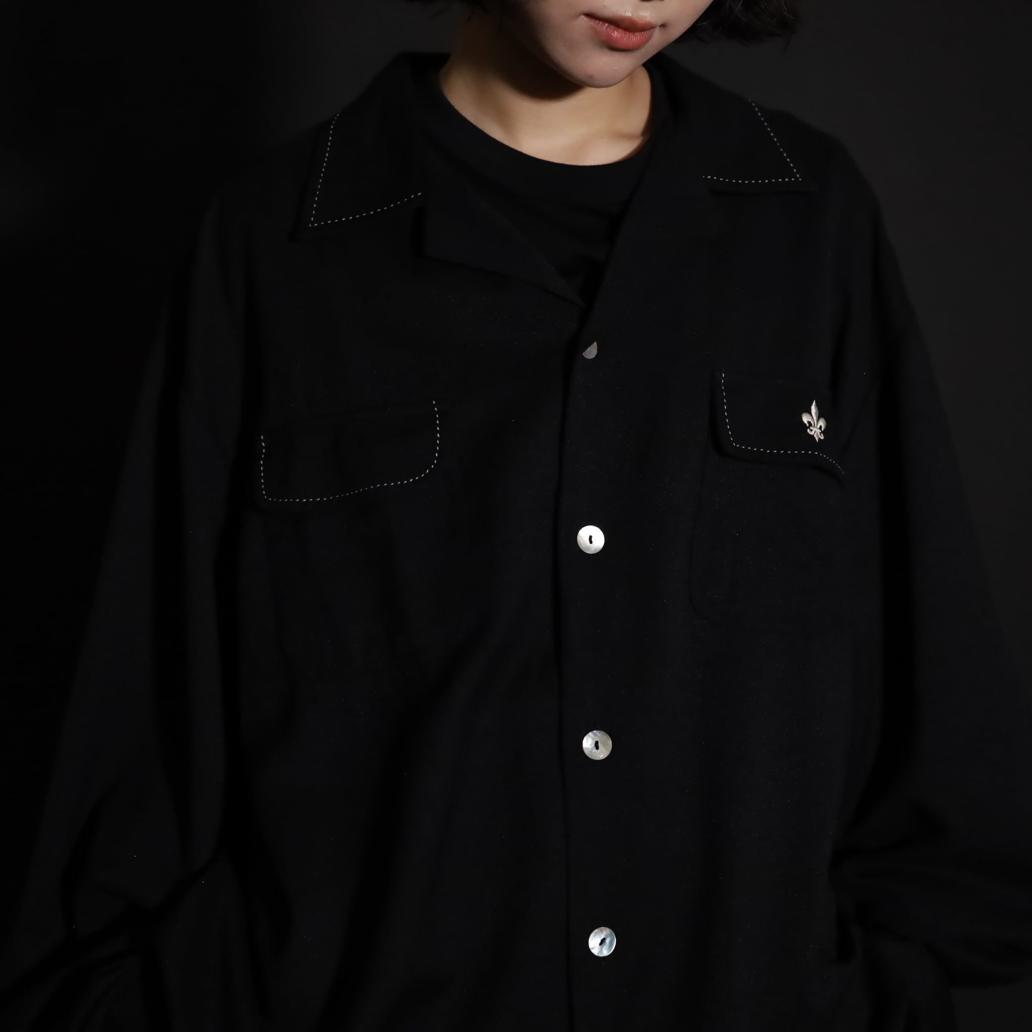 オープンカラーレーヨンシャツ.