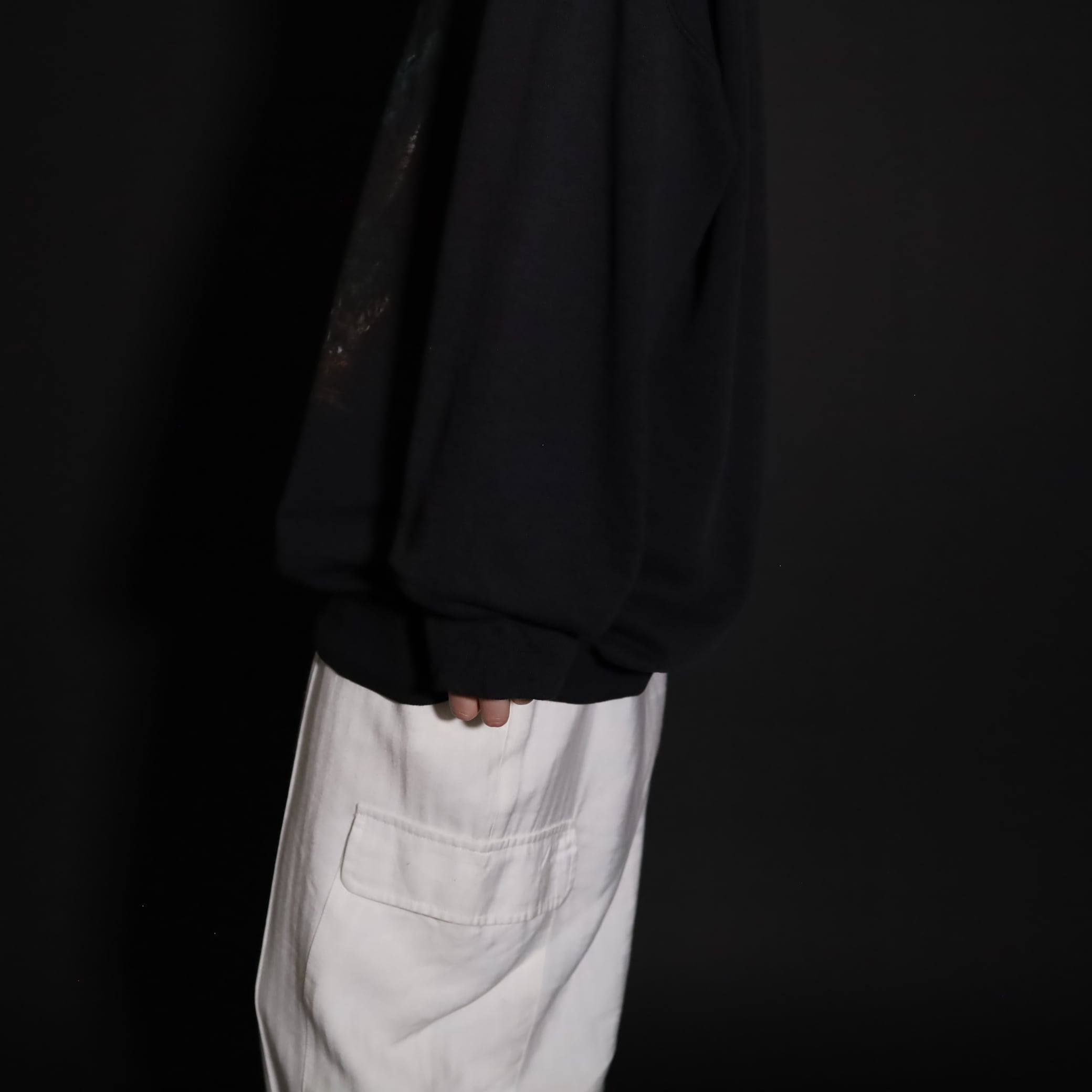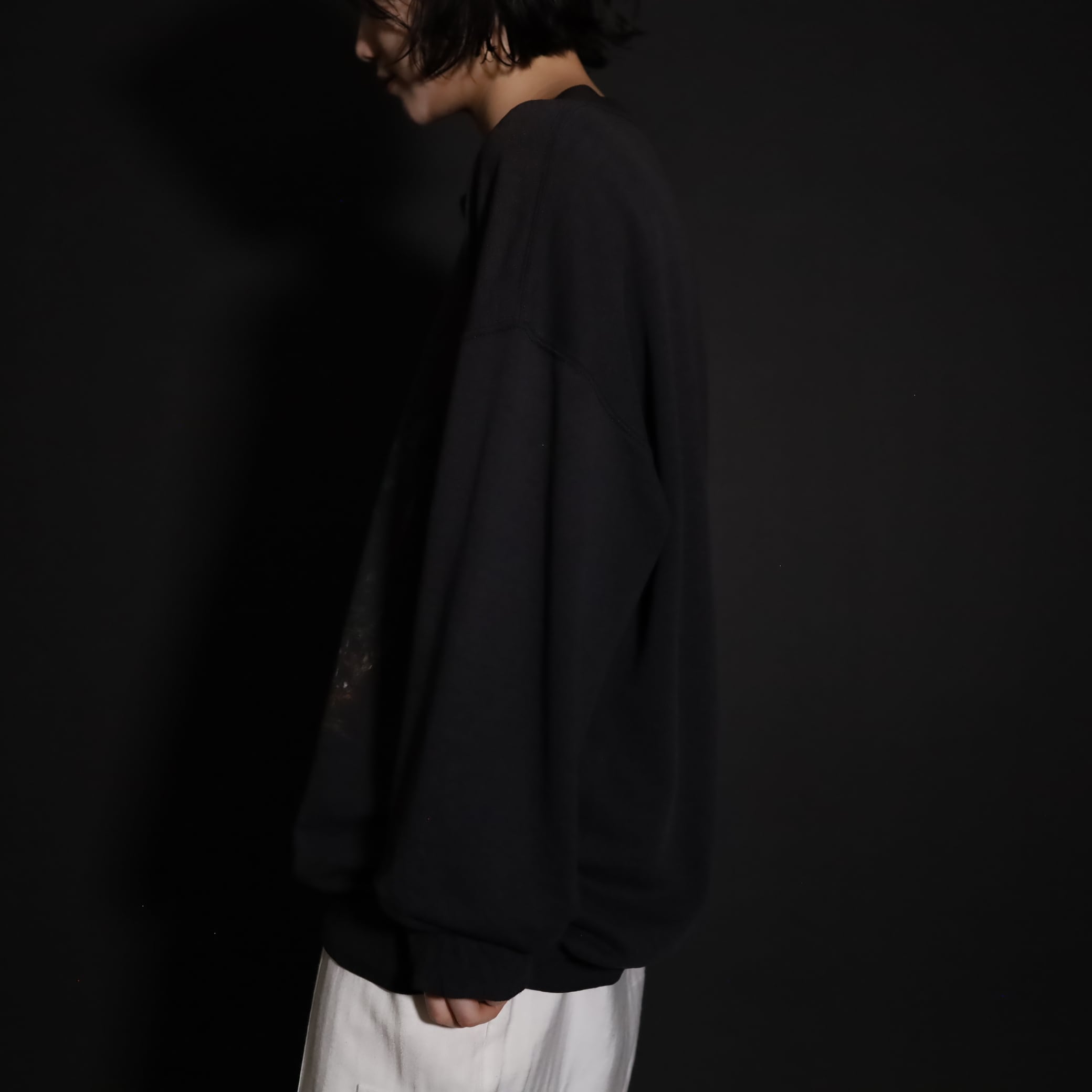 コットン×ポリのスウェットボディが,繰り返しの着用や洗濯などによって,コットンが抜け落ち,ロンTee並の生地の薄さに.