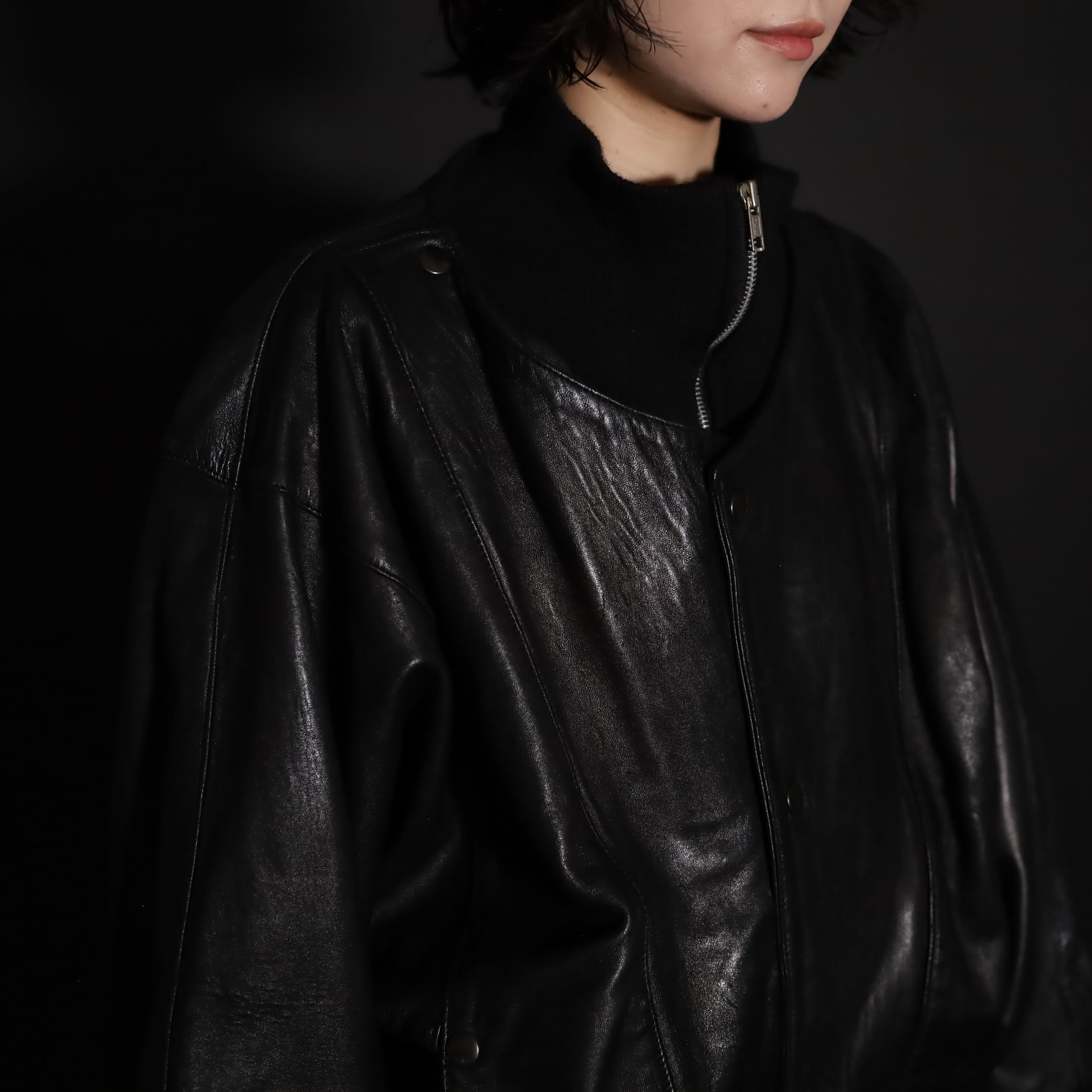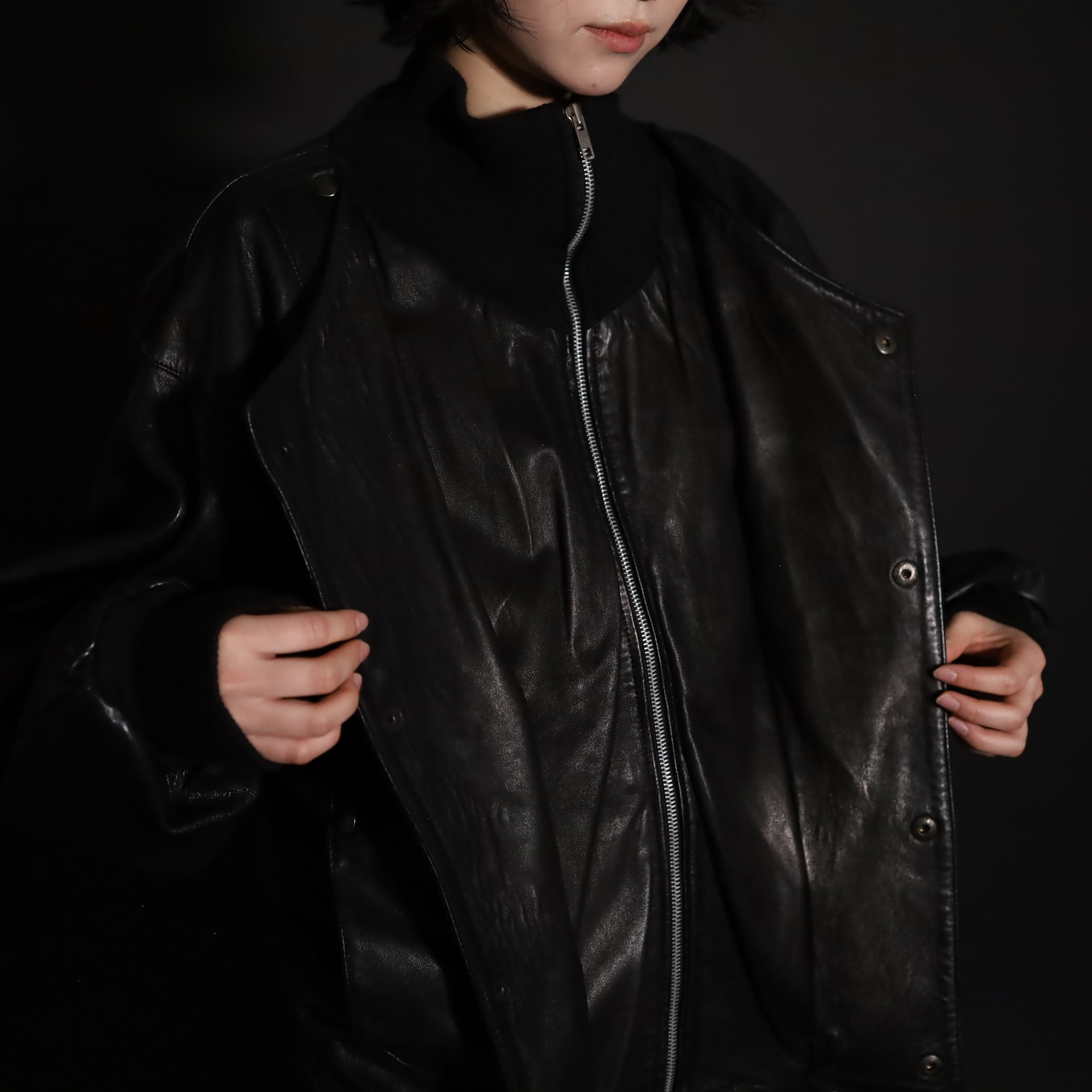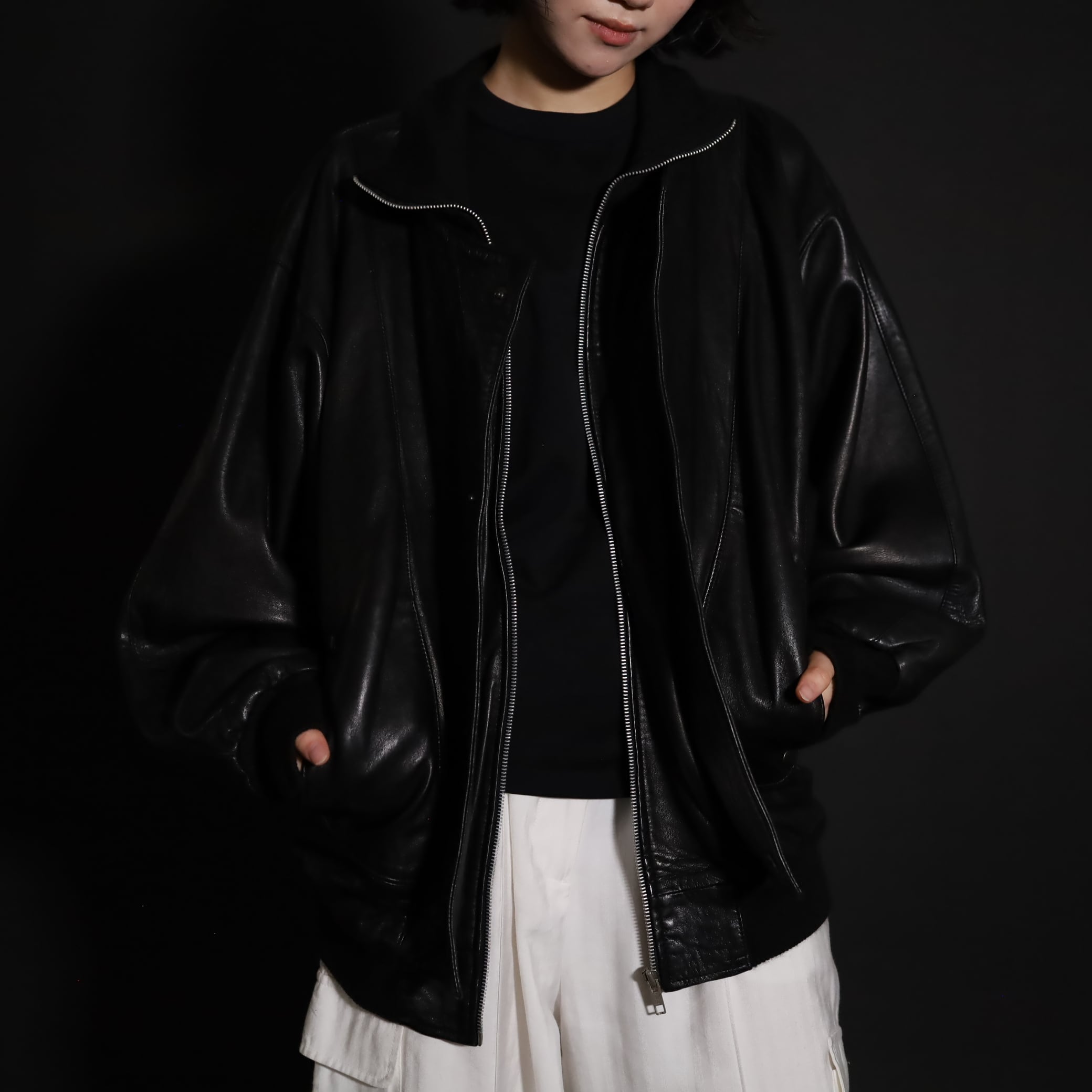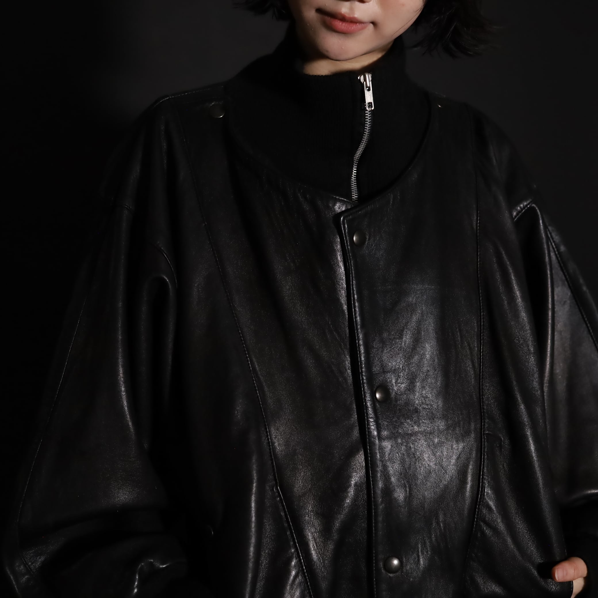 レザージップアップブルゾン.