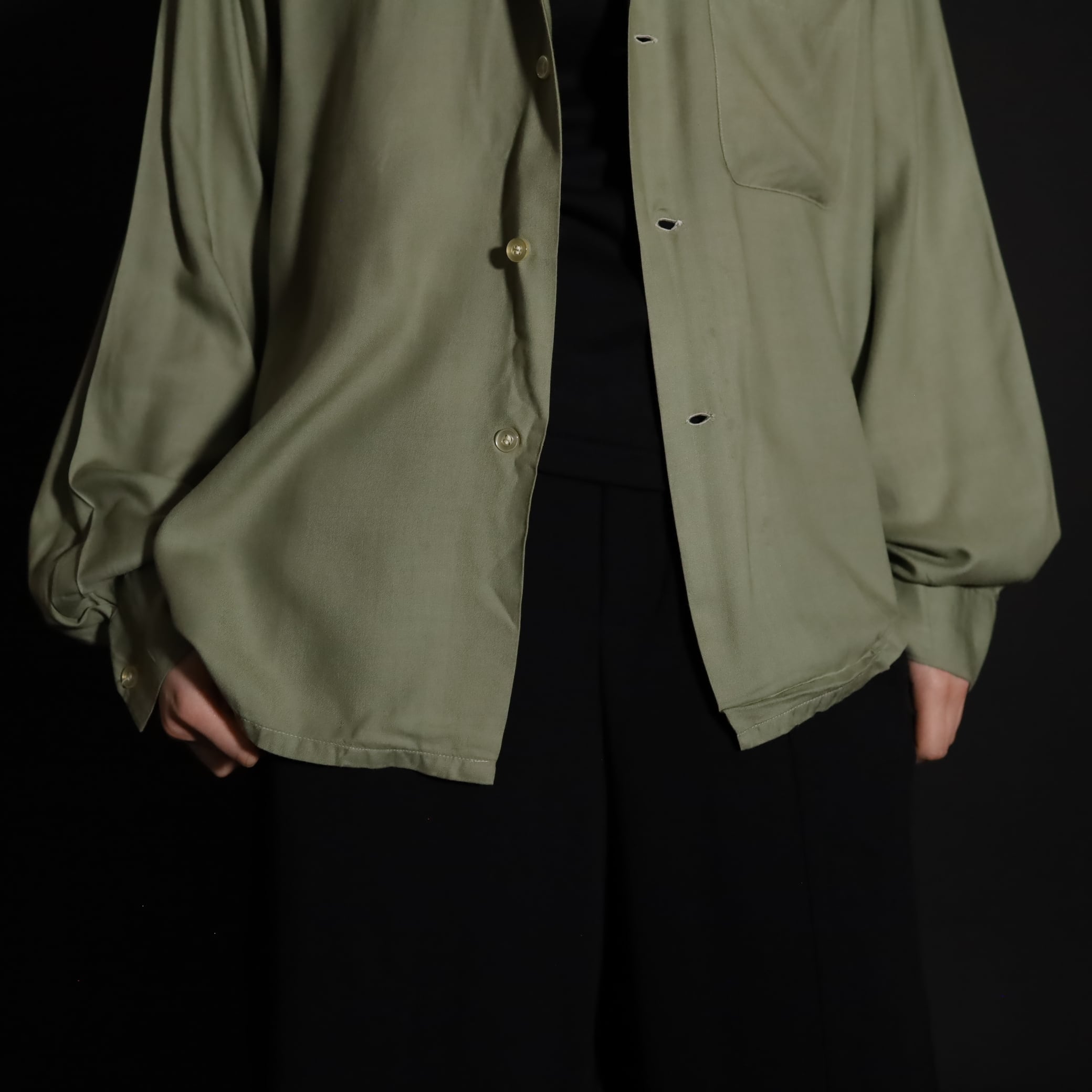 淡いトーンのカーキカラーのレーヨンボディ.