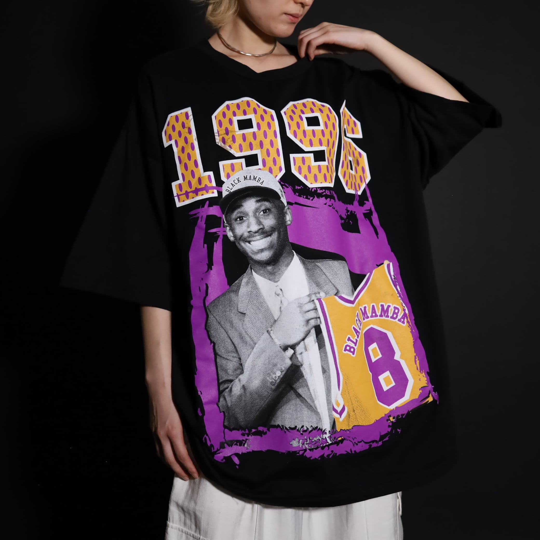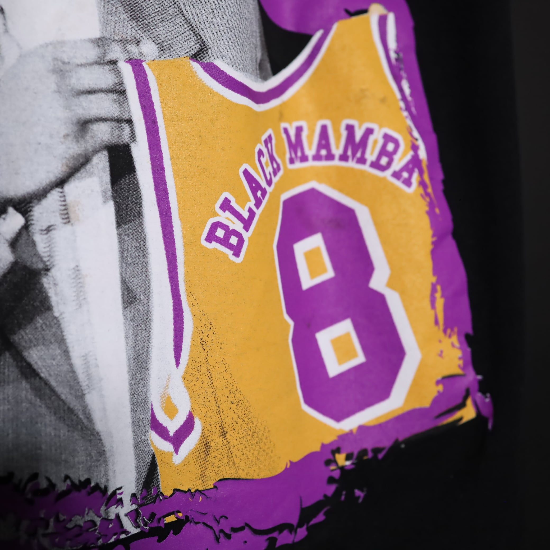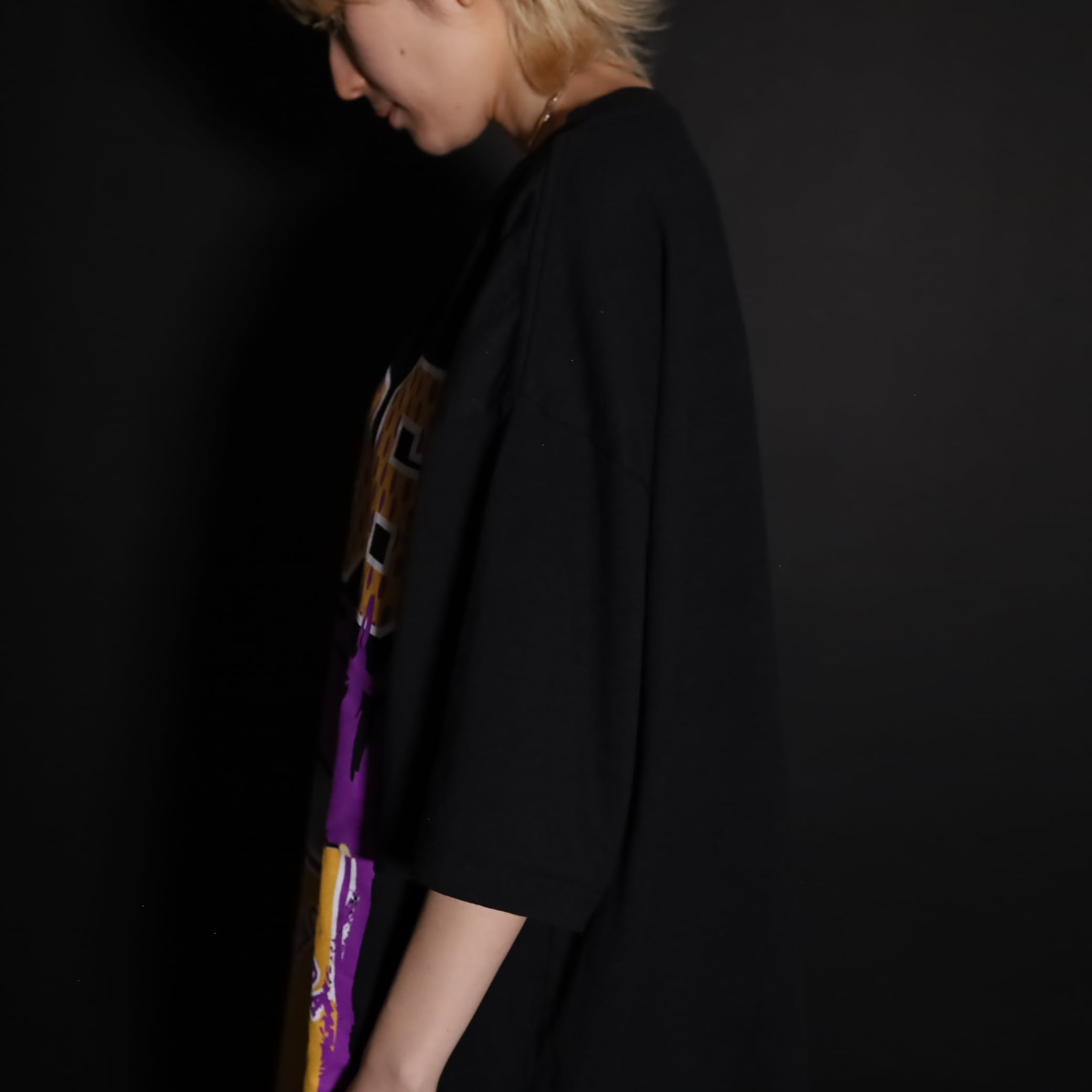 レイカーズのチームカラーに倣って,イエローとパープルをベースとしたカラーリングで,さらにプリントのサイズも大きく,とにかくインパクトのある一枚に仕上がってます.