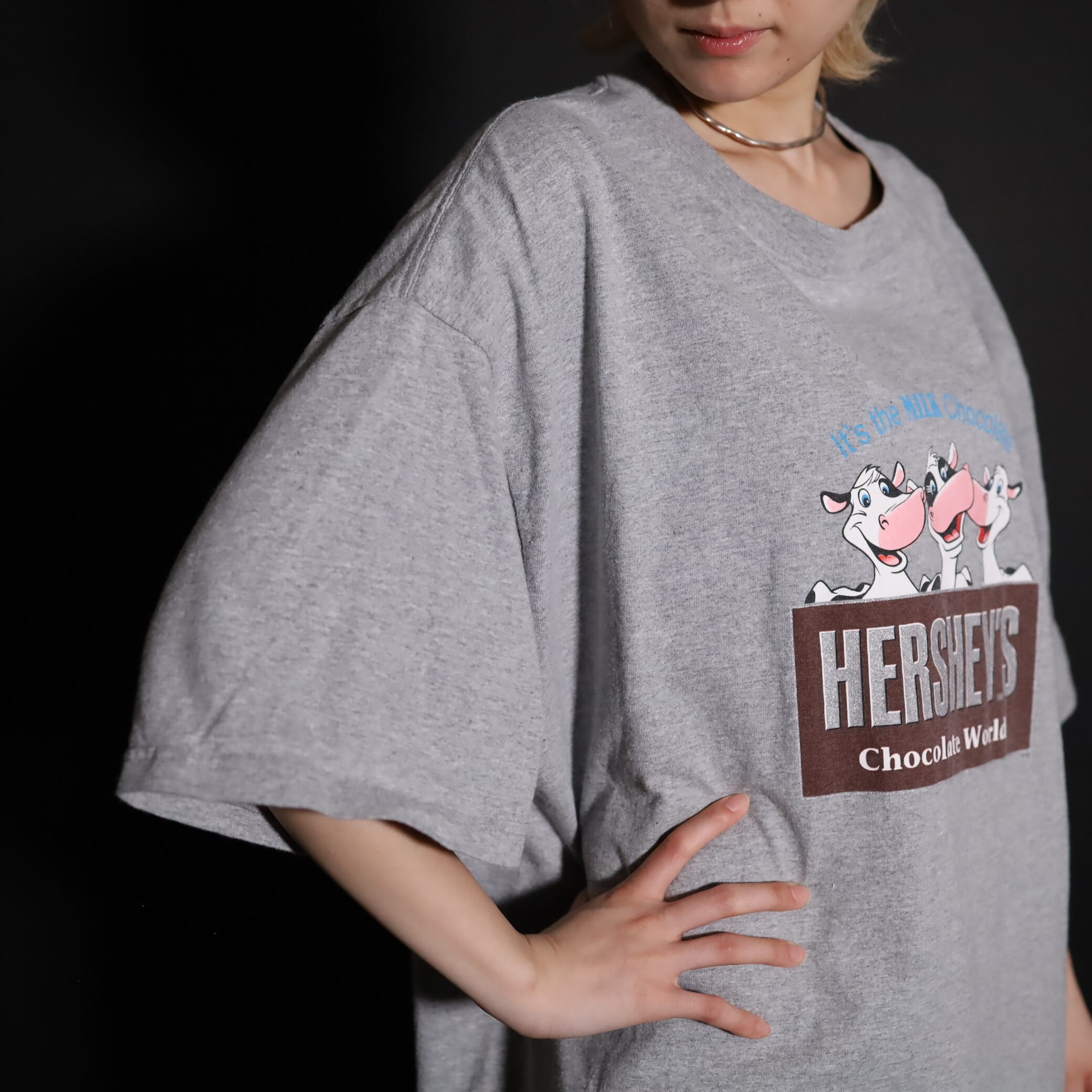 フロントにHERSHEY'Sのロゴプリントと,可愛い3頭のウシさんのイラスト.